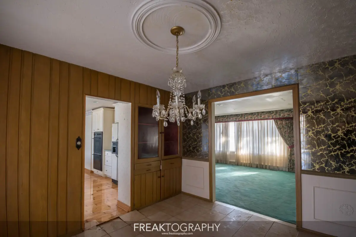 This retro abandoned house is a 4 Level side split that was custom built in 1960, it has five bedrooms, three bathrooms and one kitchen. The now Abandoned House was built and owned by the original family from 1960 until it was left abandoned in September 2017. The home, which has an estimate market value of over $3,000,000 is now awaiting demolition so a newer more modern house can take its place.