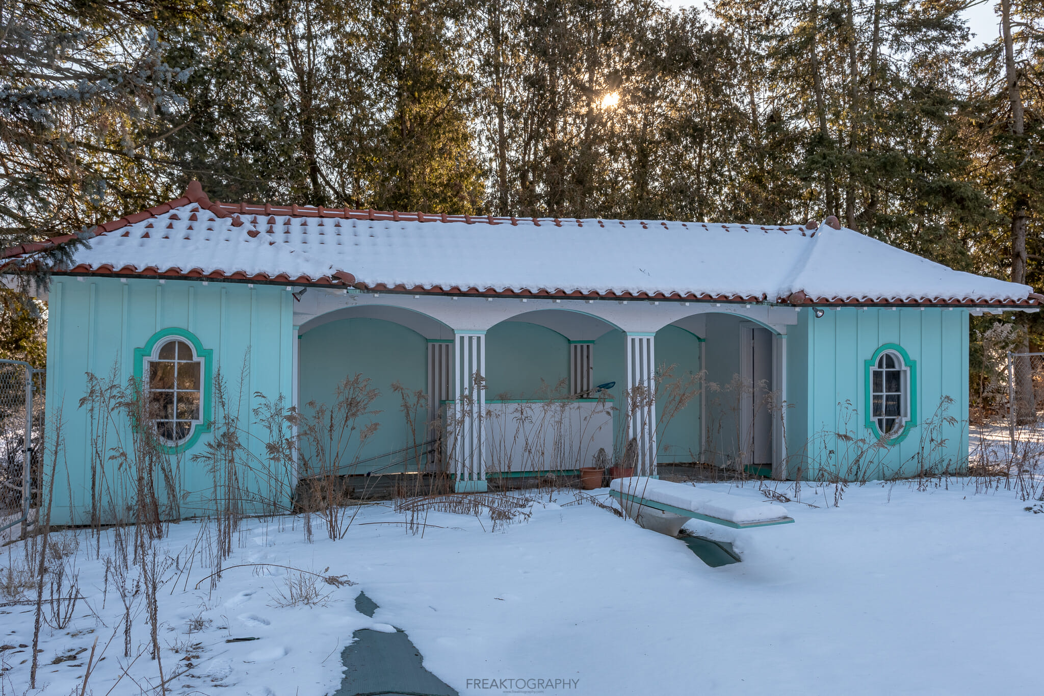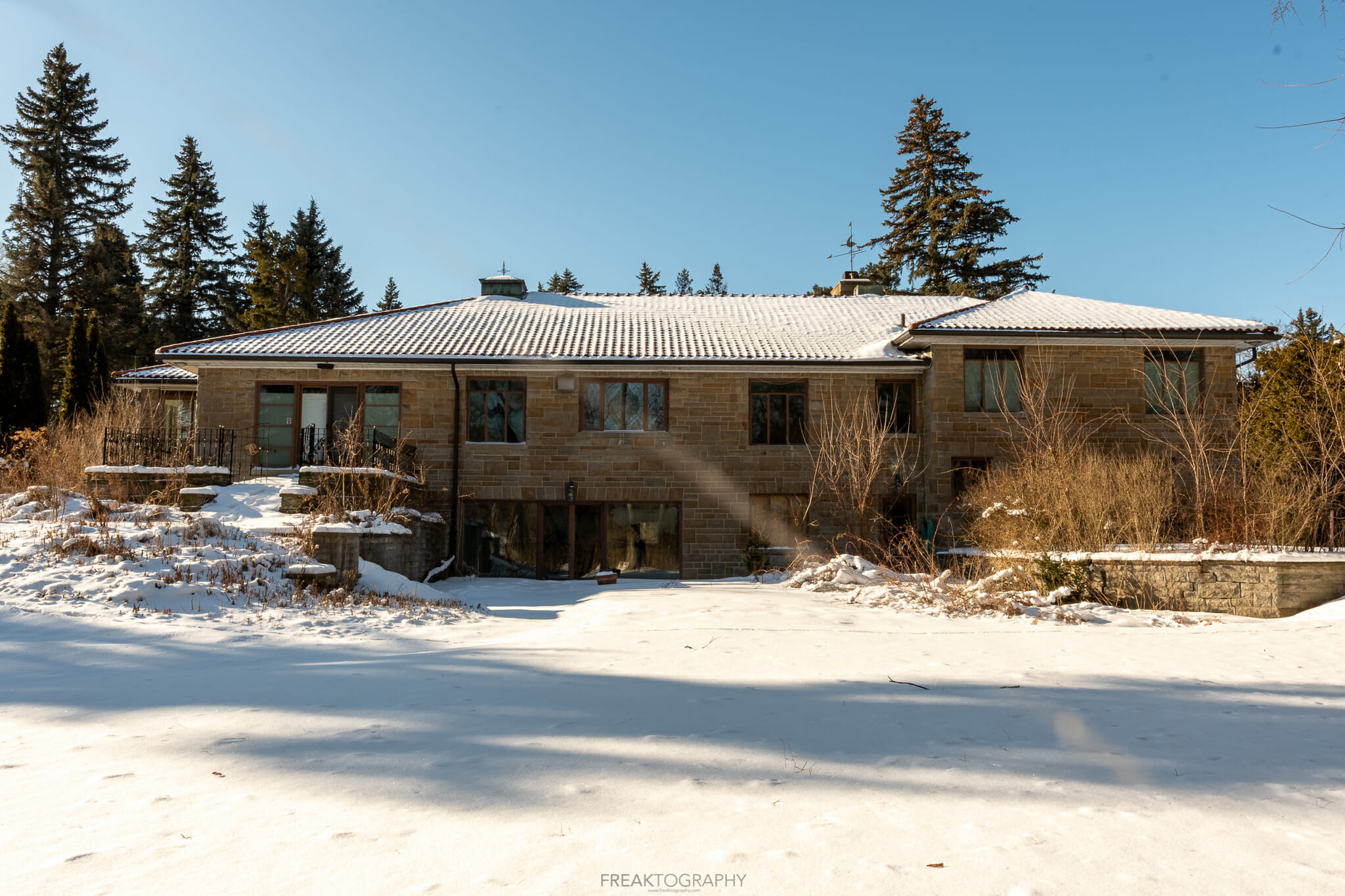 The Abandoned Hill side Estate was built in the 1940’s in an area surrounded by farm fields making it an ideal place for total seclusion! It was by itself up until the 1960’s when the surrounding was developed. Rumors swirled in the new development about the Estate that there were secret tunnels under it but those were never confirmed & later owners said they found no evidence of such tunnels.