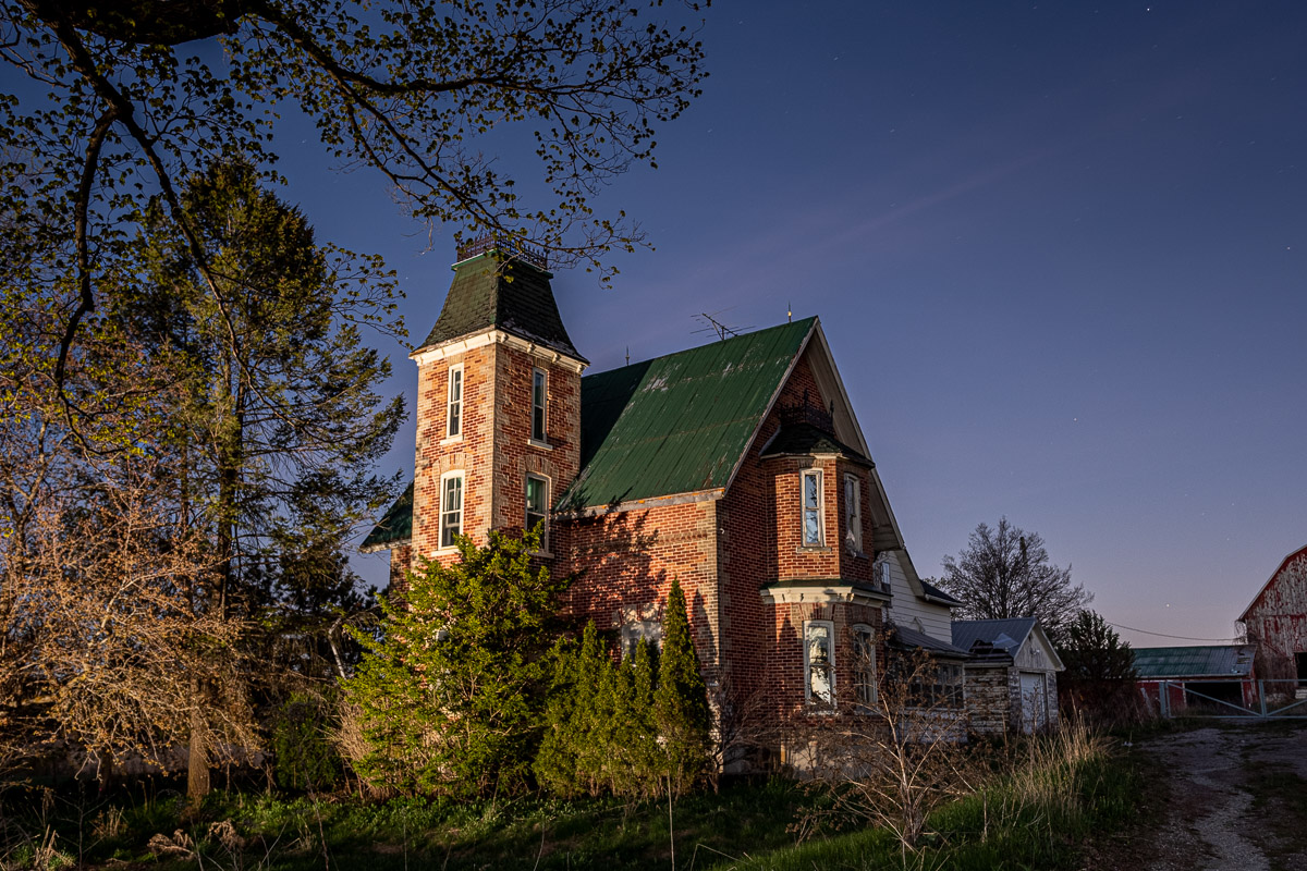 Arriving about 30 mins before sunset, I set up my camera facing the house and I put my GoPro up in the tower and I captured the sun setting in front of the house as well as the sun setting over the house. I then left my camera running to capture golden hour, blue hour and twilight.