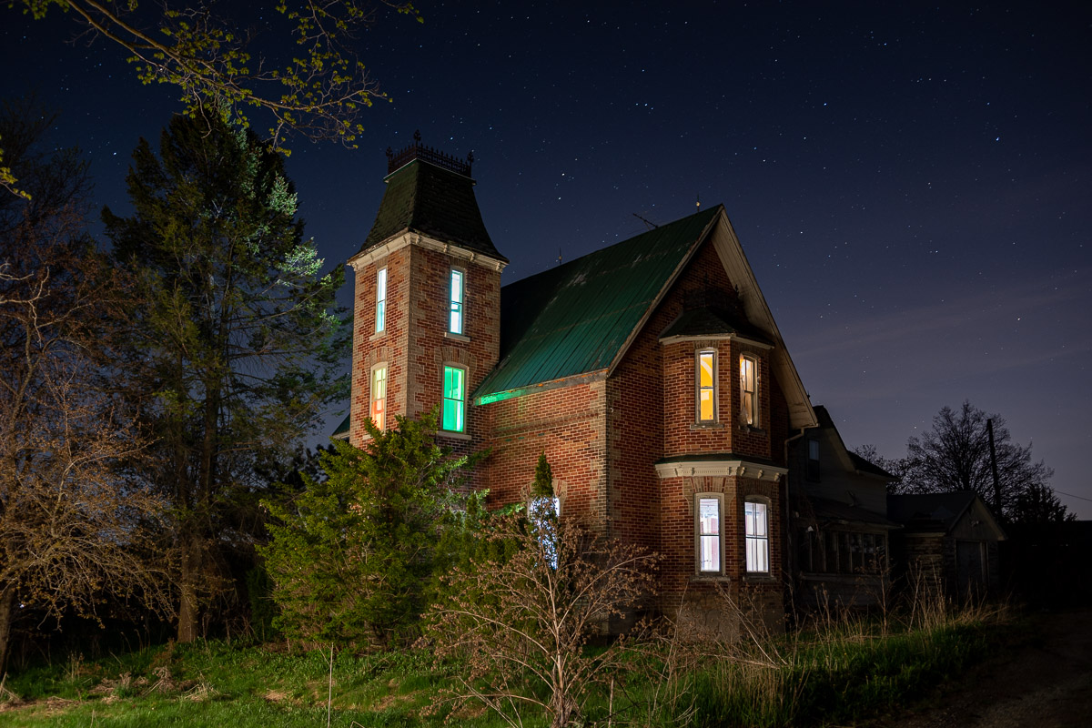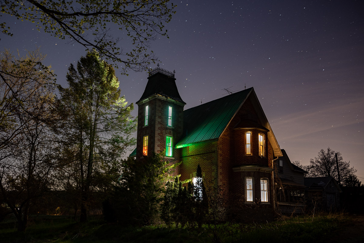 Now, the entire interior of the house was lit and I had nothing but a clear moonless starry sky to illuminate the exterior.