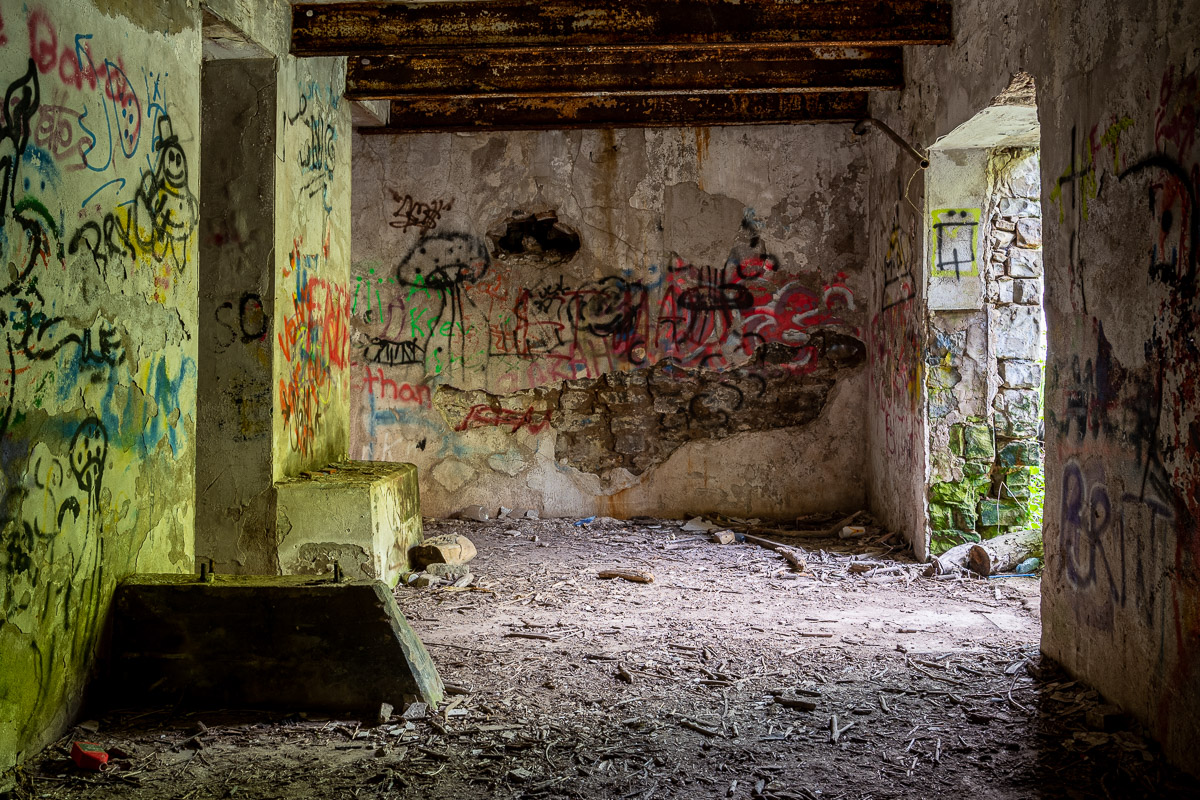 Although the space is obviously suffering from neglect, vandalism, and the harsh elements, it serves as an important reminder of the past, and offers a uniquely beautiful property to appreciate and capture on film.