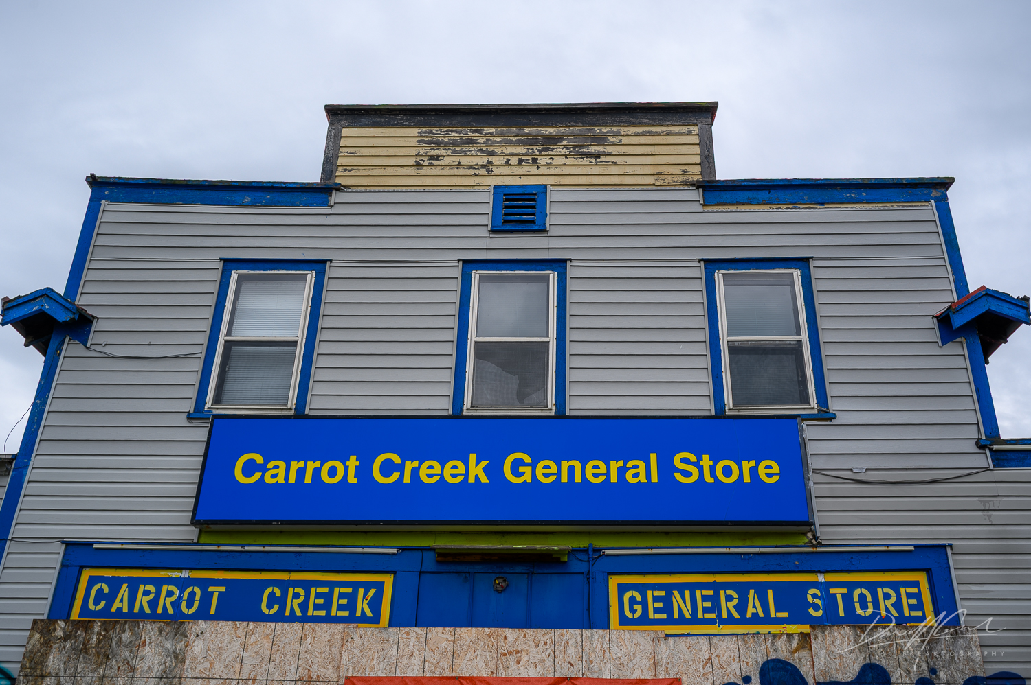 The Carrot Creek General Store stands abandoned but mostly intact. The paint has peeled away. The roofline sags. Yet the bones of the building still speak. You can still make out where the Esso pumps once stood and where the store’s sign would have greeted travelers.