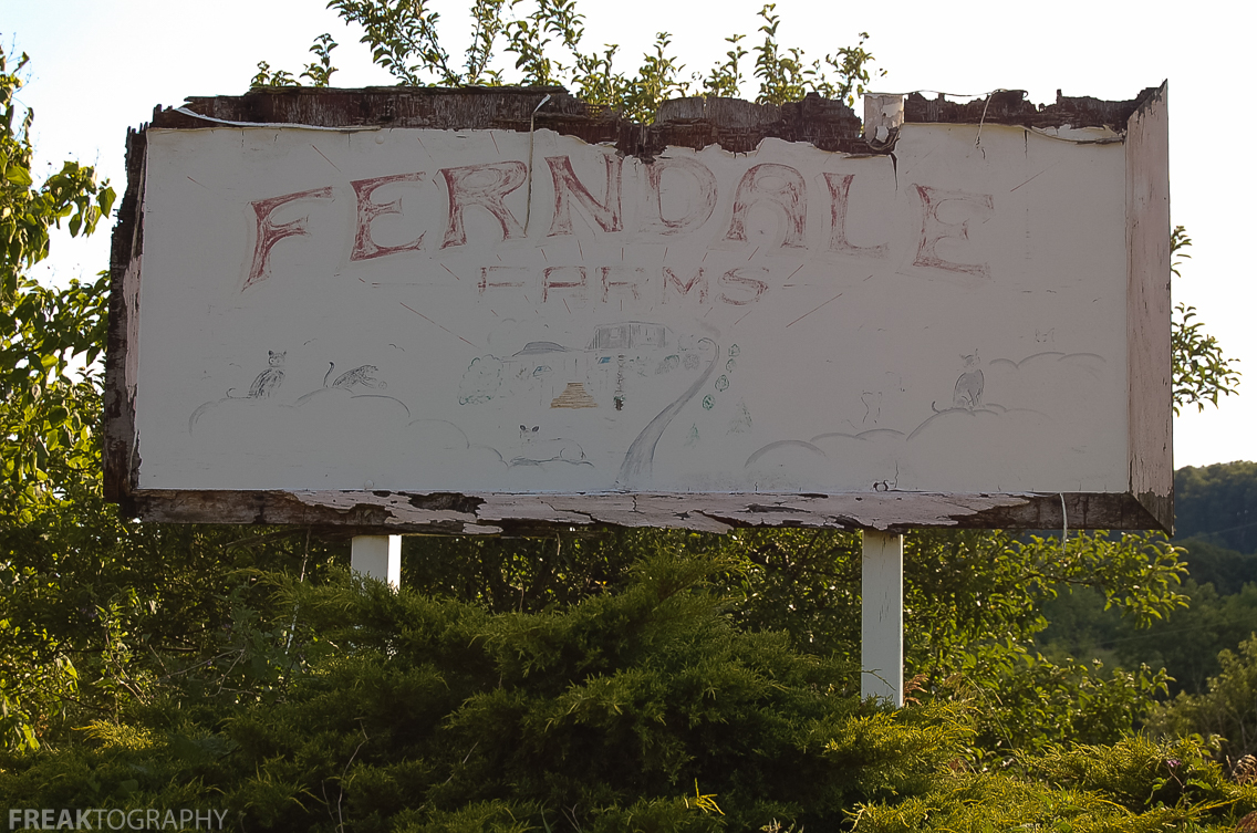 Driving home on a summer night I saw a property with a very faded sign with the painted name of the farm barely visible. Beyond that sign was a slightly overgrown lawn that showed some signs of maintenance. There were rows of pear trees and a car parked in the driveway. The Abandoned Cat Lady House was set far back from the road almost totally out of sight.