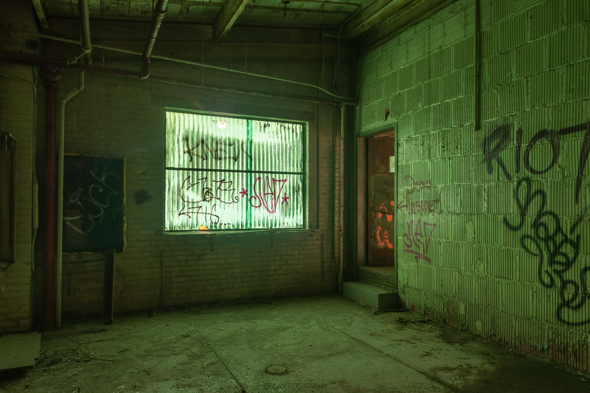 This industrial building has been vacant for more than 30 years, many explorers will recognize this place from certain rooms with that green glow!
