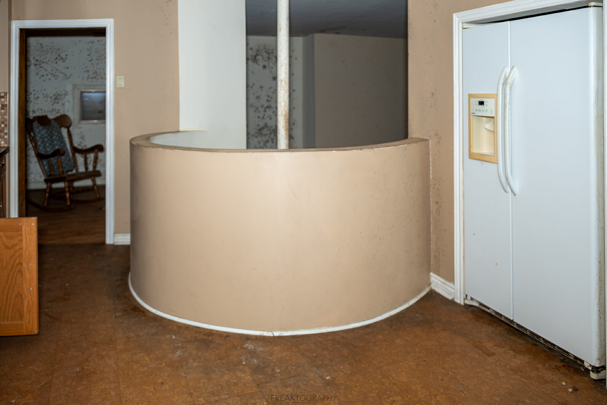 This is a very odd setup for a house, I’ve never seen this before but is kinda neat, built in 1970 and from all the mold you can tell whats been going on there.
