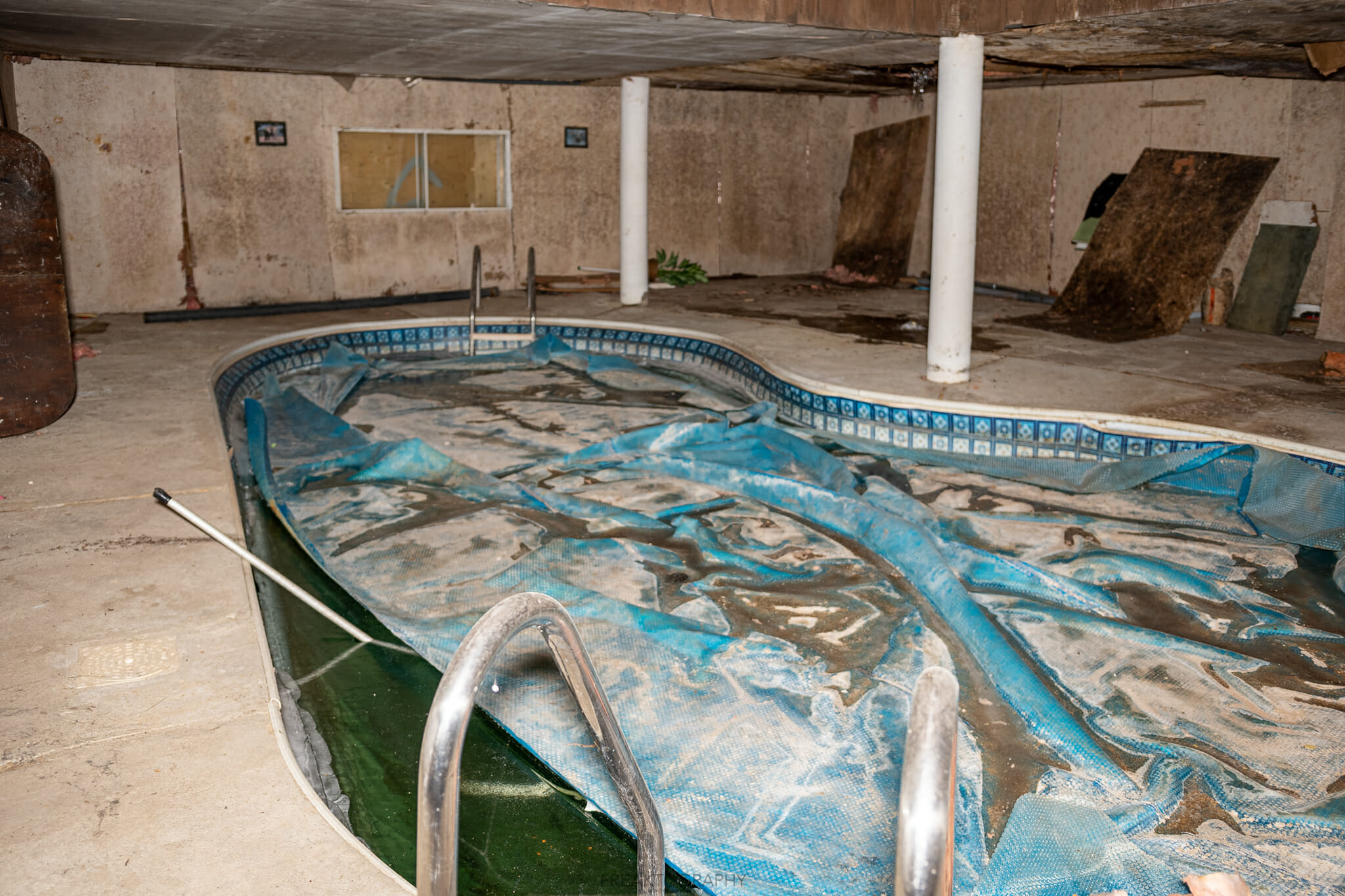 Discovered and first explored by Carlo Paolozza, his video of this ABANDONED Dealer’s 1970s Weird looking House with Indoor Pool & Sauna received over 1,000,000 views!!!!!