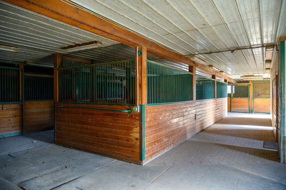 At its peak, the facility was capable of housing over 100 horses, with hundreds of stalls, multiple barns, paddocks, and both indoor and outdoor riding arenas.