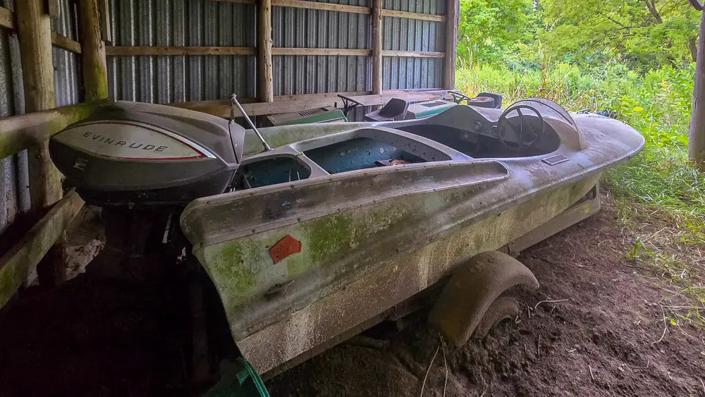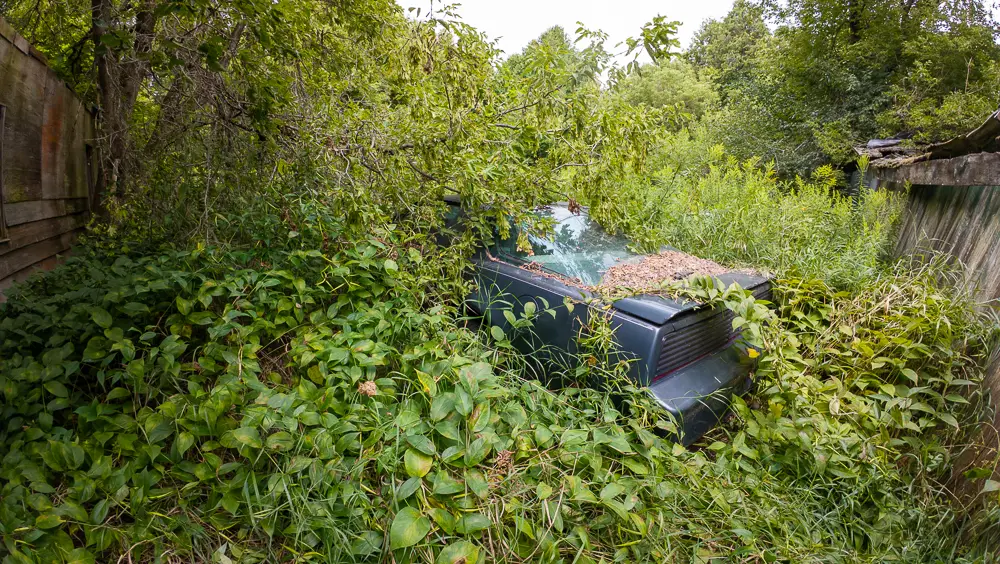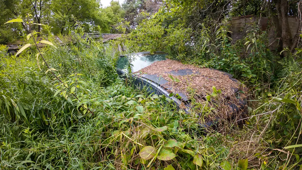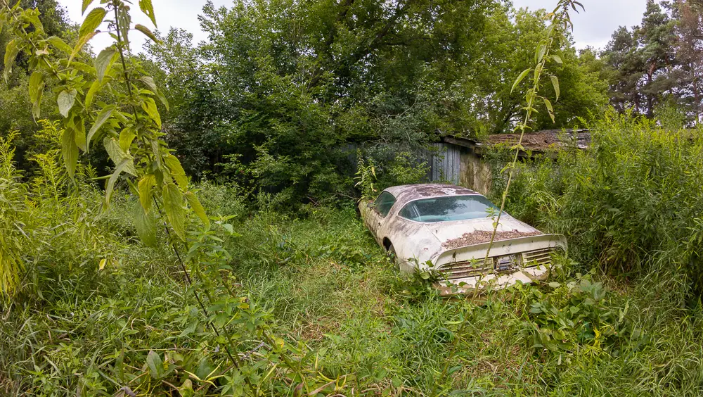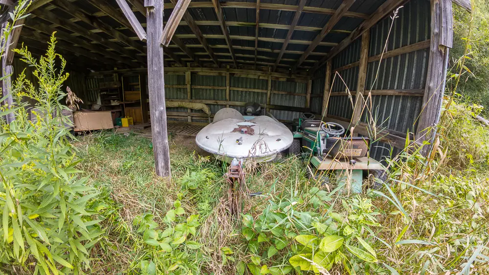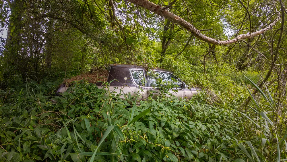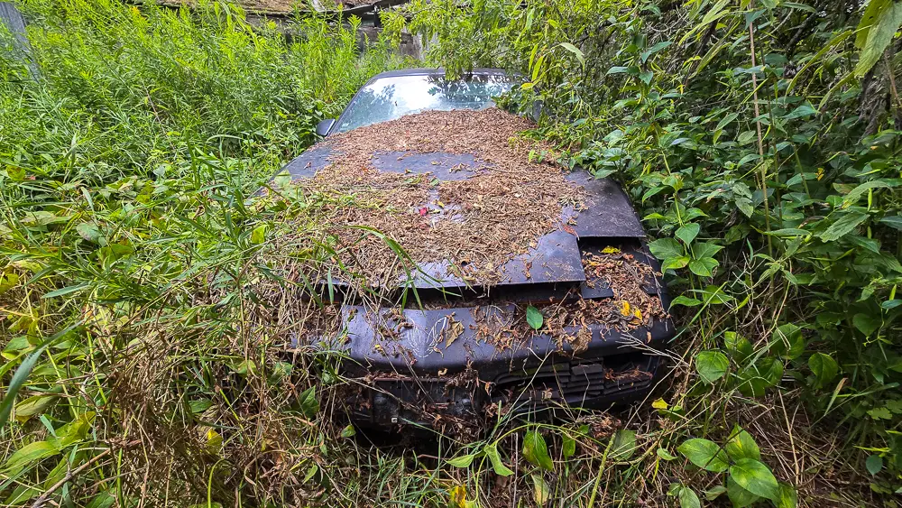 This property appears to be separate from the well-known stone farmhouse located across the road, with its own access route extending west into the forest. While the absence of a house would normally make this site easy to overlook, the vehicles and their extreme isolation tell a compelling story of long-term abandonment and minimal disturbance.