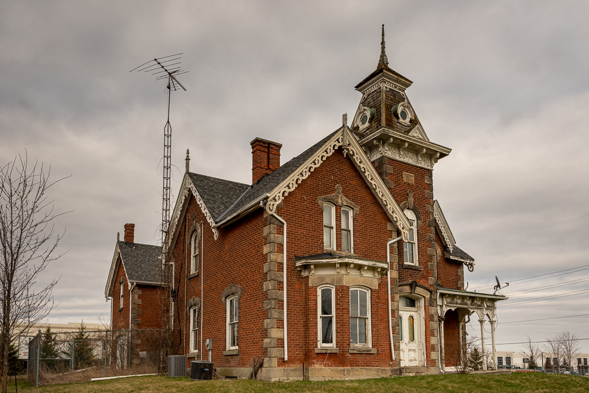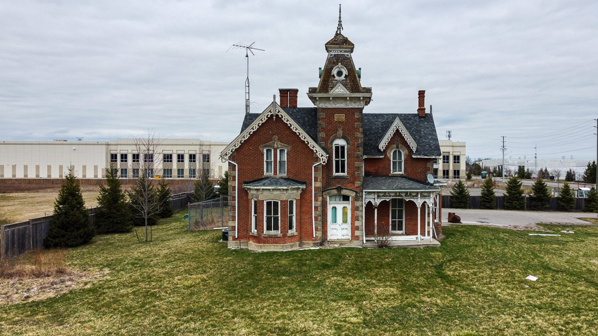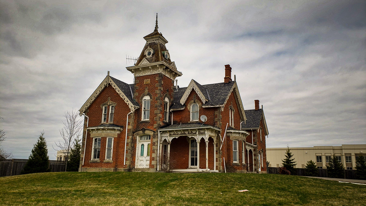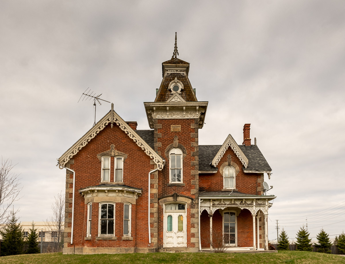 This now abandoned High Victorian Mansion is a two storey red brick residence was constructed by a local farmer in 1880 The property was designated for its heritage value under the Ontario Heritage Act in 1997