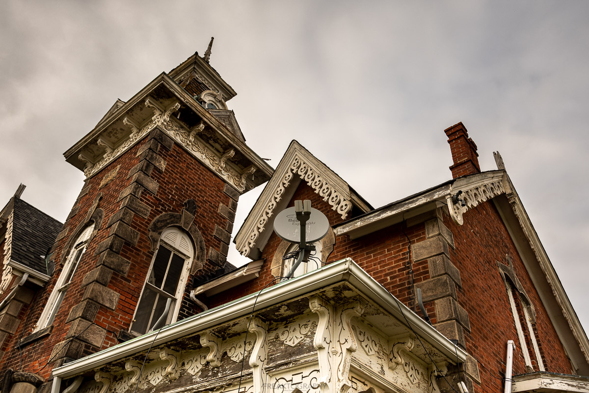 Unfortunately, the inside of the home has been far too sanitized and modernized and much of its old Victorian charm is gone.  The tower, accessible by a hatch in the 2nd floor ceiling is locked with a padlock so I won’t be climbing up there.  After getting home and looking at my drone footage, it was noted that a roof hatch was open, this would have been accessible by climbing into the attic, and would also require me to go get a ladder..all too much effort that I wasn’t interested in.