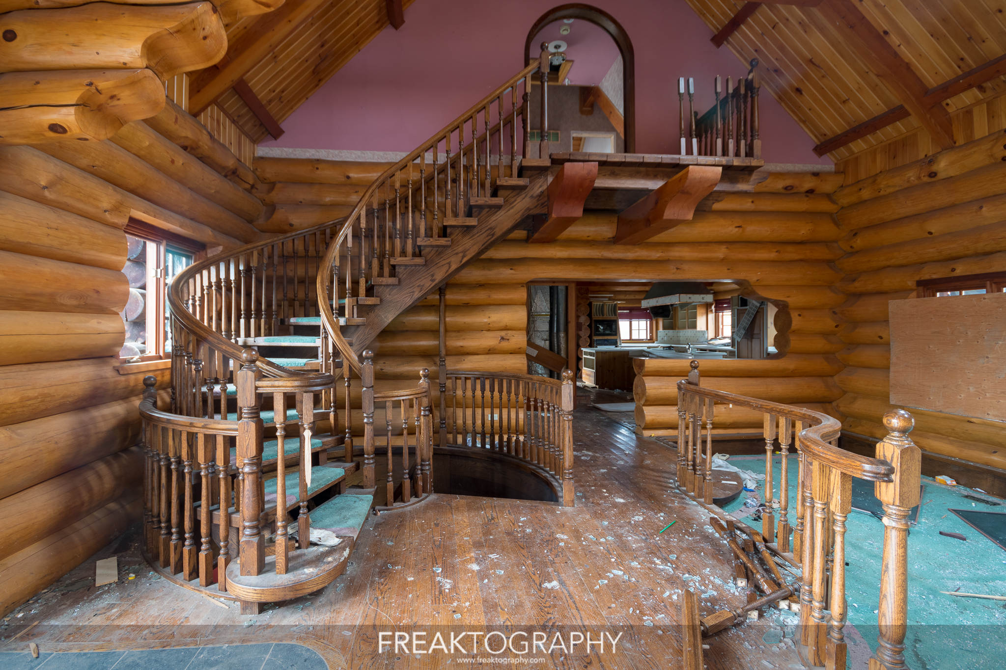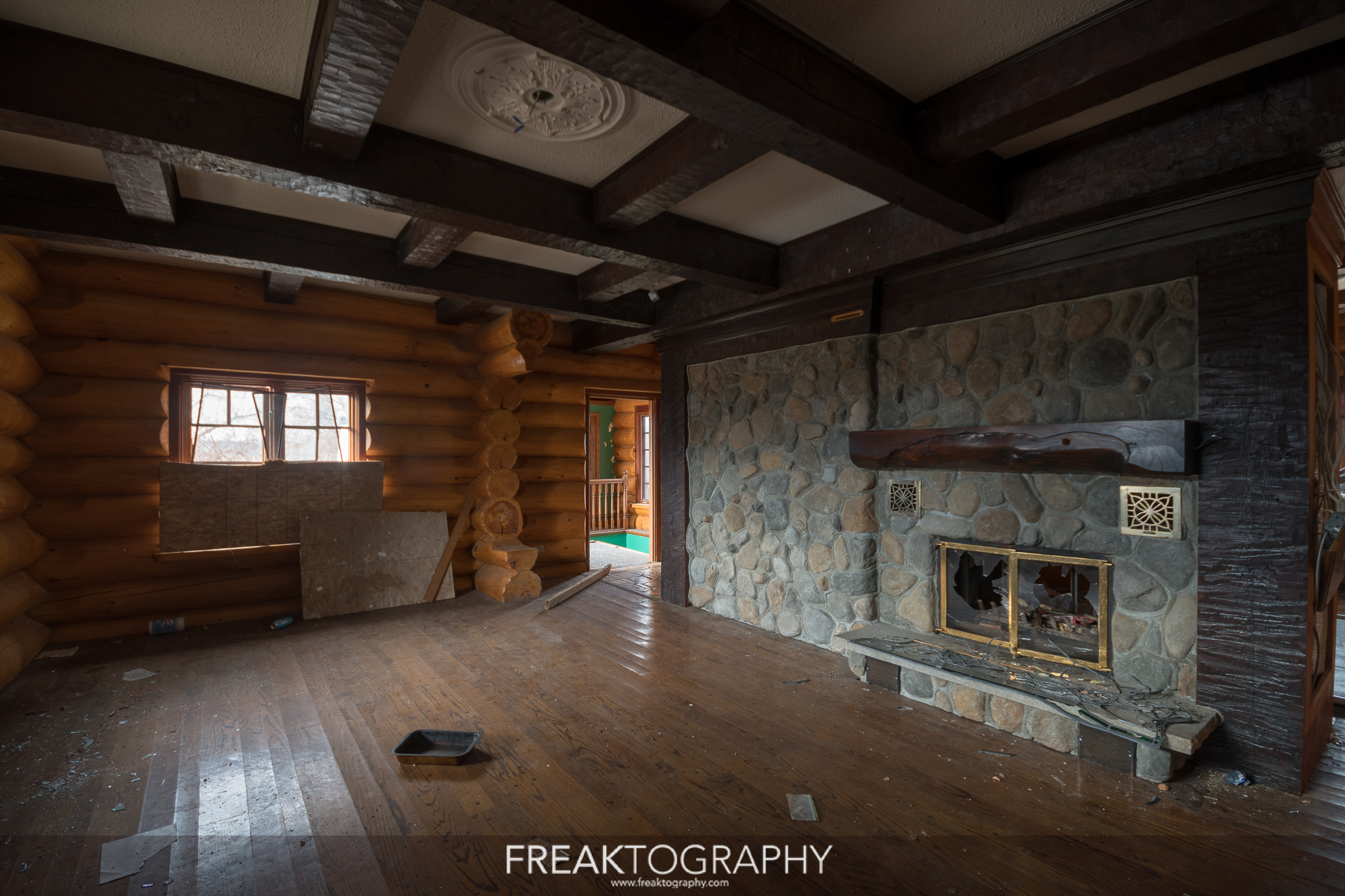 This abandoned mansion gallery is actually from an abandoned log home that I visited during a long day of urban exploring abandoned houses and mansions. RiddimRyder Photography and his girlfriend Zenning with Zay discovered this one in the winter and shared this one with me.