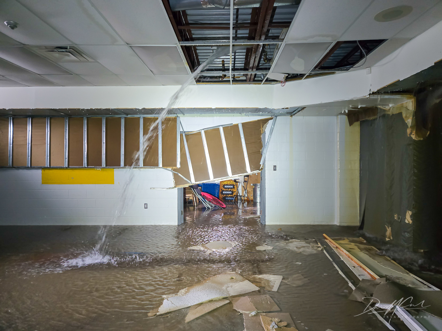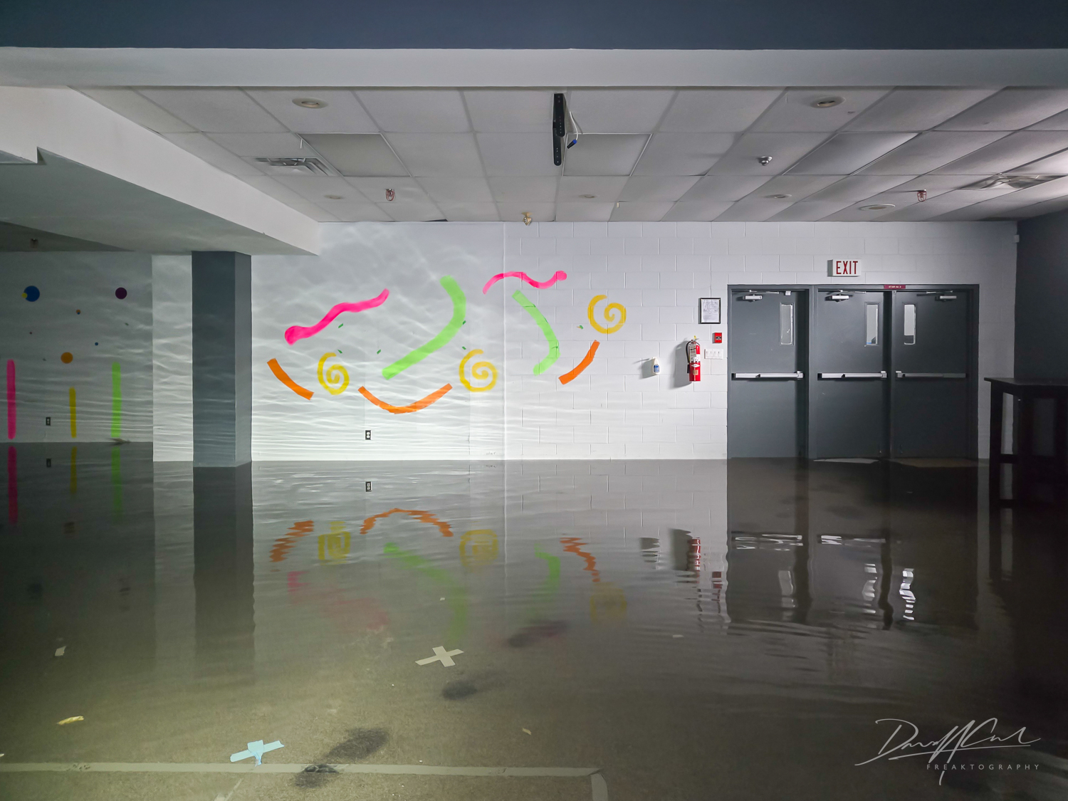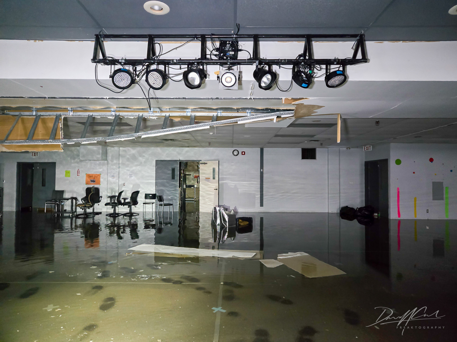 The basement of this abandoned mega church was like nothing I’ve ever seen. A broken pipe was gushing water non stop, creating what looked and sounded like a natural waterfall. The lower level of this abandoned church was covered in several feet of water, making it one of the most dramatic flooded abandoned places I’ve explored.