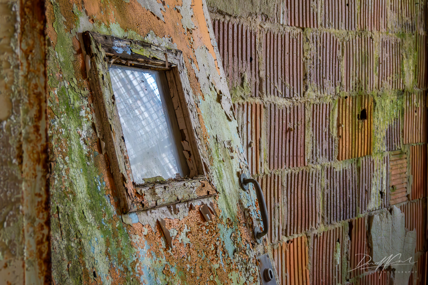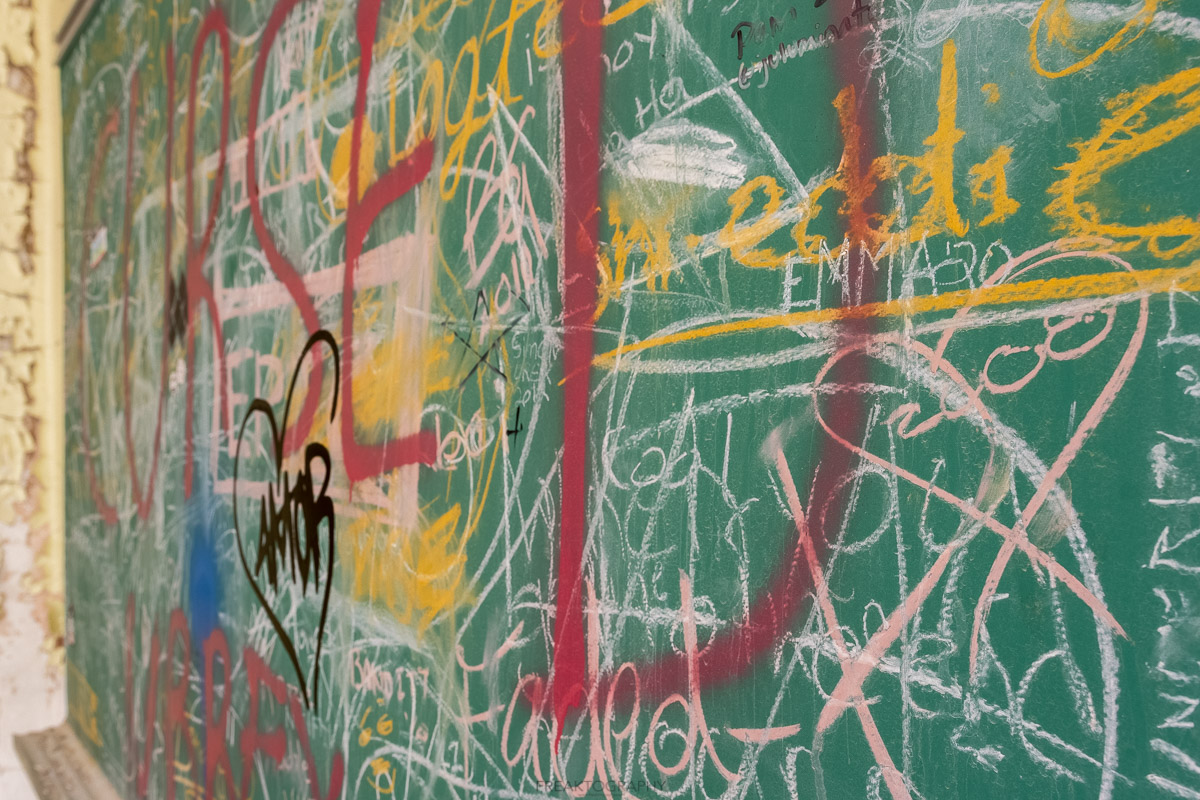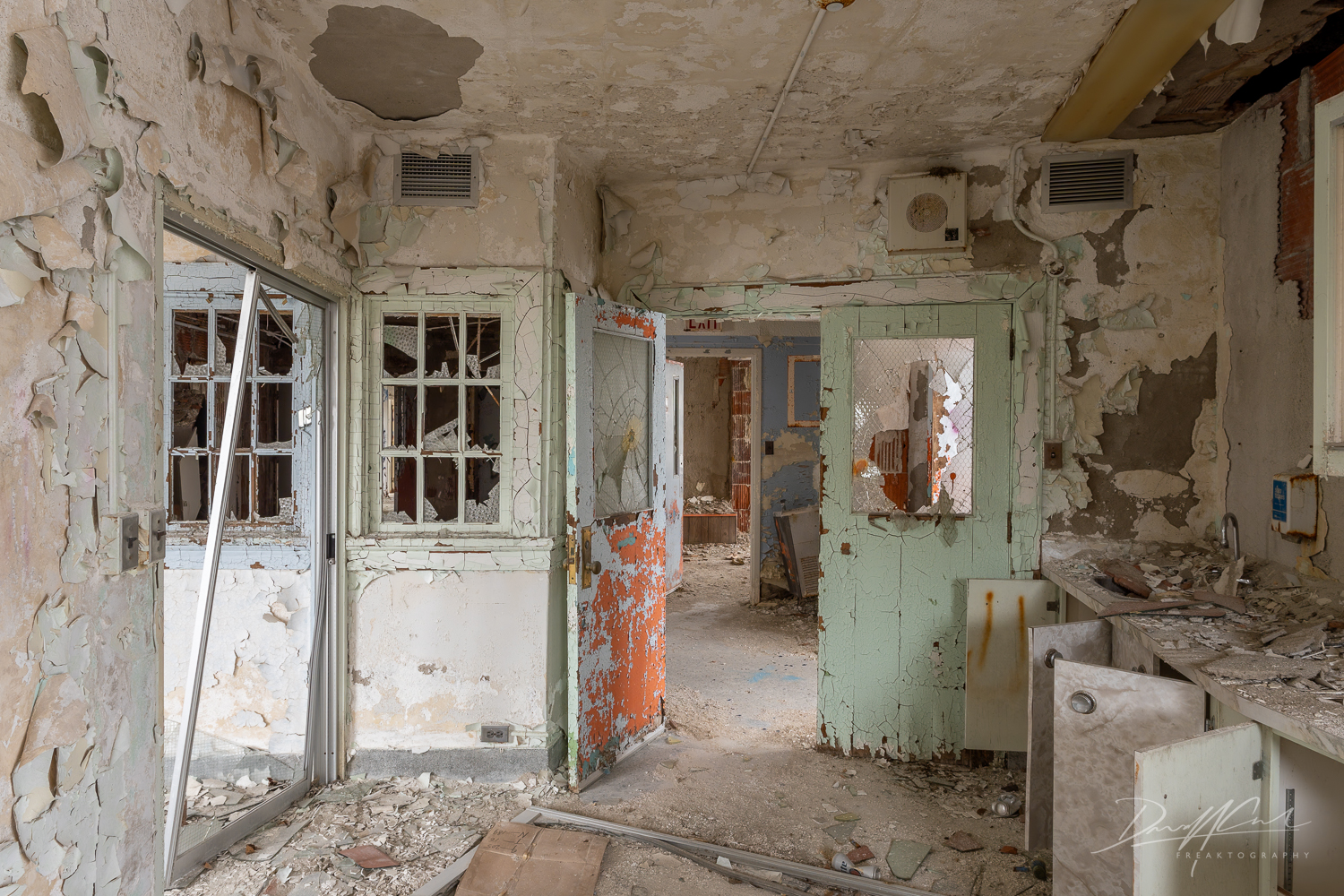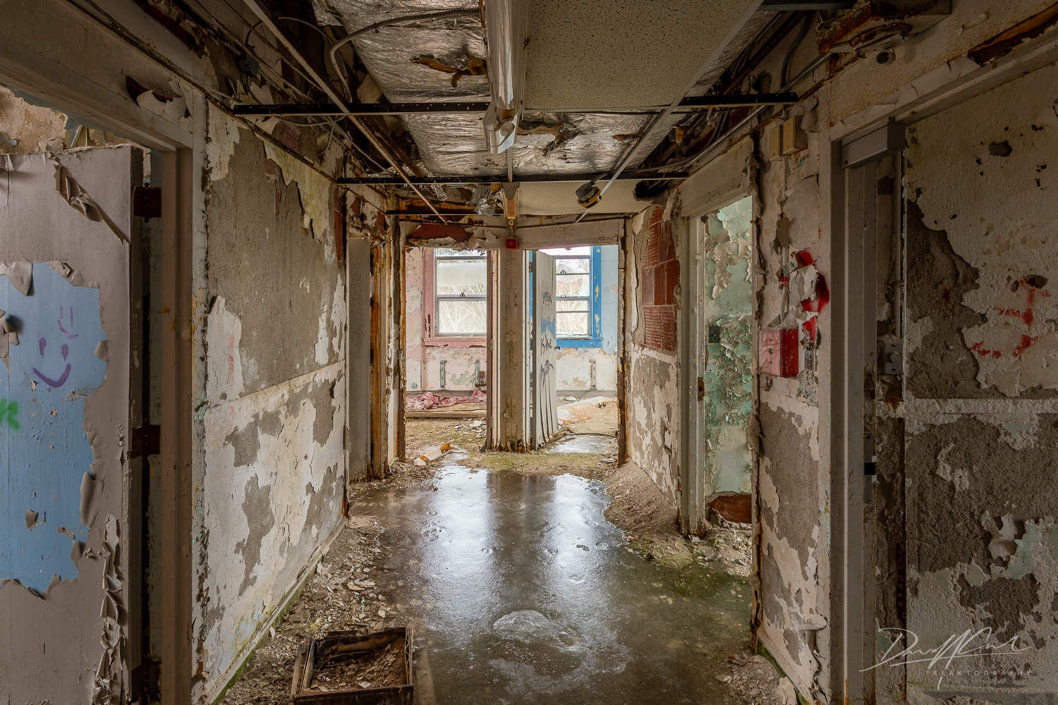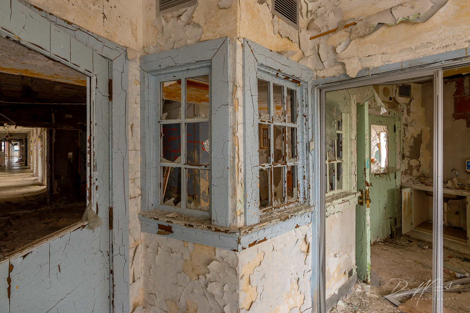I said goodbye and made my way around, I wasn’t having much luck finding a way inside until I finally came across a window that had a board ripped off and a table to allow for easier entry. Relieved that I hadn’t wasted my time I made my way into the San once again and right away knew where i was. I managed to keep my bearings the whole time I was inside, unlike my first explore I knew where I was the whole time. First observation, much more graffiti this time around….LOTS more! Also much more vandalism, I didn’t think it was possible to vandalize this place more than it was, but they found a way!