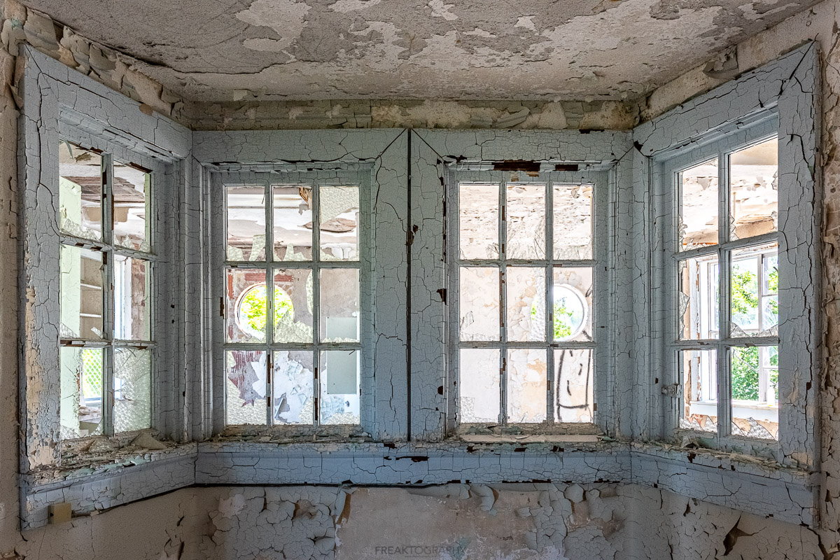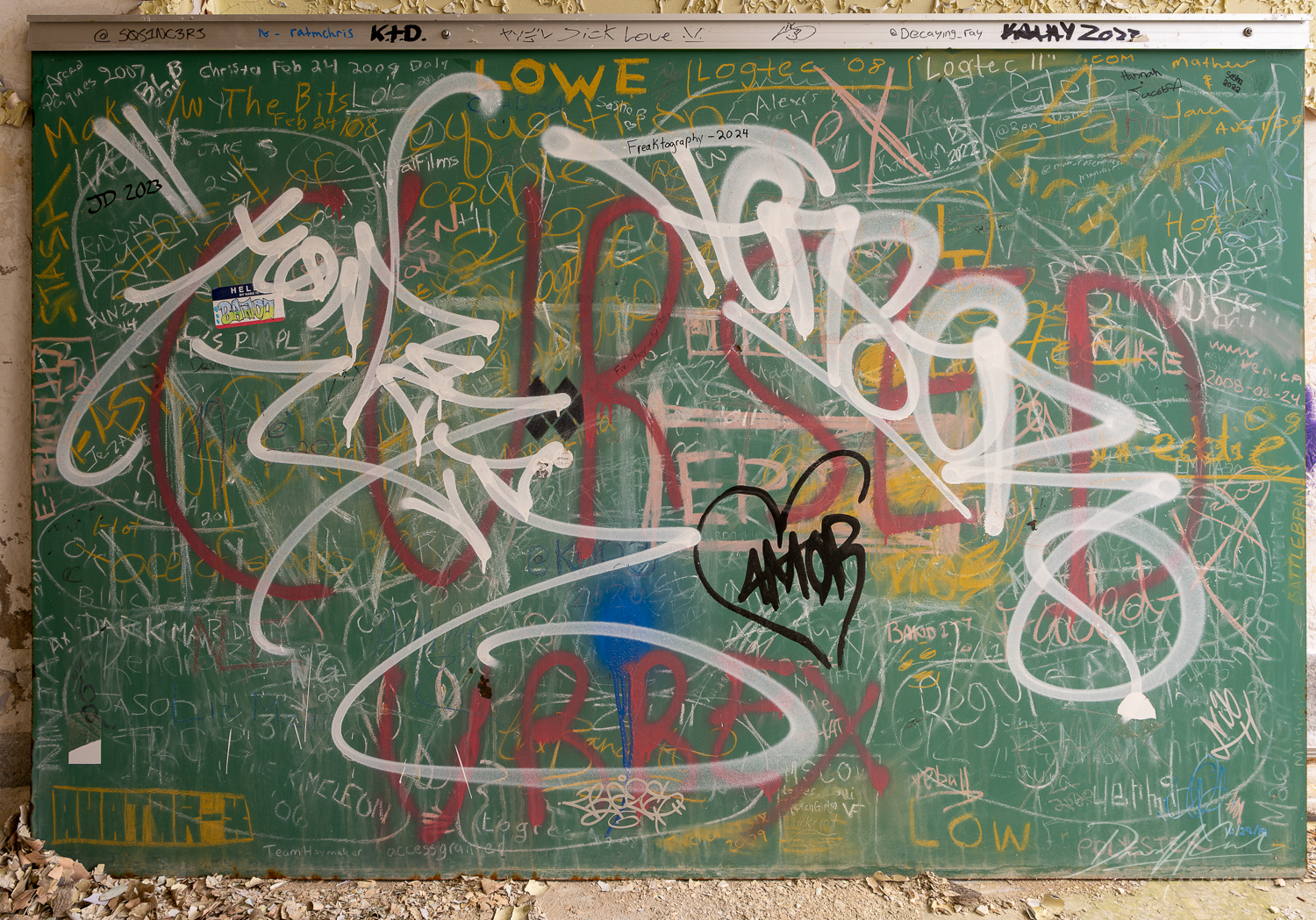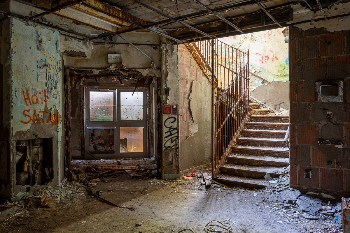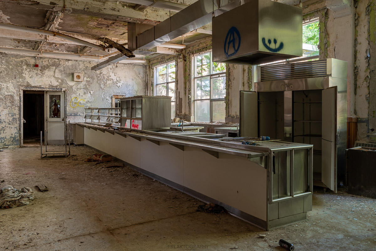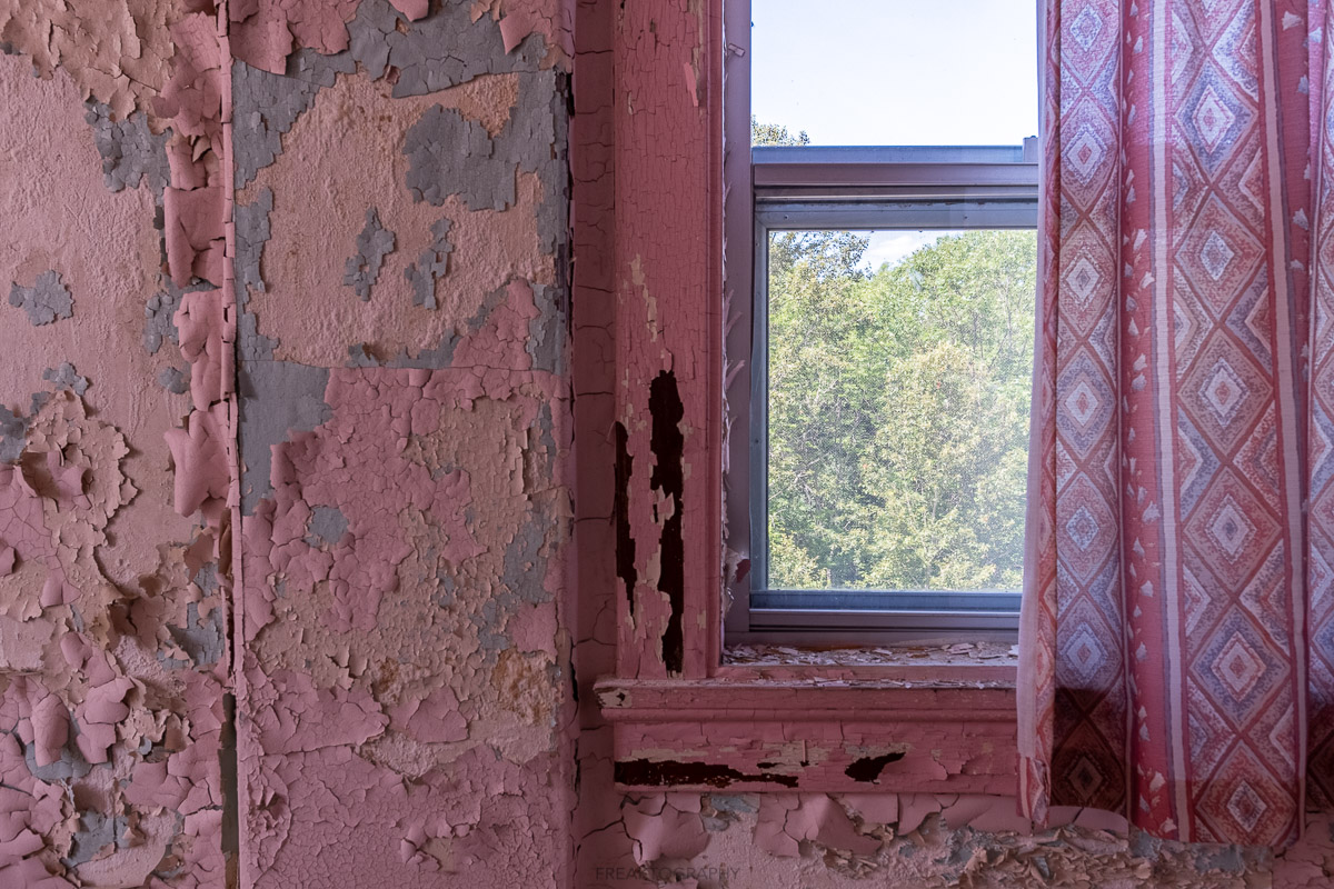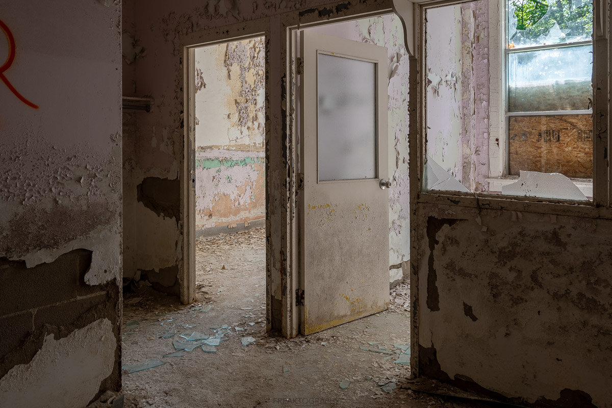 I said goodbye and made my way around, I wasn’t having much luck finding a way inside until I finally came across a window that had a board ripped off and a table to allow for easier entry. Relieved that I hadn’t wasted my time I made my way into the San once again and right away knew where i was. I managed to keep my bearings the whole time I was inside, unlike my first explore I knew where I was the whole time. First observation, much more graffiti this time around….LOTS more! Also much more vandalism, I didn’t think it was possible to vandalize this place more than it was, but they found a way!