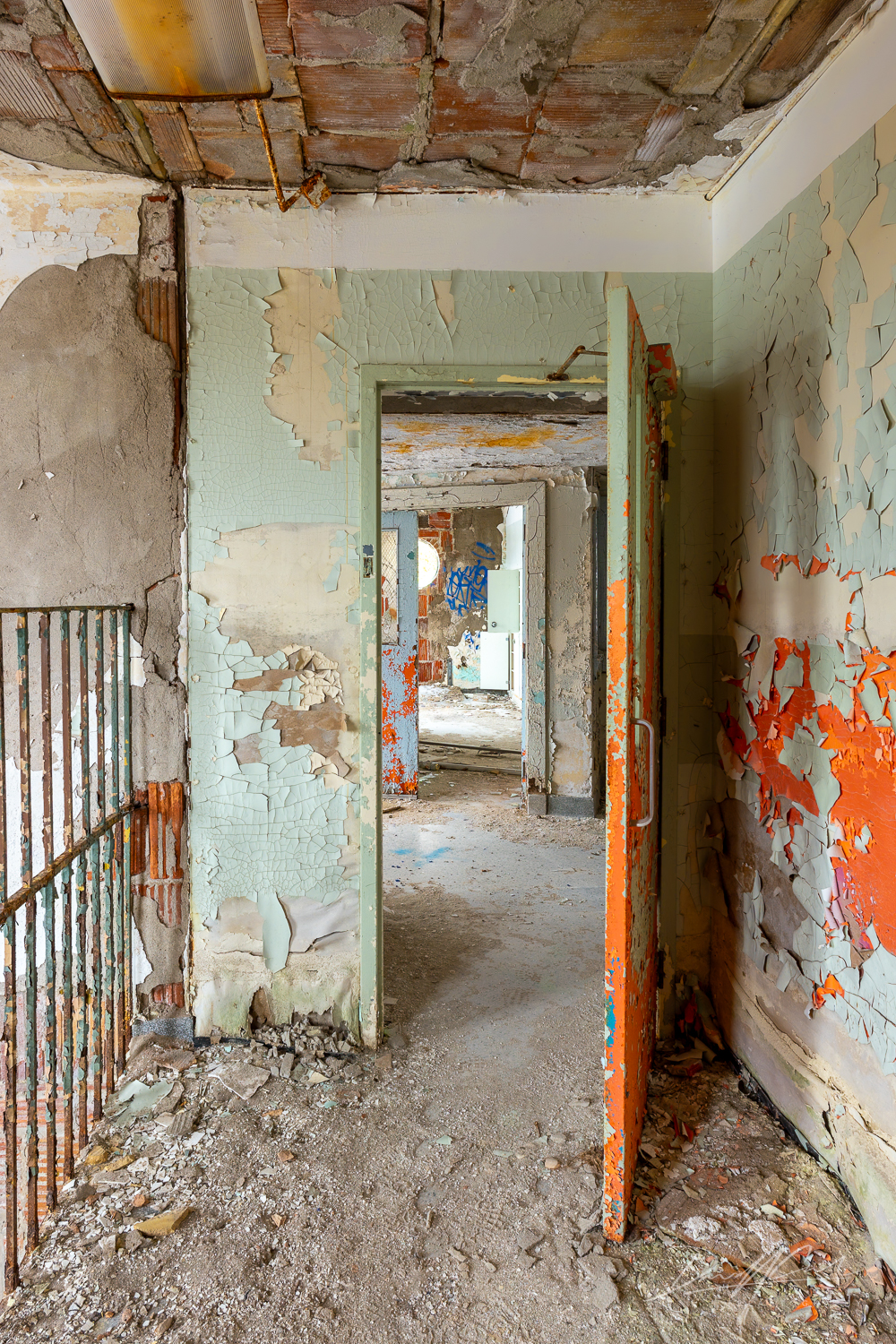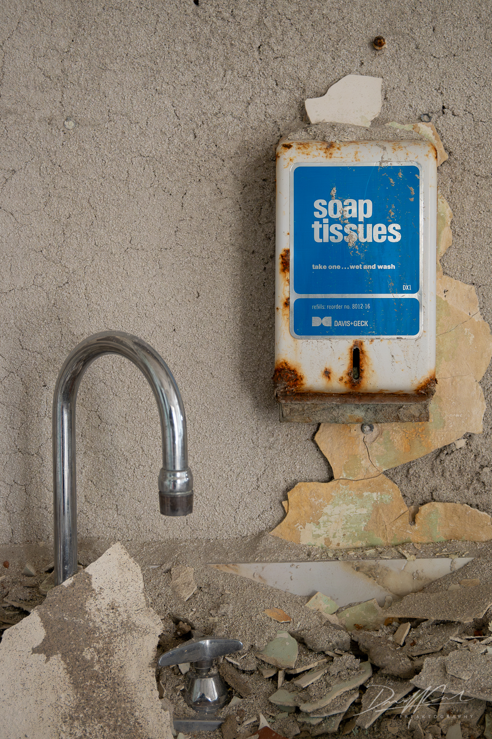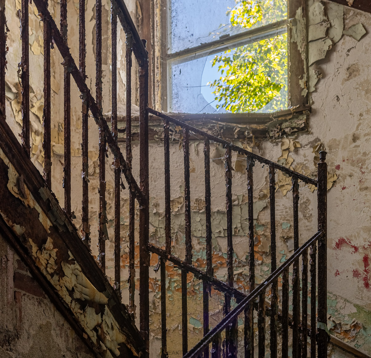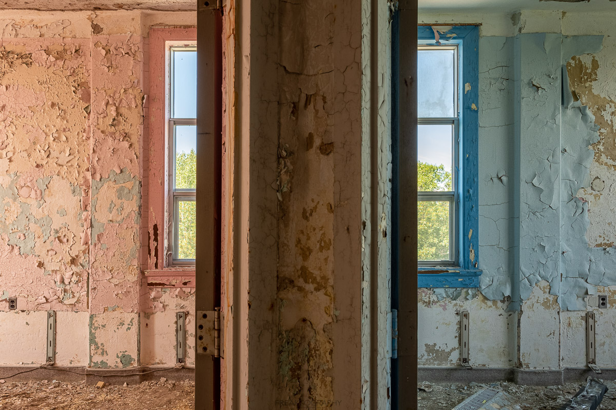 I found it very easy to get lost and turned around as I navigated this massive abandoned facility, having seen many photos from others I passed and photographed many familiar scenes. I would try and get my bearings but with so many hallways and stairwells I kept losing my place. I would make my way to the roof where I watched the security doing his patrol and then sit in his van. I enjoyed my lunch and captured some photos from the roof and the fall scenery before I made my way back inside to try and get back to the single open window in the basement, this was no easy task!
