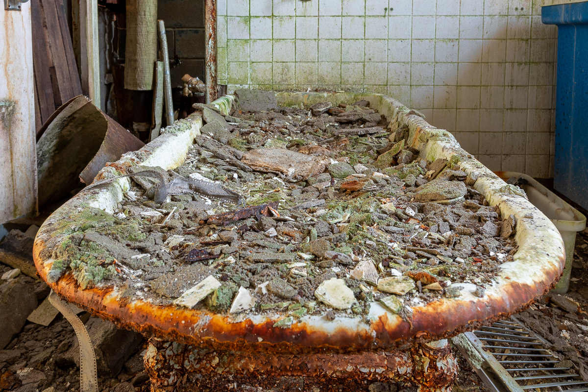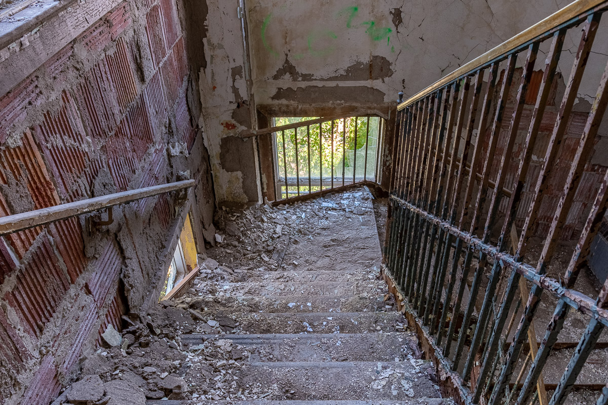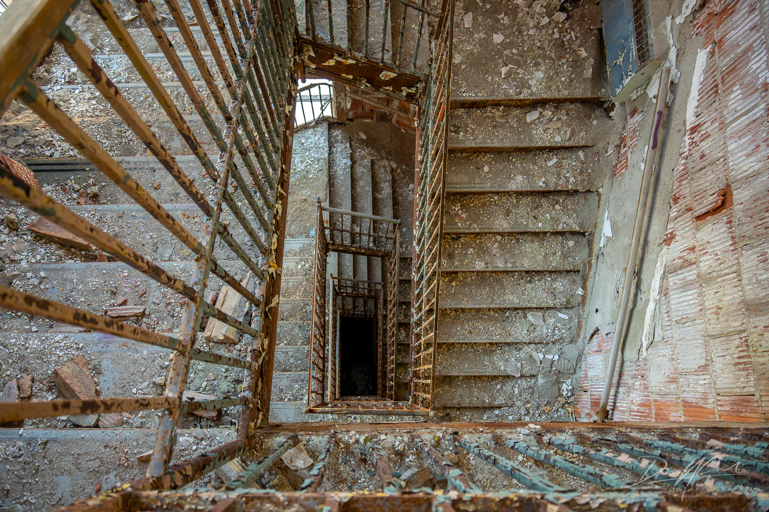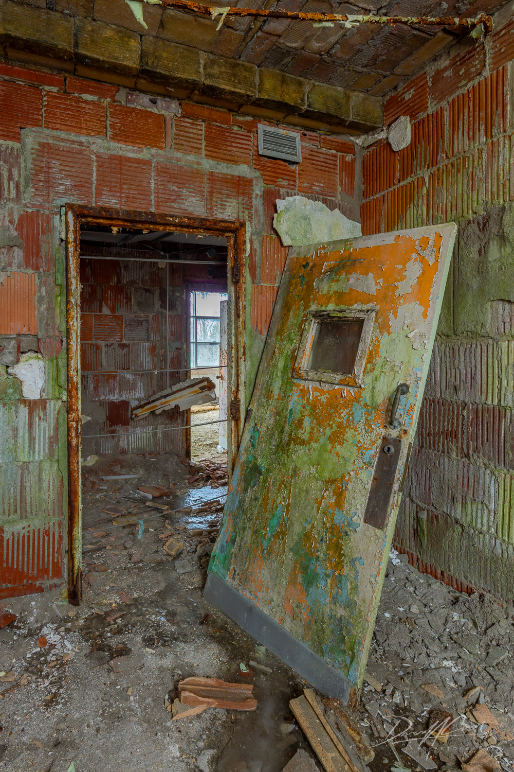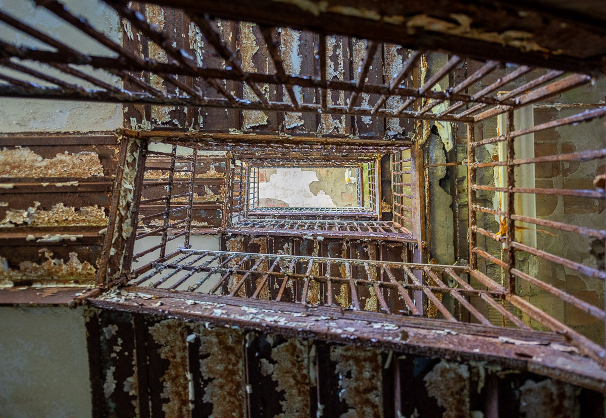 I found it very easy to get lost and turned around as I navigated this massive abandoned facility, having seen many photos from others I passed and photographed many familiar scenes. I would try and get my bearings but with so many hallways and stairwells I kept losing my place. I would make my way to the roof where I watched the security doing his patrol and then sit in his van. I enjoyed my lunch and captured some photos from the roof and the fall scenery before I made my way back inside to try and get back to the single open window in the basement, this was no easy task!