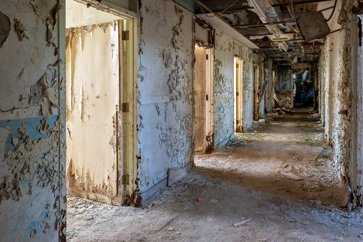 Early 2006: The first photos out of this large abandoned hospital came from OG Explorer Copy 6 AKA Bob Barrie AKA Urbex Barrie. The SAN had been abandoned for roughly 12 years and was used for training by the OPP for K9 and SWAT style training. All of the windows were still intact and no boards had yes been placed. Inside, there was much paint peel and some damage done from the police training but the facility was in great condition overall.
