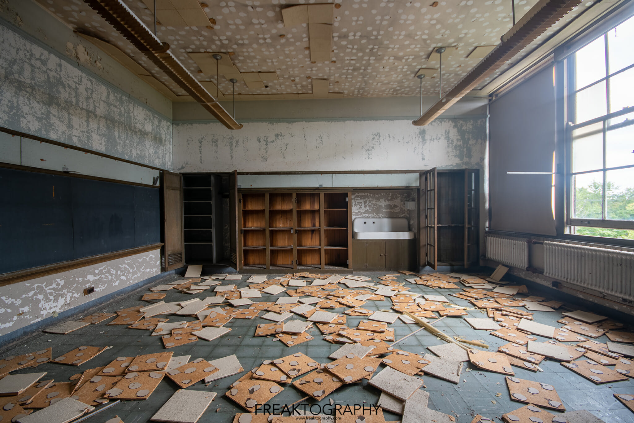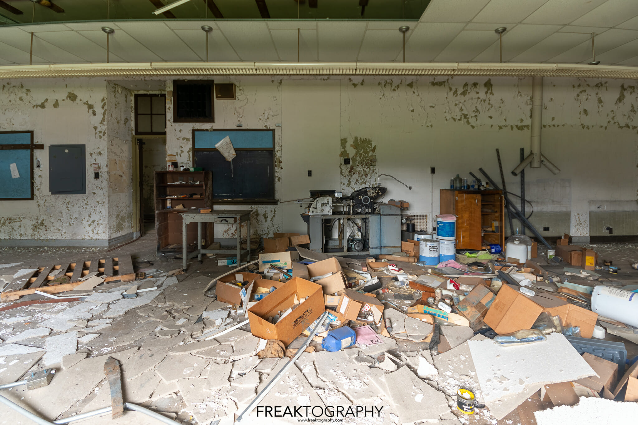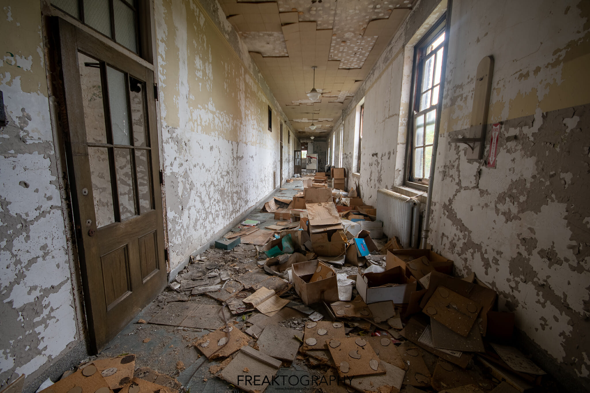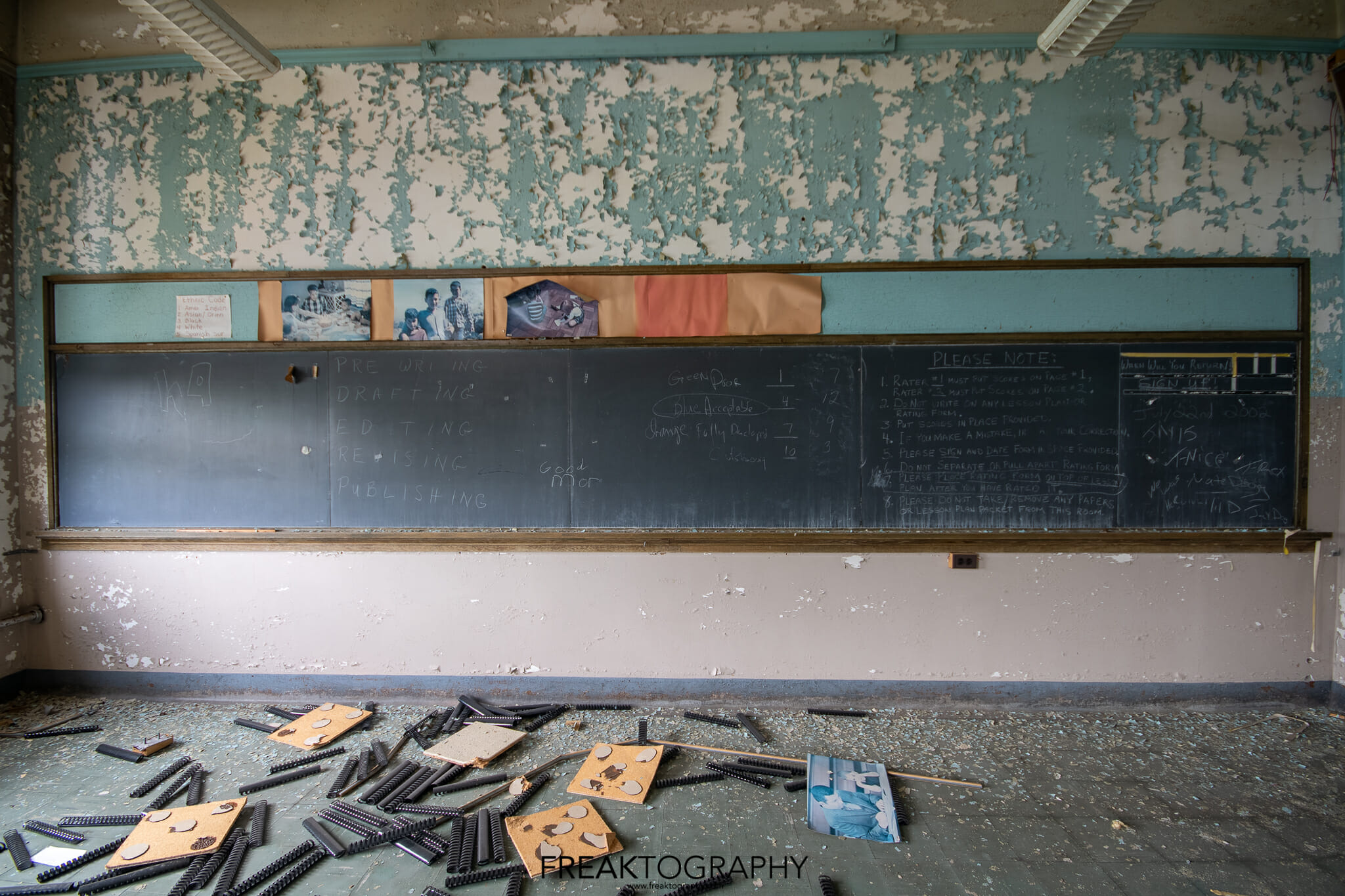 Inside was a smorgasbord of decay and textures, just what we love to see, the school is basically a big square with a courtyard in the middle and three floors. Many of the classrooms were the same as were the hallways, but the advanced decay inside was just what we needed!