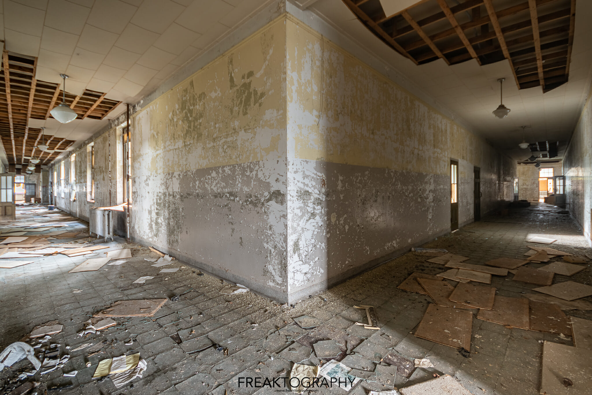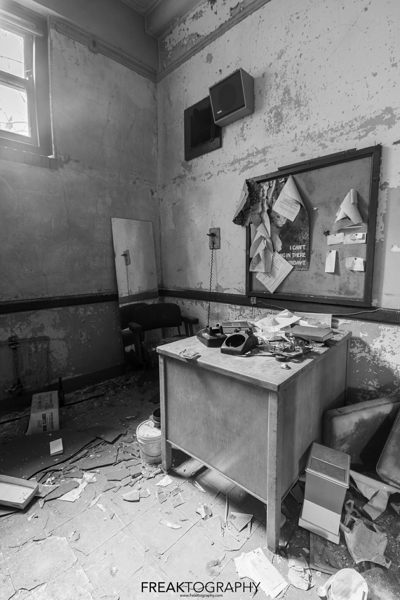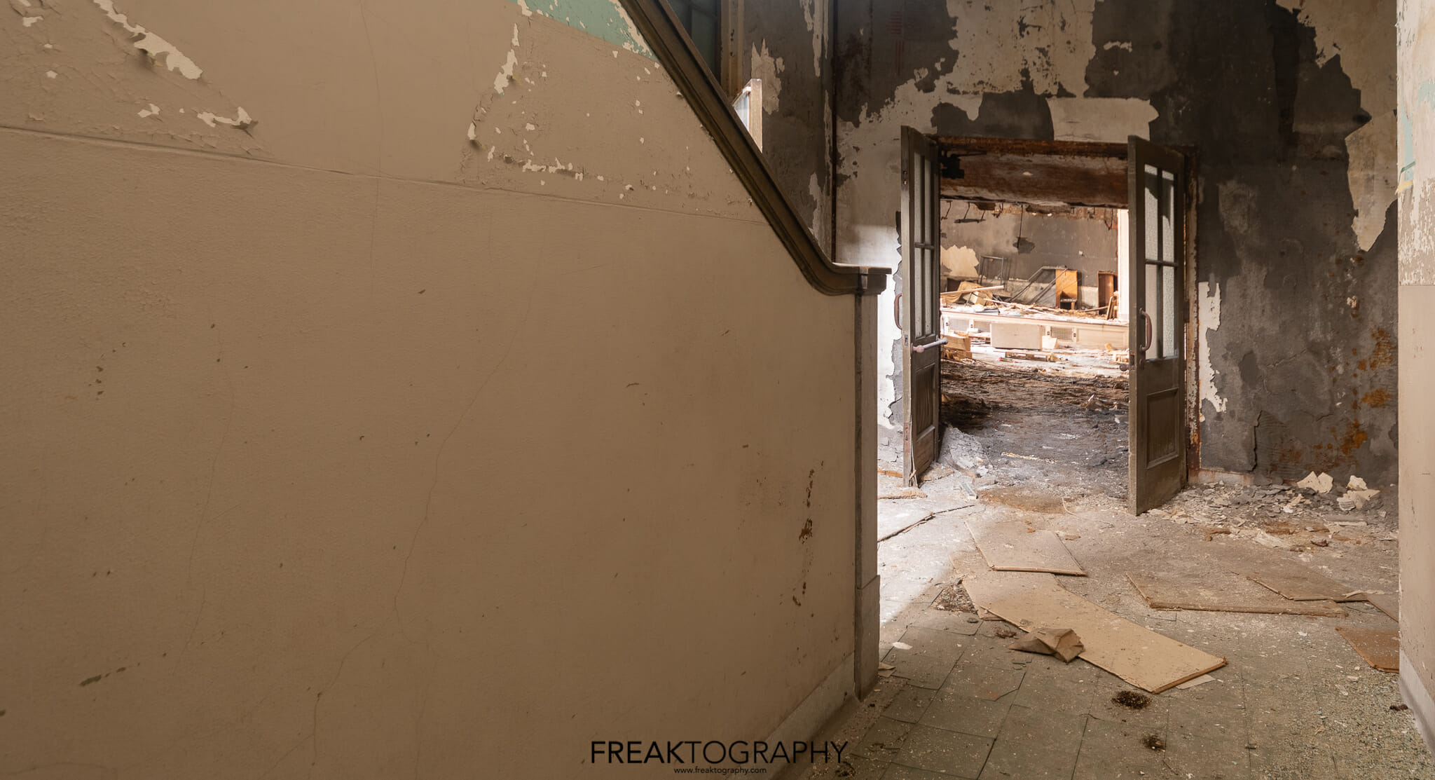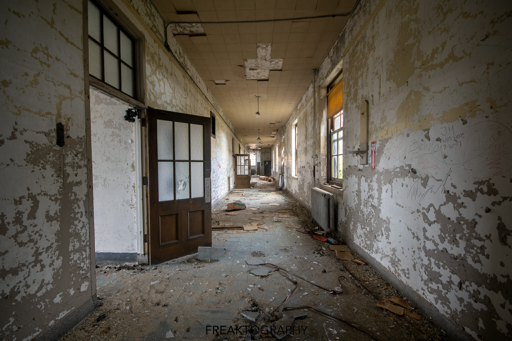 Inside was a smorgasbord of decay and textures, just what we love to see, the school is basically a big square with a courtyard in the middle and three floors. Many of the classrooms were the same as were the hallways, but the advanced decay inside was just what we needed!