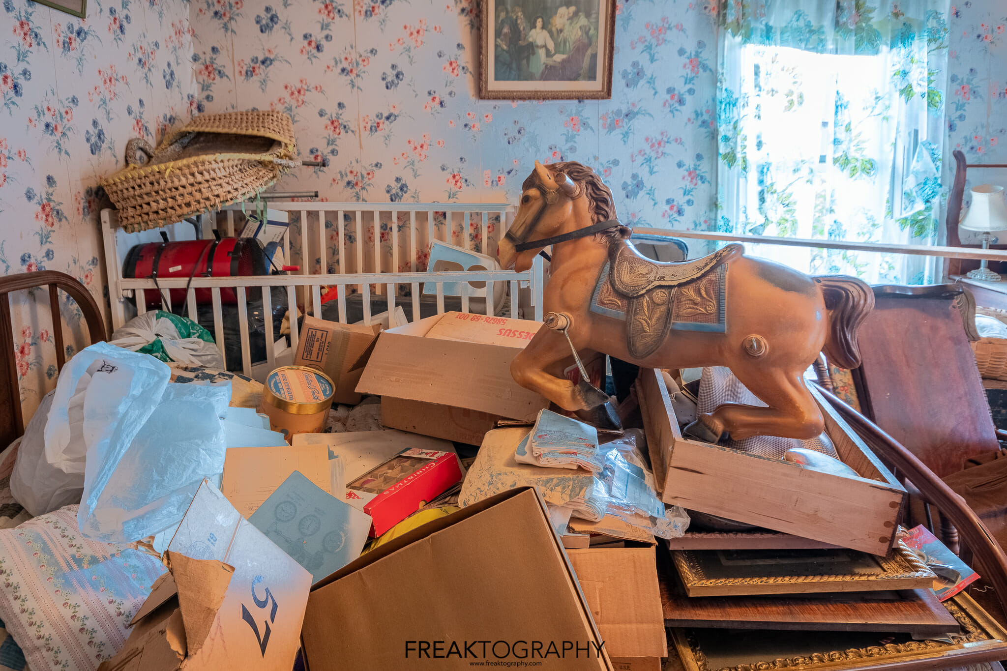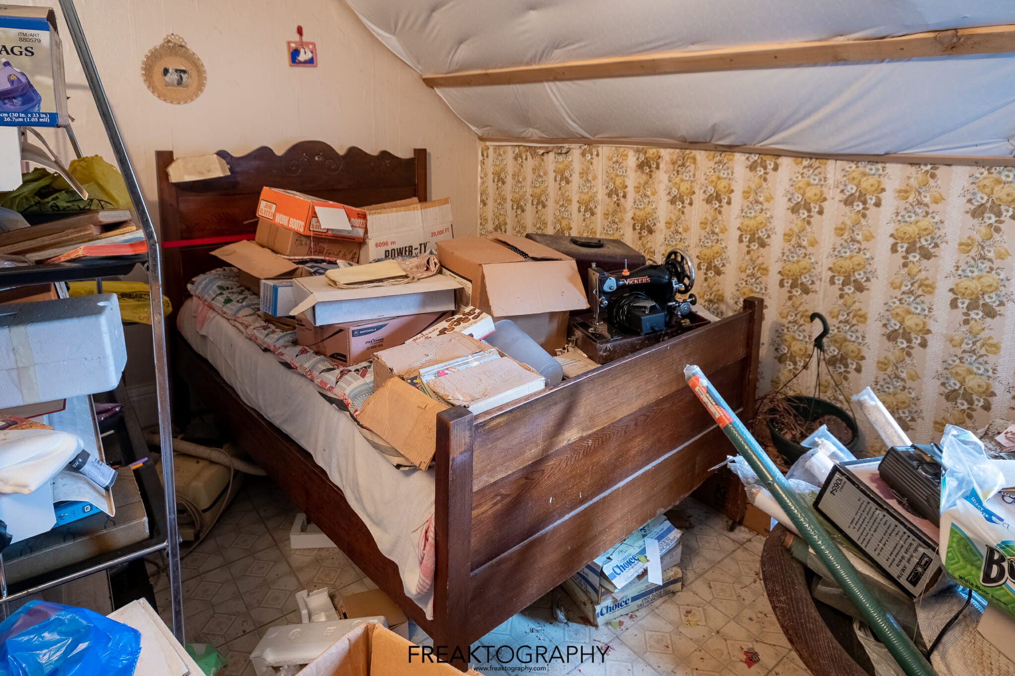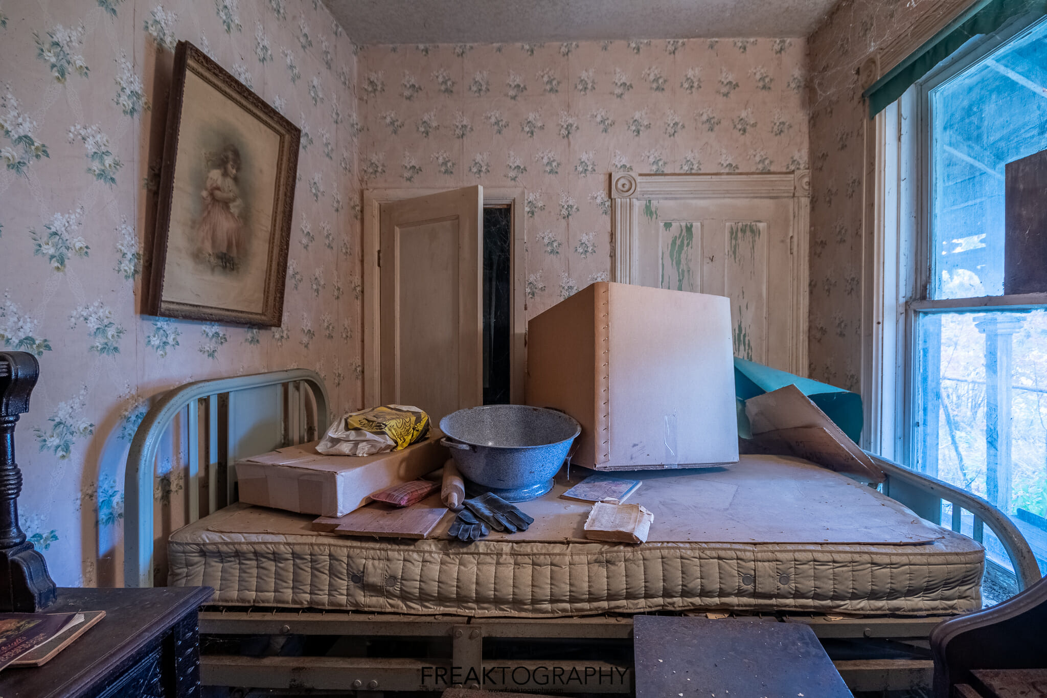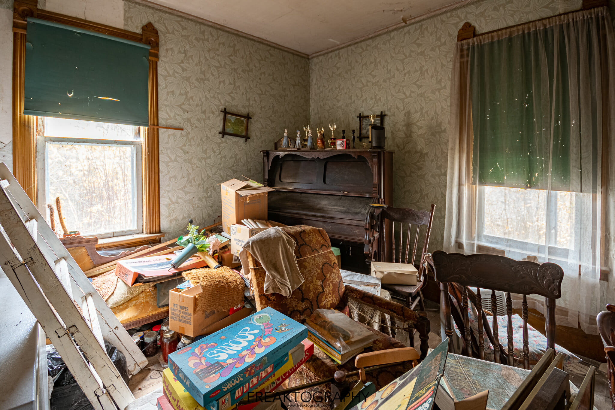 Having photographed this entire abandoned time capsule house from a wide perspective, now I had the task of going back around and honing in on the details, looking for the items of interest that were scattered all over the rooms, on the beds, on the dressers and on the floors. I was beginning to lose light and I had already been here a long time which is not always a good idea!