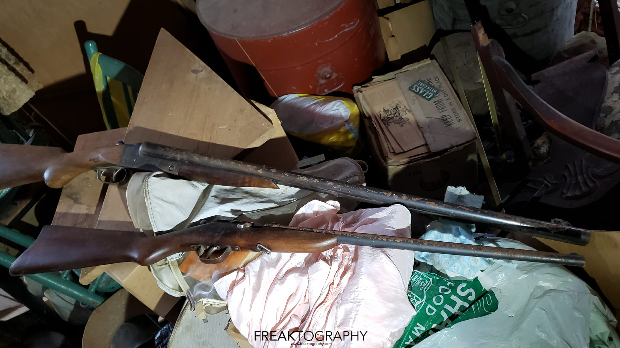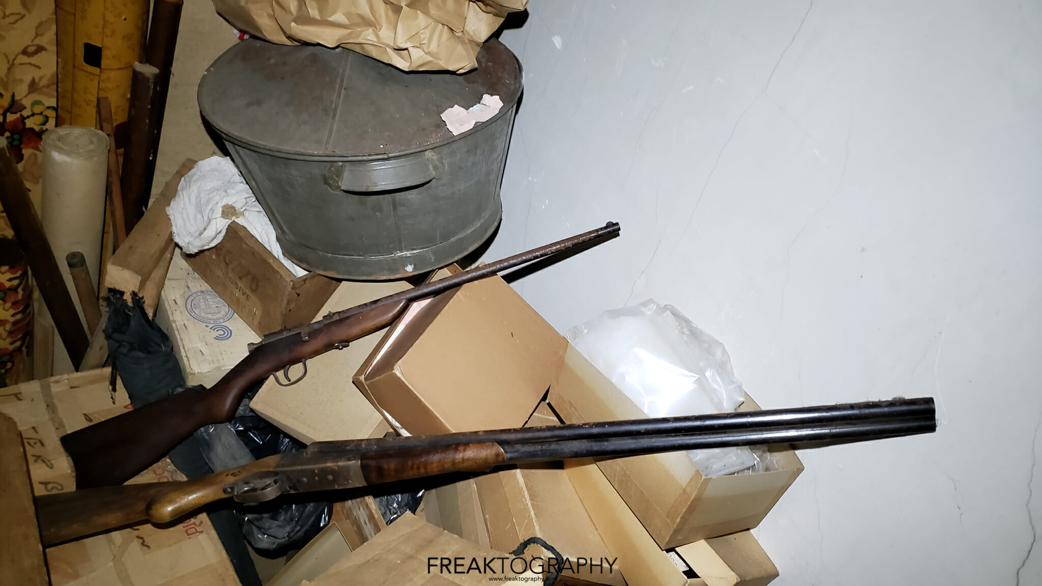 Other items of great interest and shock were two shotguns found tucked into a corner of a closet and a fully functioning gramophone. Below the gramophone was a box of old thick vinyl records and I could just not help but play one, see the video below.