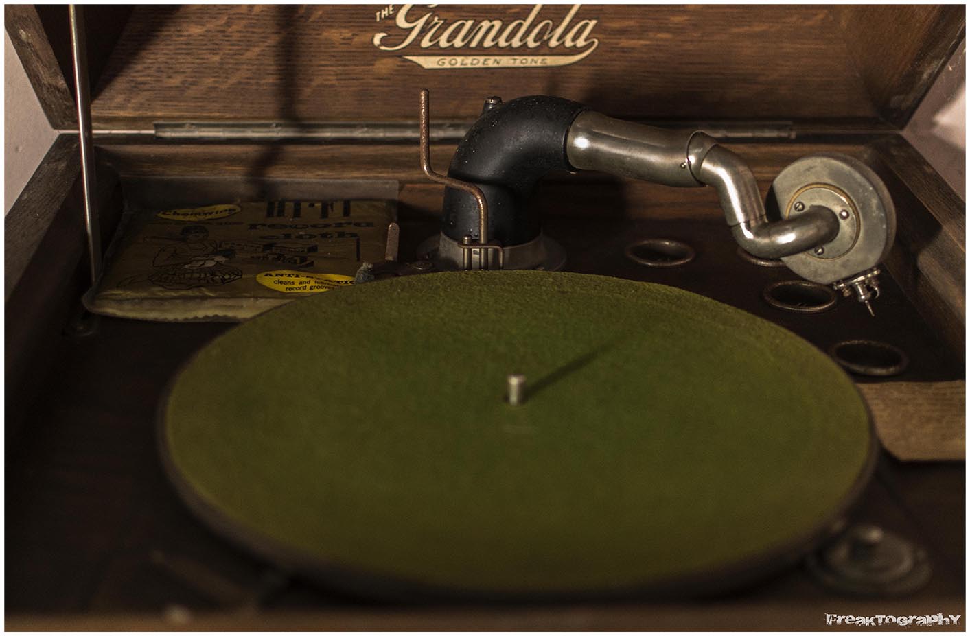 On top of that were some old records and candles. But these weren’t normal records, they were thick and heavy. I figured this must be another hutch or something, so I curiously lifted off the records and doily and placed them on a chair.