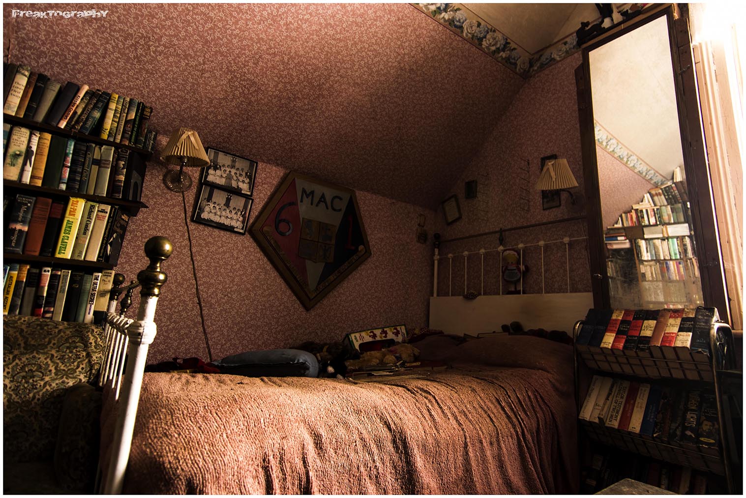 They bought some new things, explaining the more modern items, but on the whole didn’t need to. They’d been living there all their life and everything they needed was there. Maybe there was more than one family remember occupying, or maybe other family members came to visit (explaining modern toys for the kids) but really it was just one person living the kind of life that didn’t much disturb the house around them. If they needed something they continued to use it, if they needed something new they bought it, but otherwise they just left stuff alone. they read, listened to records and watched TV in the bedroom.