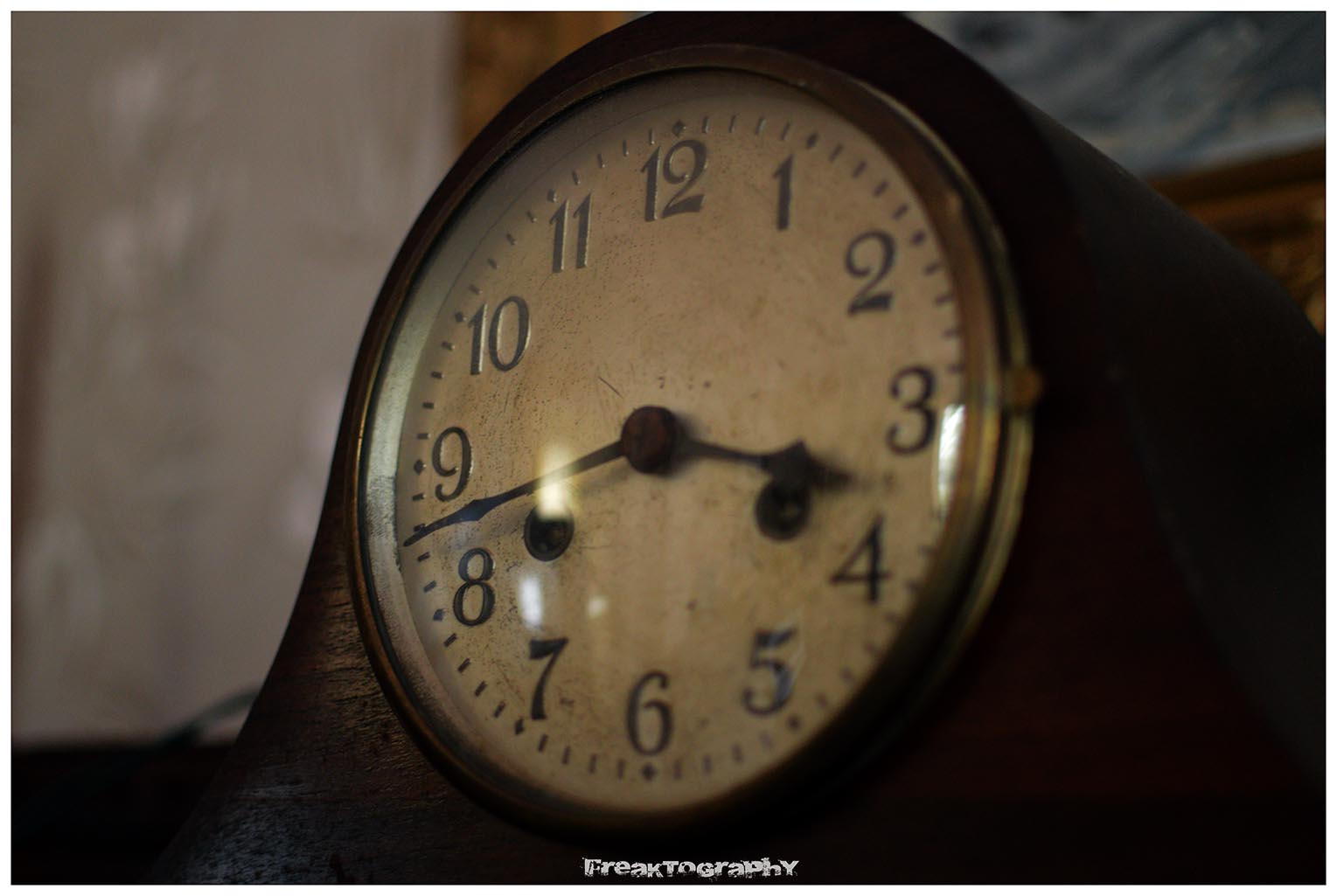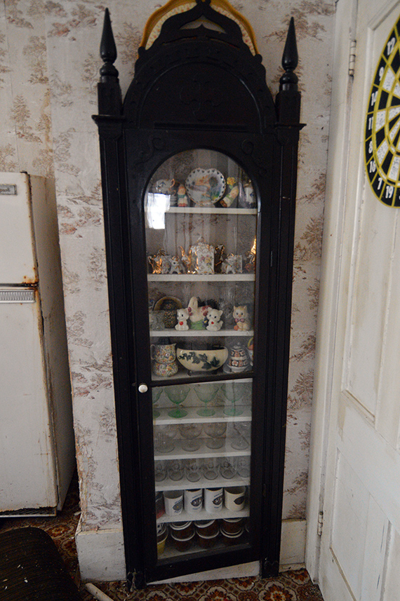 As soon as you enter the house you find yourself standing in front of the dining room table, still with the table cloth covering it and with chairs placed as they would be. To your right is a hutch, atop it sits a clock, forever reading 3:43, below on the shelf, two sets of silverware – still polished, perfectly placed in their wooden case and ready for the weekend’s company. Mugs, candles and other trinkets placed throughout, the main cabinet doors would not open – the result of years of staying closed.