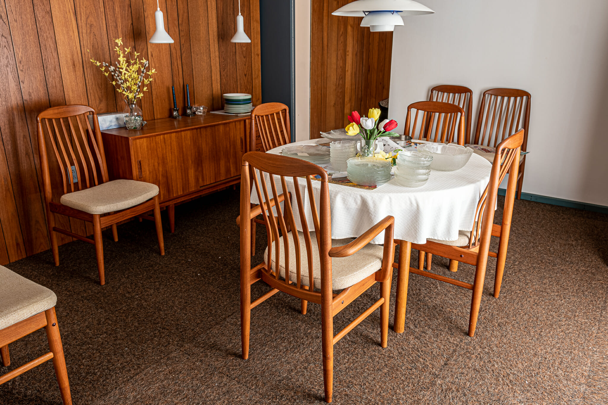 The home, located at the end of a cul-de-sac was built-in the 1980’s but styled after the 1950’s mid-century style.