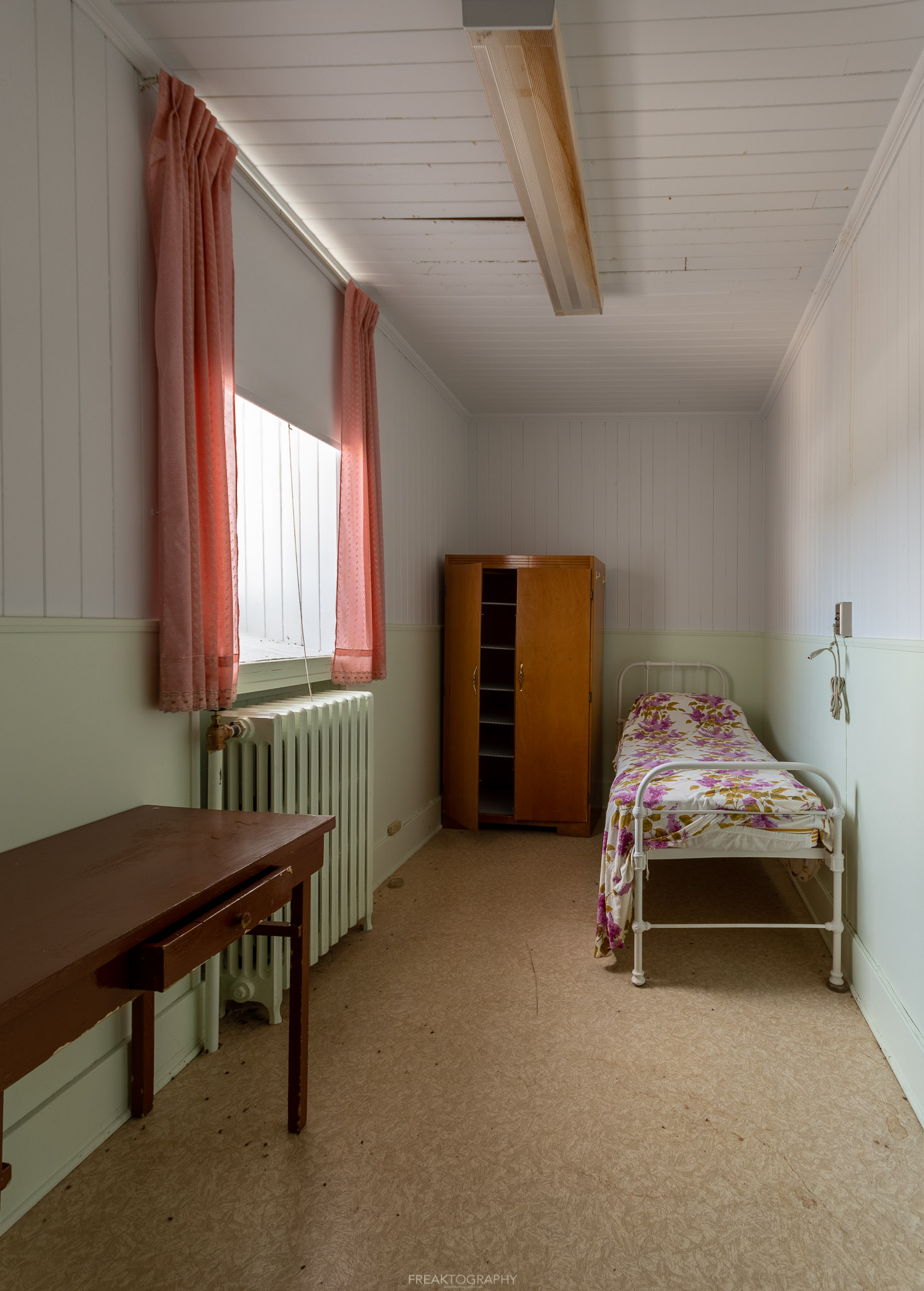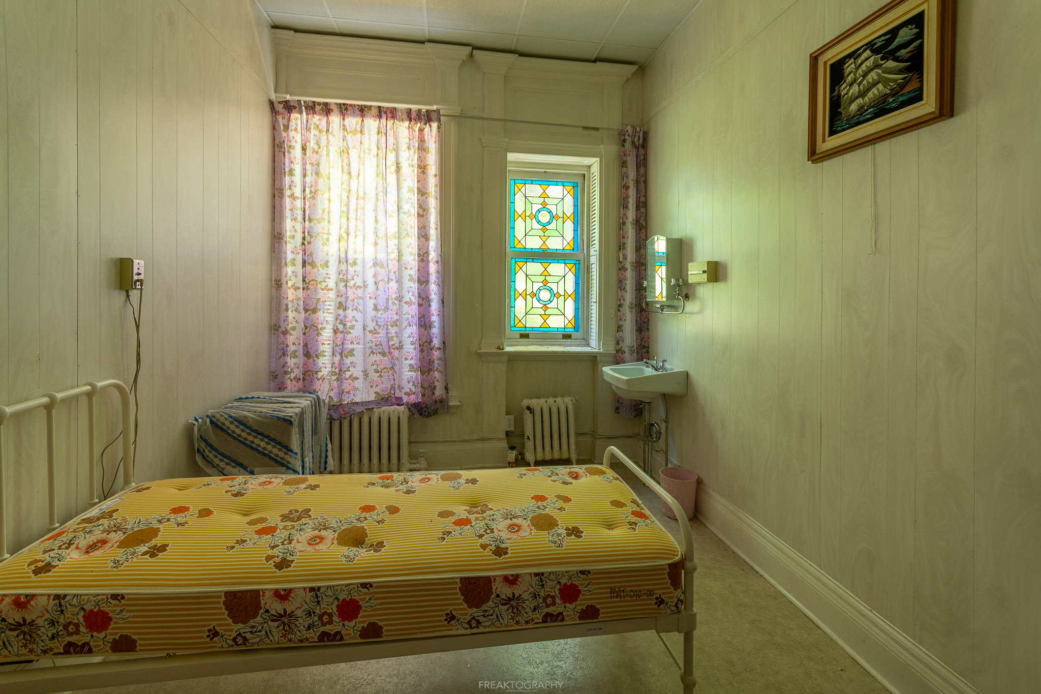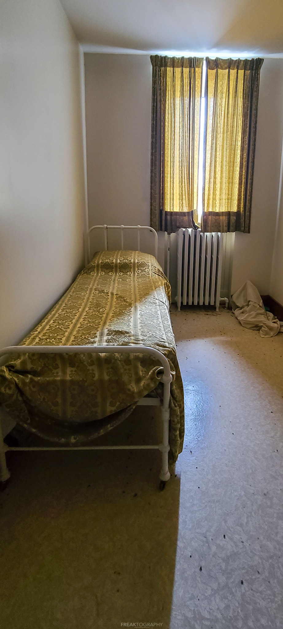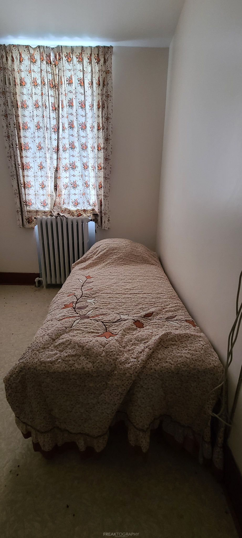 There were many rooms, all of them very clean and all of them with a single bed and dresser, each room locked from the inside.