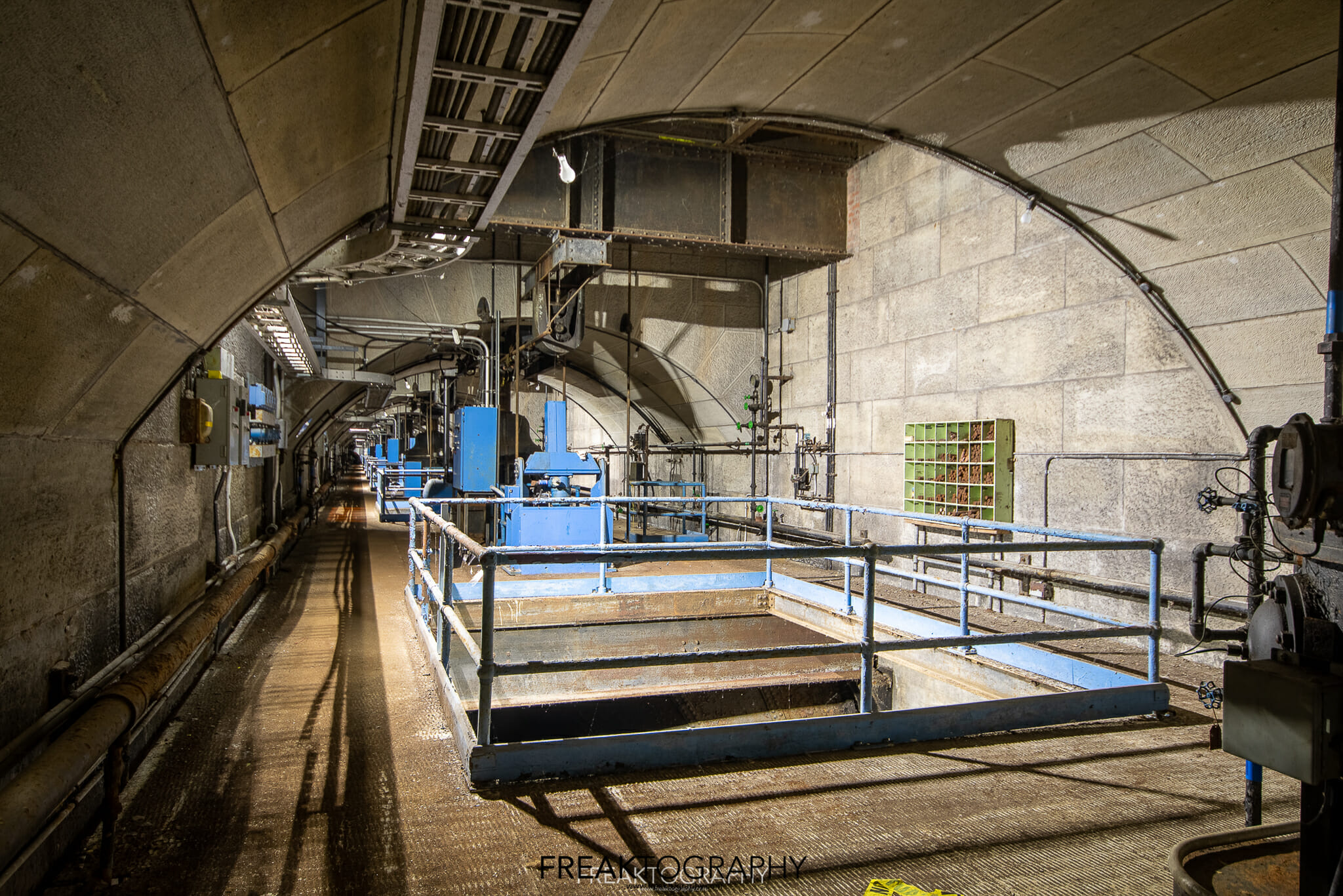 Directly beneath the hall there are utility tunnels, power distribution tunnels, storage rooms, locker rooms and more, each accessible by various sets of stairs.