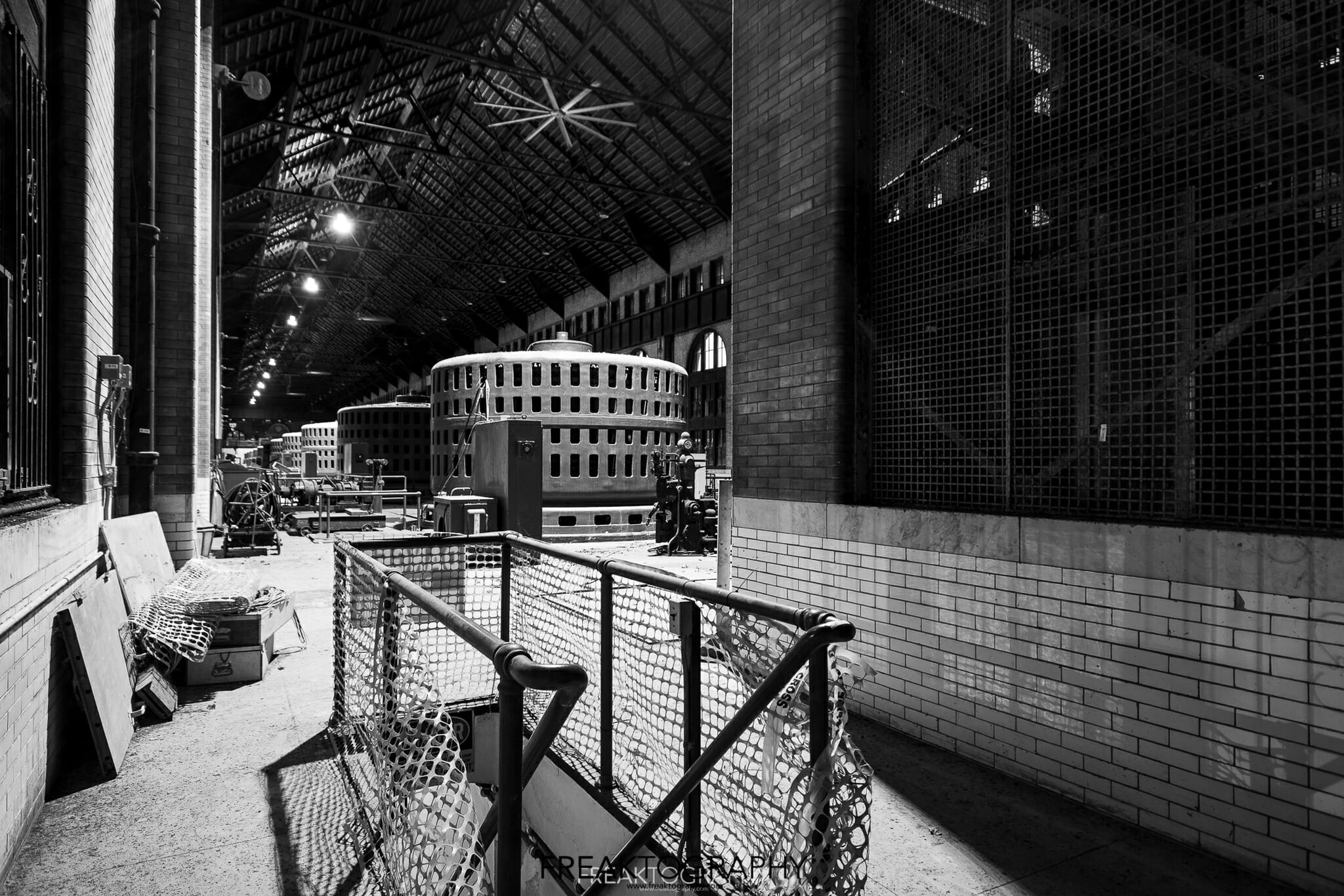 The building is a beast, as written by Micheal Cook from The Vanishing Point: “The William B. Rankine Generating Station is the last intact example of the mammoth engineering projects that pioneered the industrial-scale production of electricity at Niagara Falls between 1893 and 1906”. This plant contained twelve vertical axle, 25 Hertz generators rated at 8320 kVA each for a total generating capacity of 100 MVA.