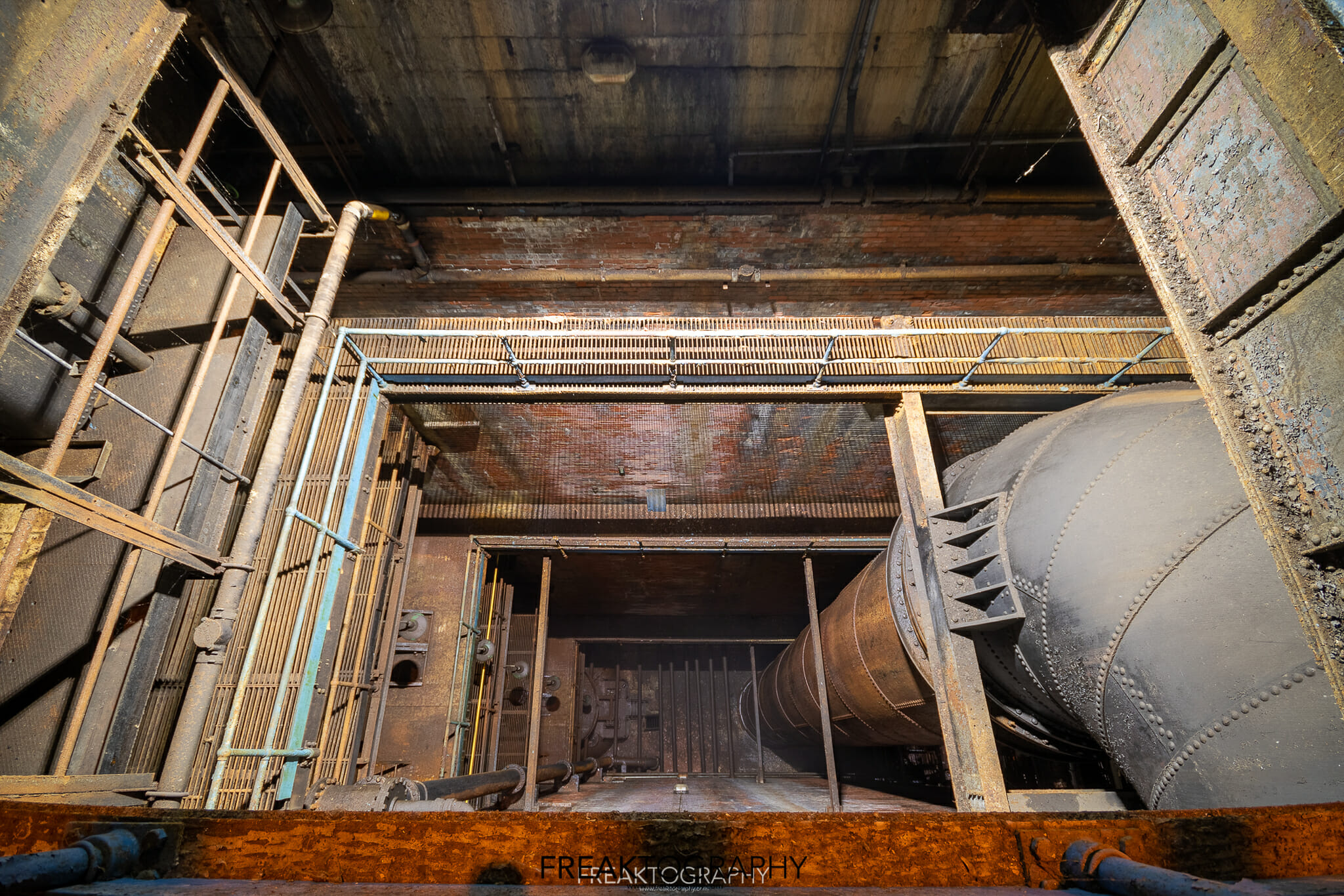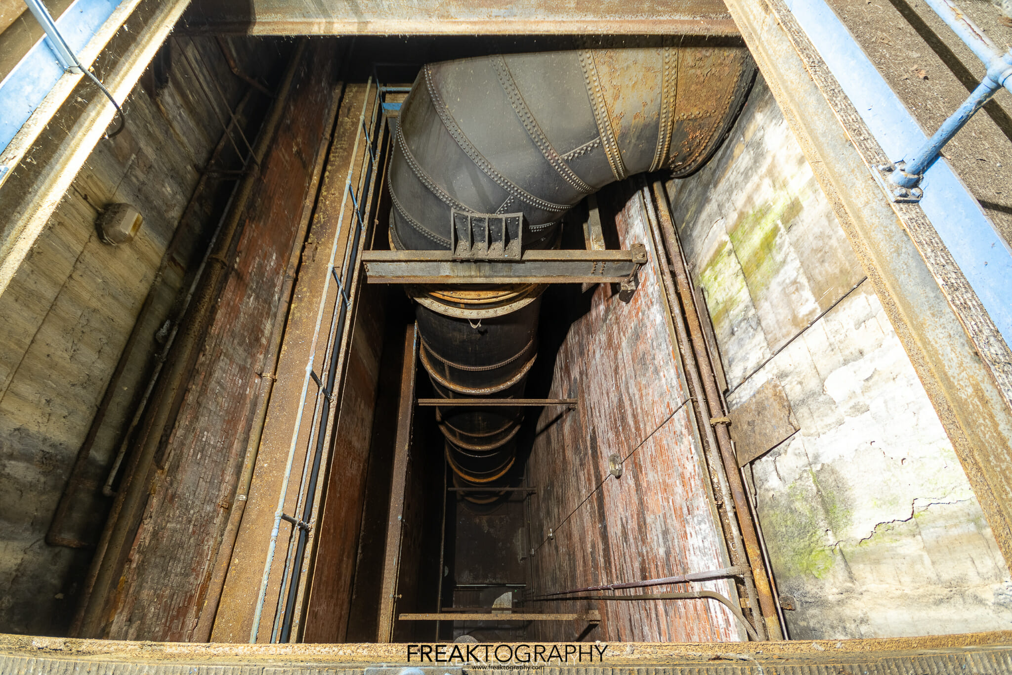 Now however, 12 years after those great explorers who were here before me…the water levels are much higher making the rocky and dangerous way in impossible, now I have the luxury of a very shaky yet secured ladder. You used to have to do the plant in one explore and then the tailrace in another, today I am tackling the entire iceburg from tip to base!