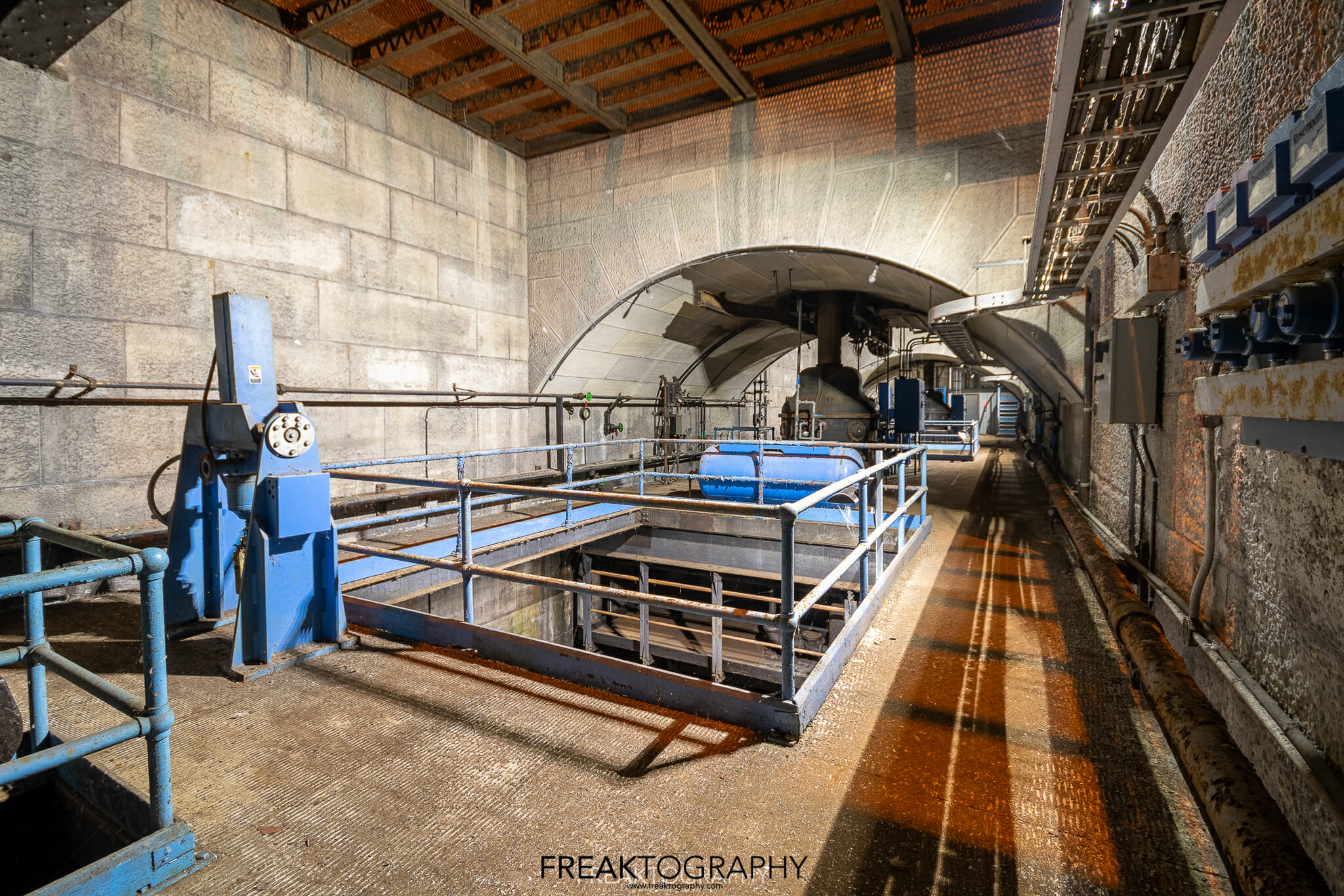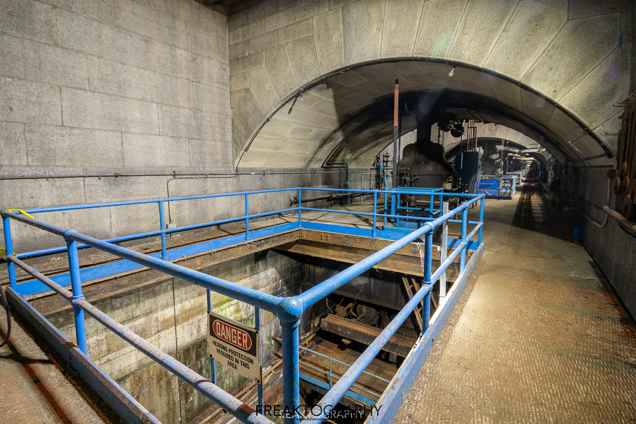 Directly beneath the hall there are utility tunnels, power distribution tunnels, storage rooms, locker rooms and more, each accessible by various sets of stairs.