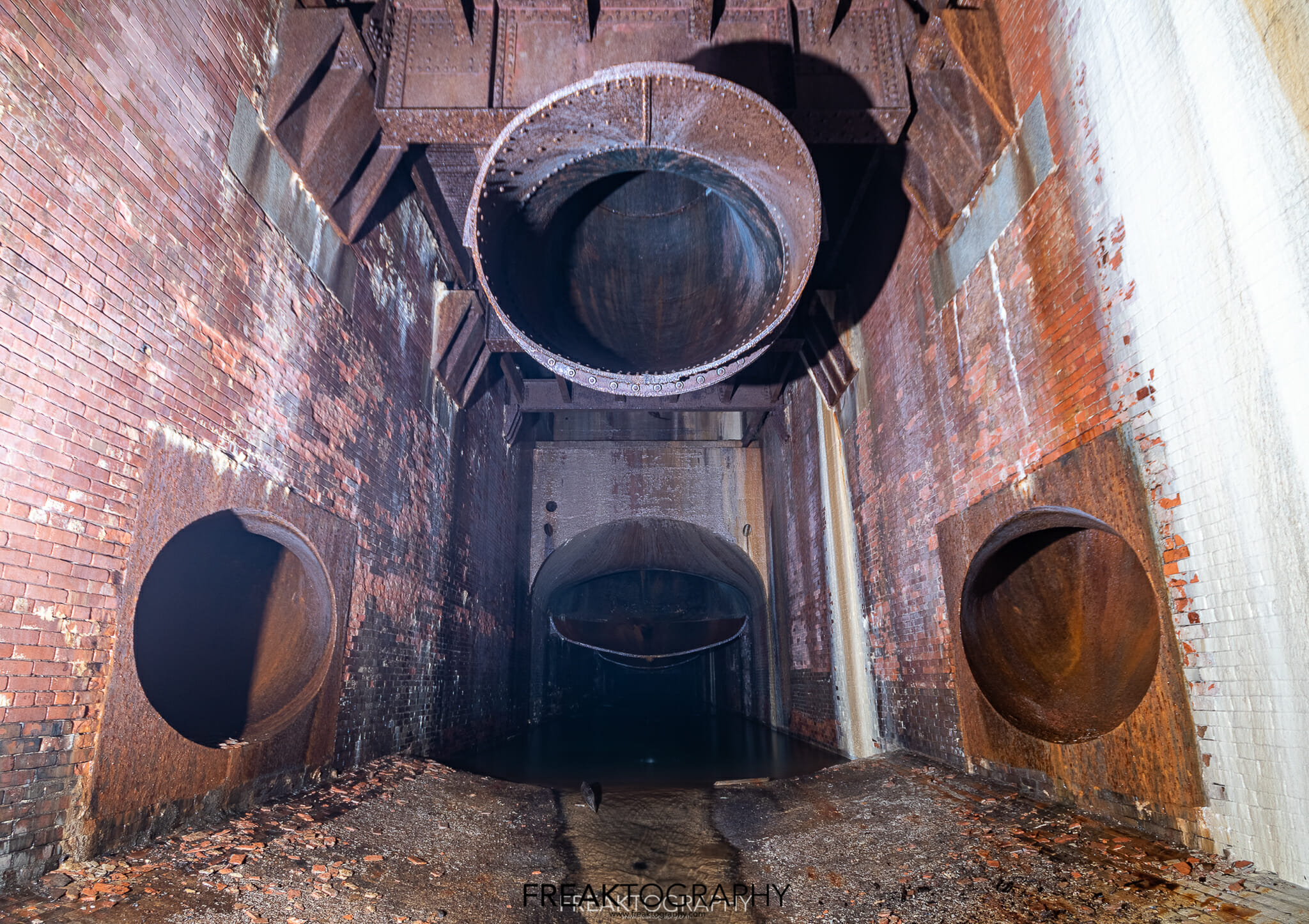 I take a moment, I breath in the cool air, take in this moment that I am sure I will never ever experience again…then I gear up and I capture the moment! I start shooting at the outfall and I work my way in and back to the ladder, my lifeline back to civilization and back to the surface level. I stop and acknowledge the many who were here before me, the trailblazers of the early 2000’s, I snap some photos that are reminiscent of those that I’ve seen before, from the hours spent researching this explore and the hours spent wondering if I’ll ever get this chance.