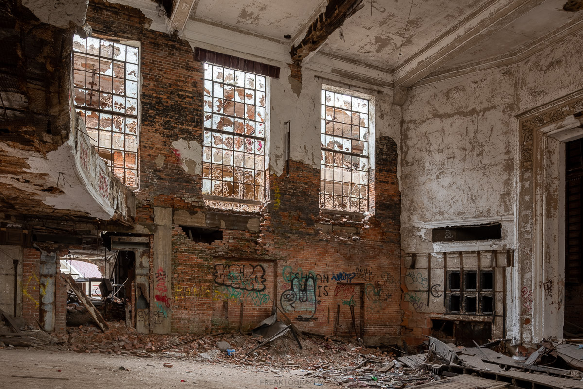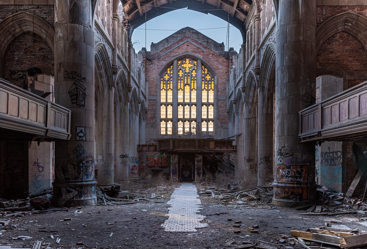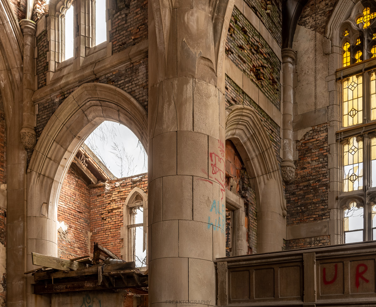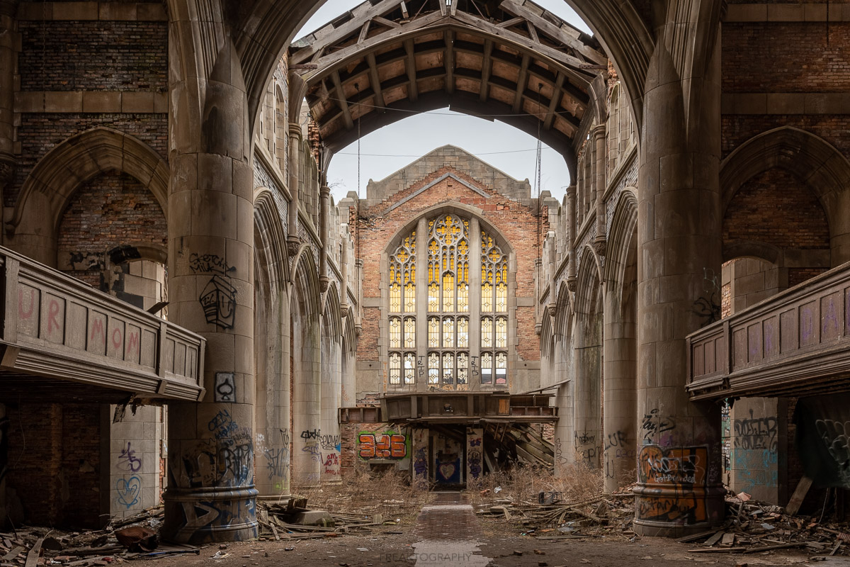 In 2020, on my annual birthday road trip and just days before the worldwide lockdown to prevent the spread of COVID-19, I was joined by friends RiddimRyder and Chris Luckhardt on a two day visit to explore Gary, Indiana. On day 1 we would visit City Methodist Church shortly after sunset and we would return bright and early the next day after sunrise. Going in, I had no idea of the size of this church and had only planned to stay a short while however, once inside the advanced decay and the size of this facility turned this into an over two hour explore.
