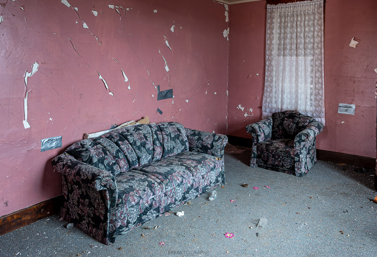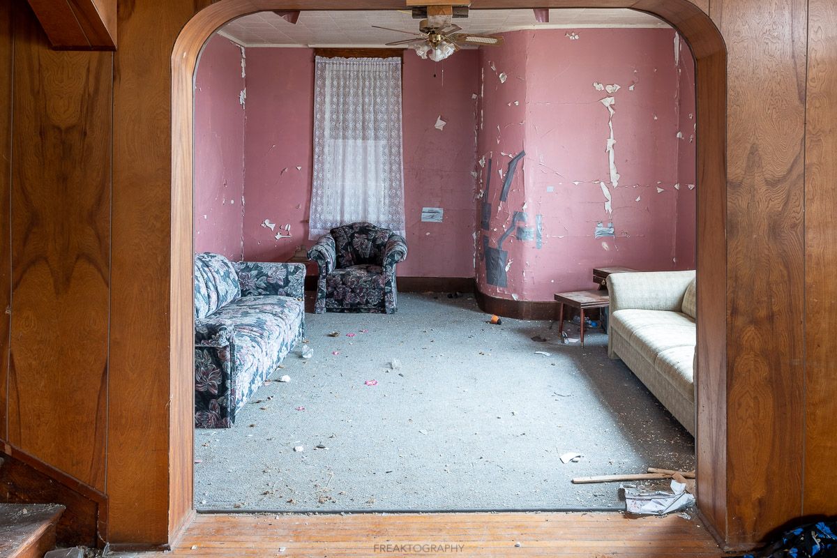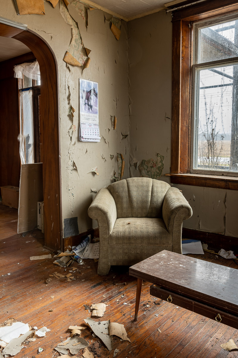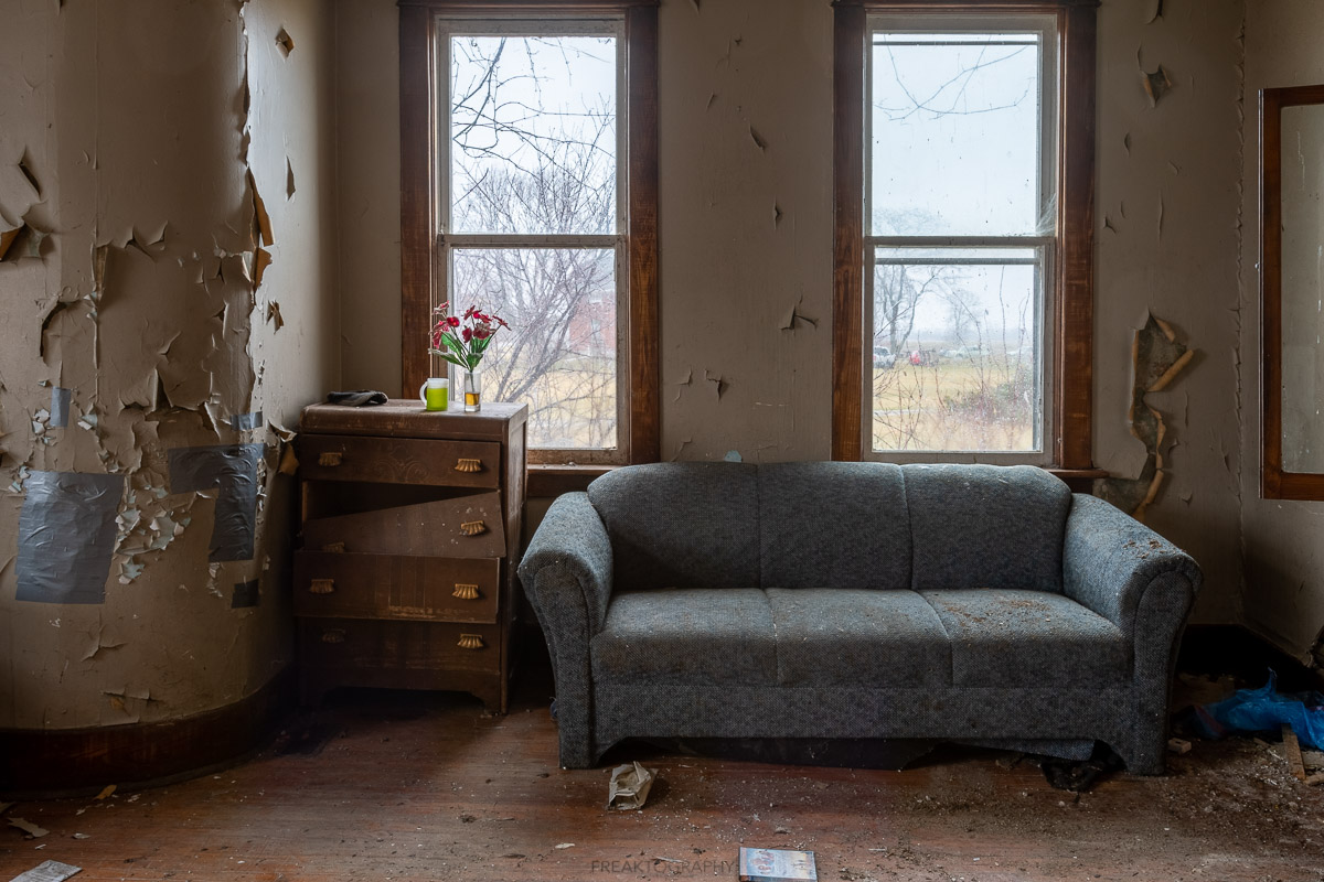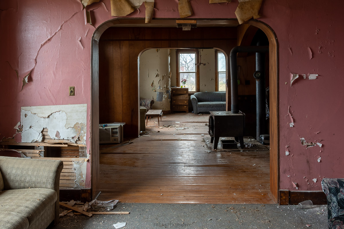 Everything about this house was just what I like to see in an abandoned house, from the random things and furniture left behind and scattered about to the peeling paint and more