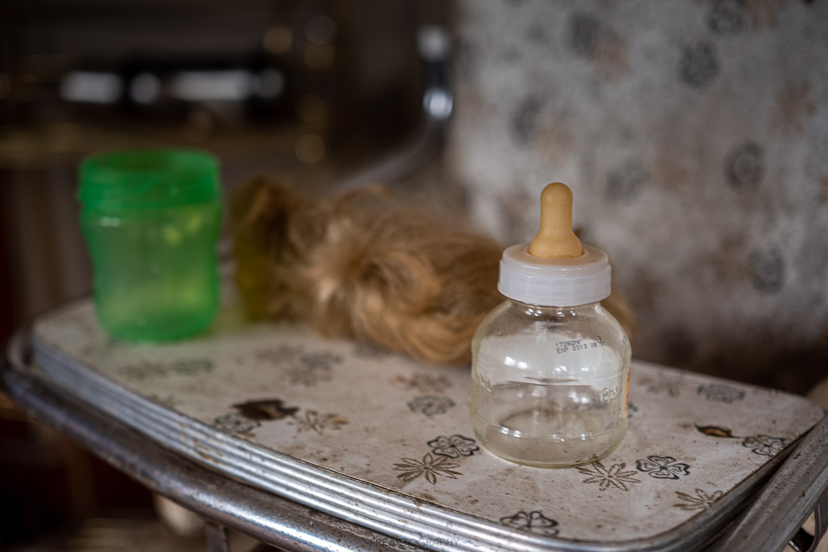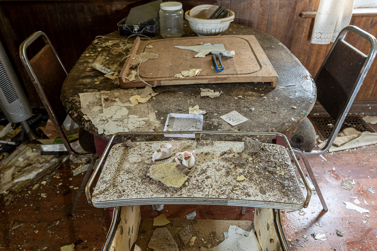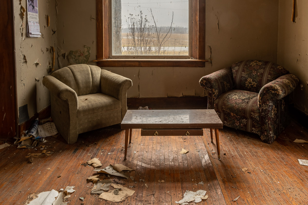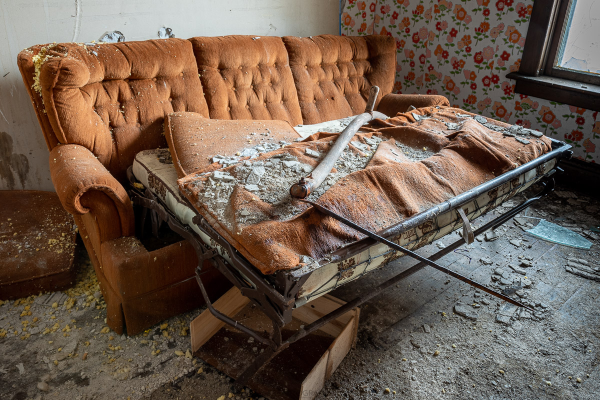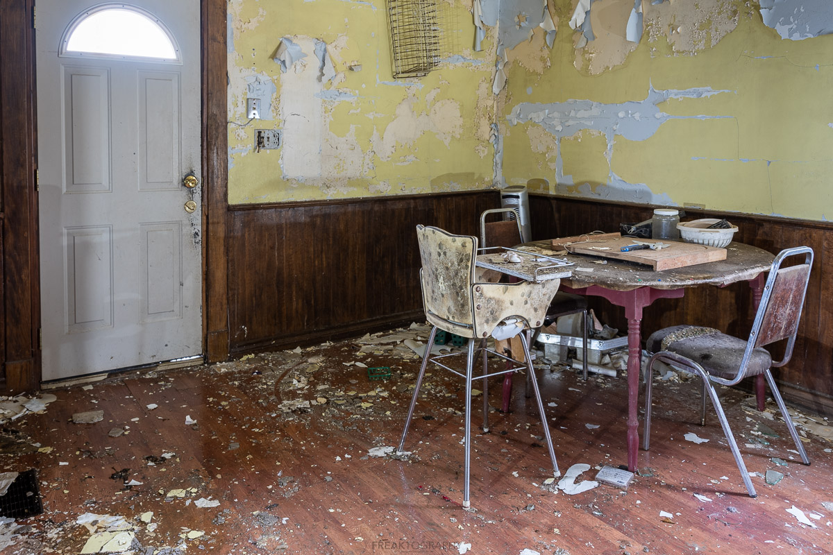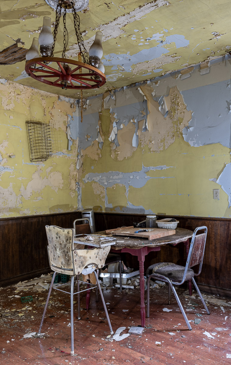 Everything about this house was just what I like to see in an abandoned house, from the random things and furniture left behind and scattered about to the peeling paint and more