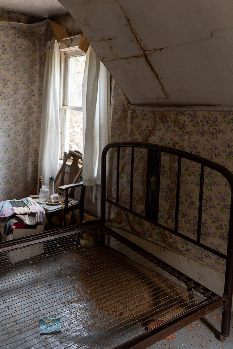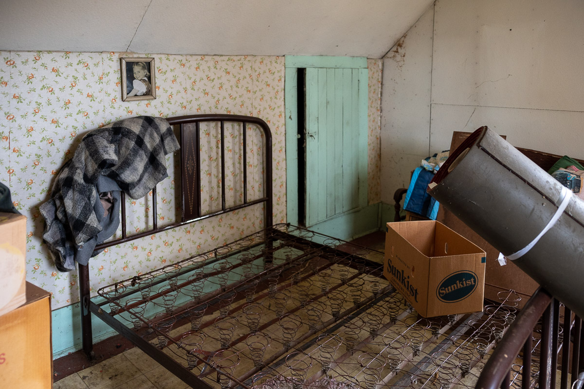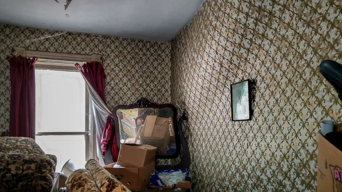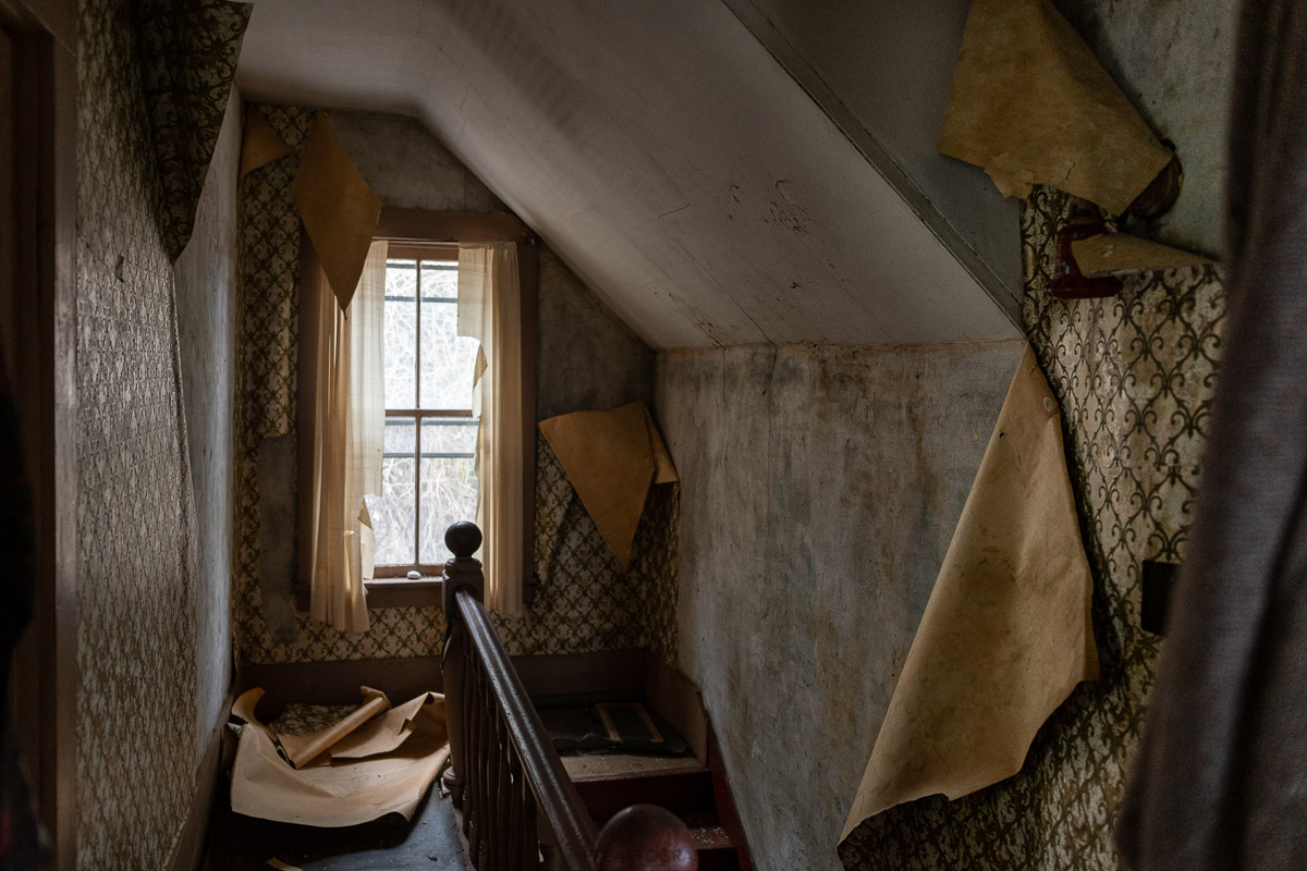 The upstairs of the home wasn’t as cramped and over packed, but the years of decay have caused wallpaper to peel down from the walls.