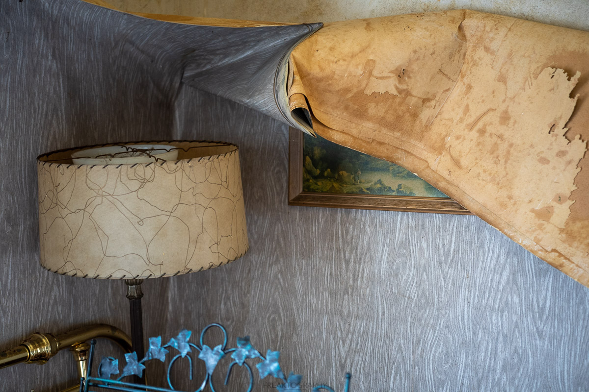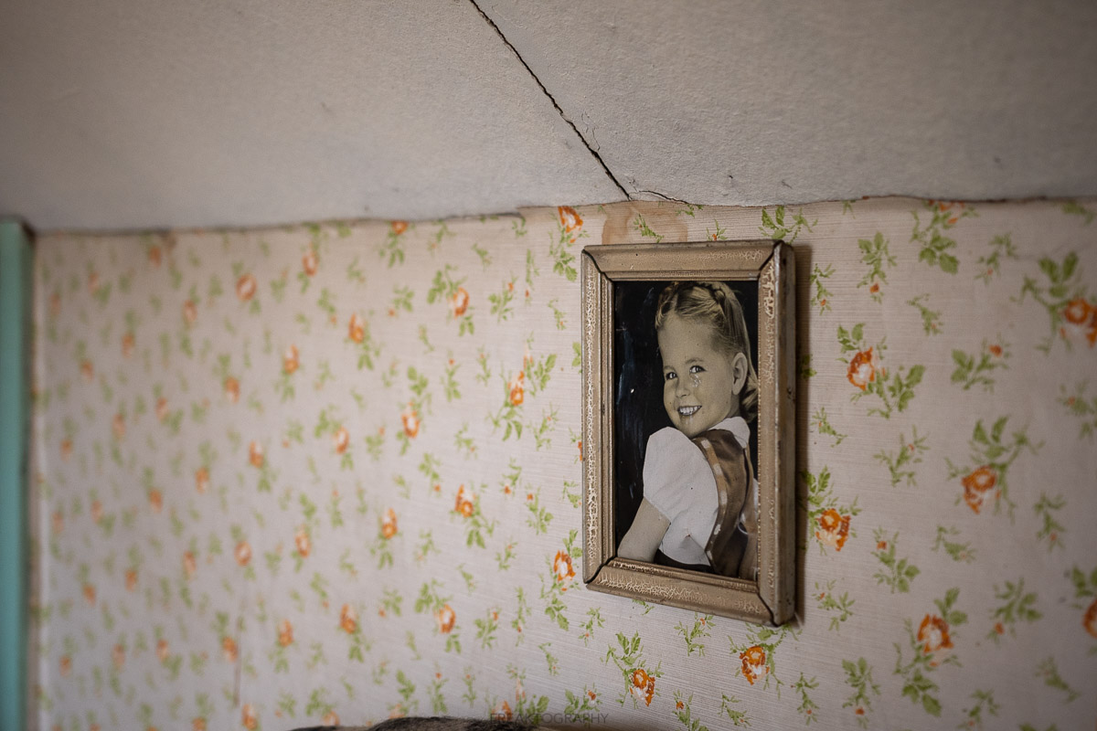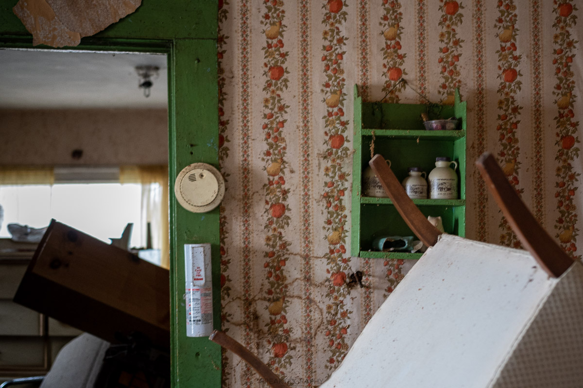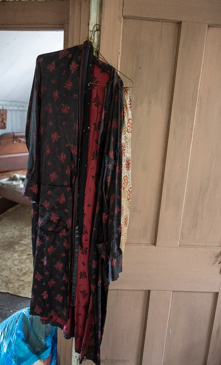 The upstairs of the home wasn’t as cramped and over packed, but the years of decay have caused wallpaper to peel down from the walls.