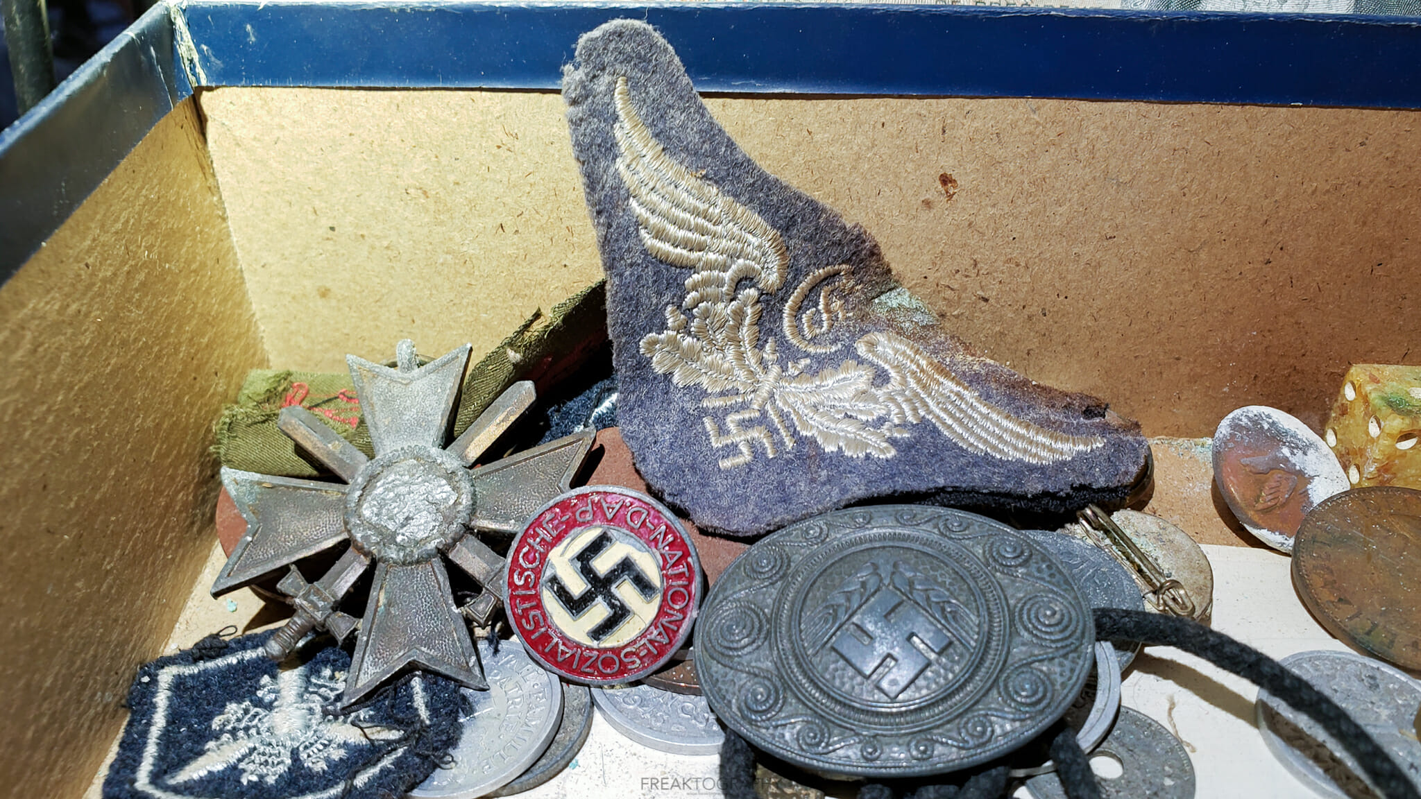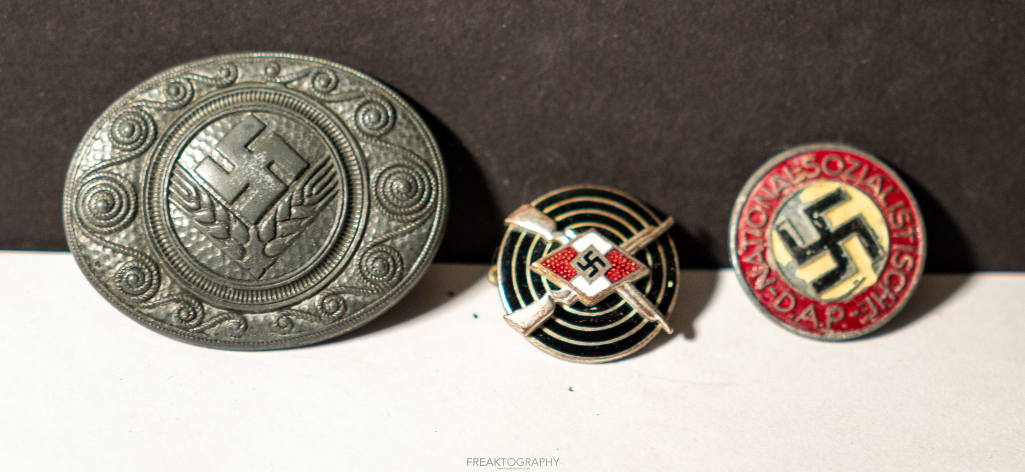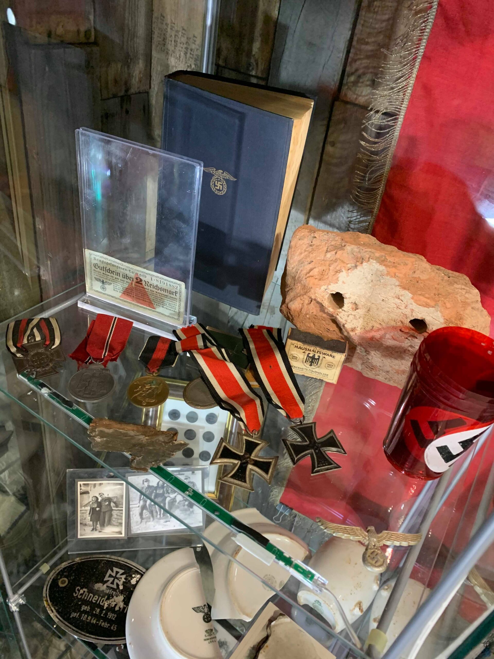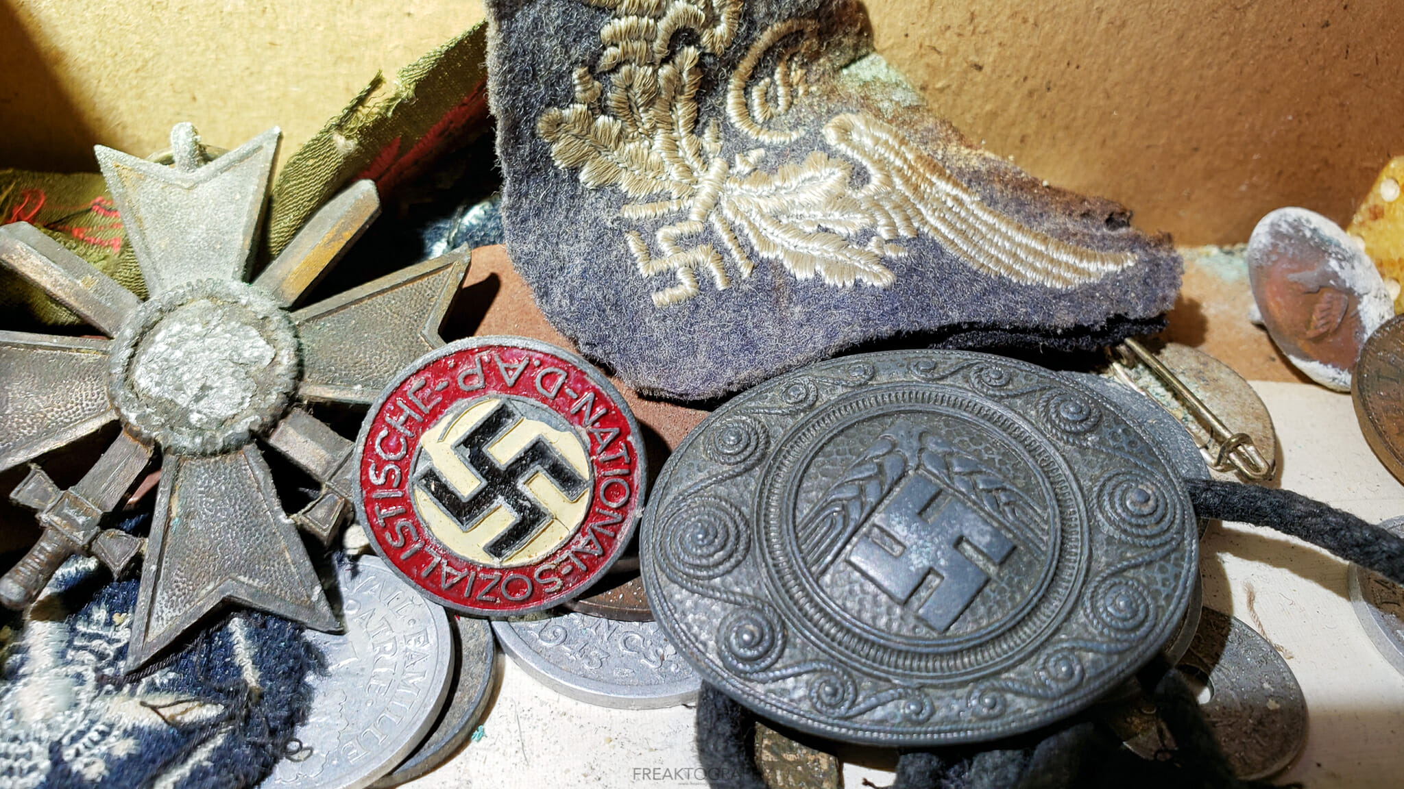 Most shocking however were the souvenirs that this man had collected during the war and brought home with him, the blood stained shoulder patch of a Nazi soldier, an official Nazi Party Membership Pin, a Nazi War Merit Cross, a Dutch stickpin commemorating the futile defence against the Germans in The Battle of Grebbeberg and numerous other souvenirs with swastikas that I can’t determine
