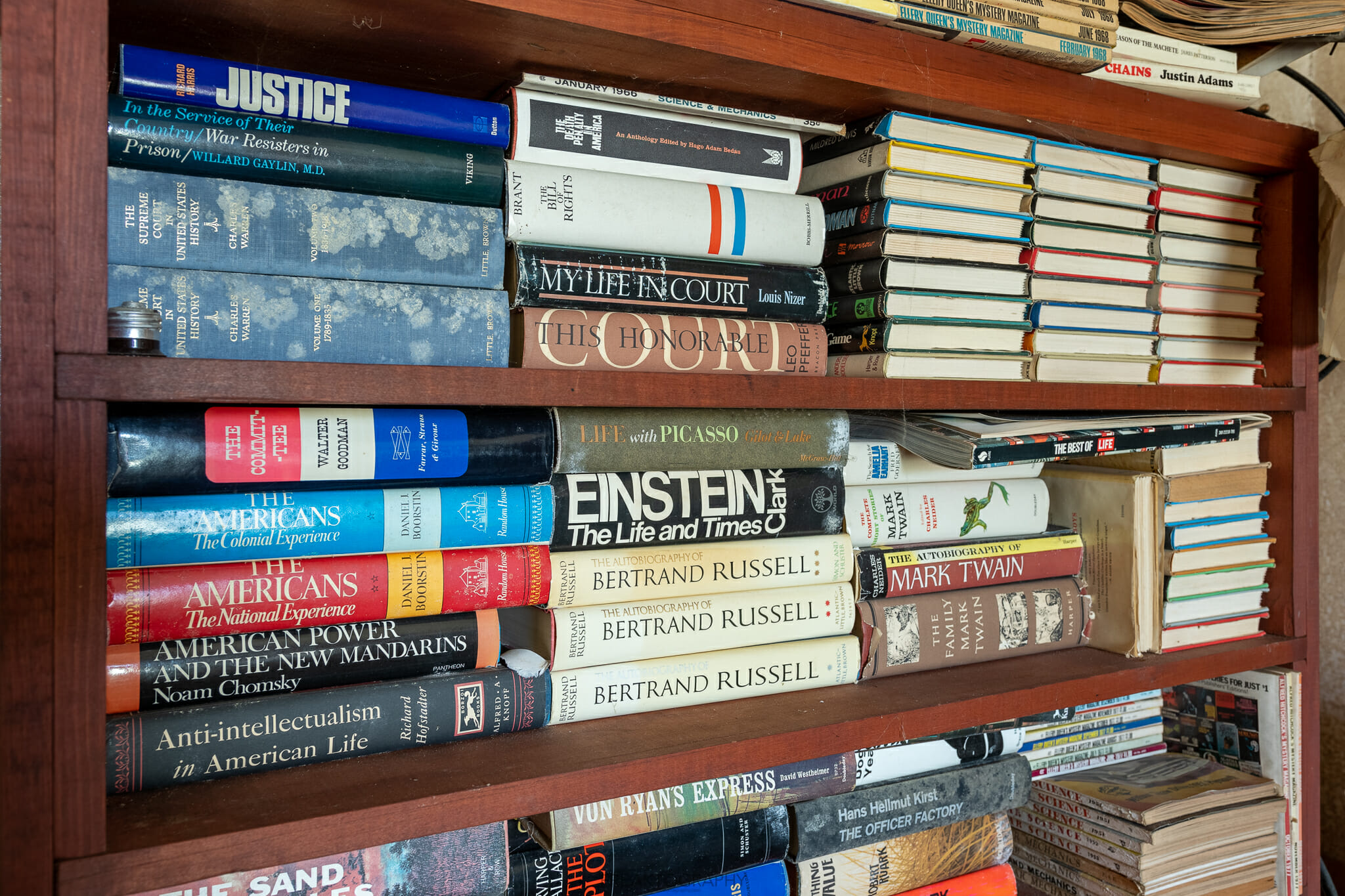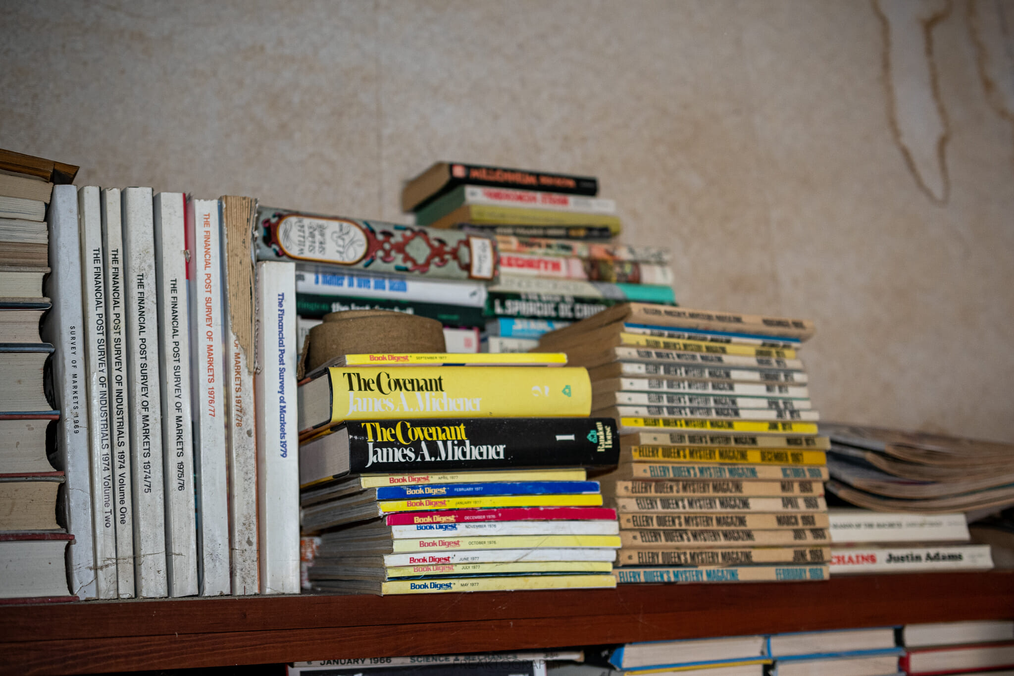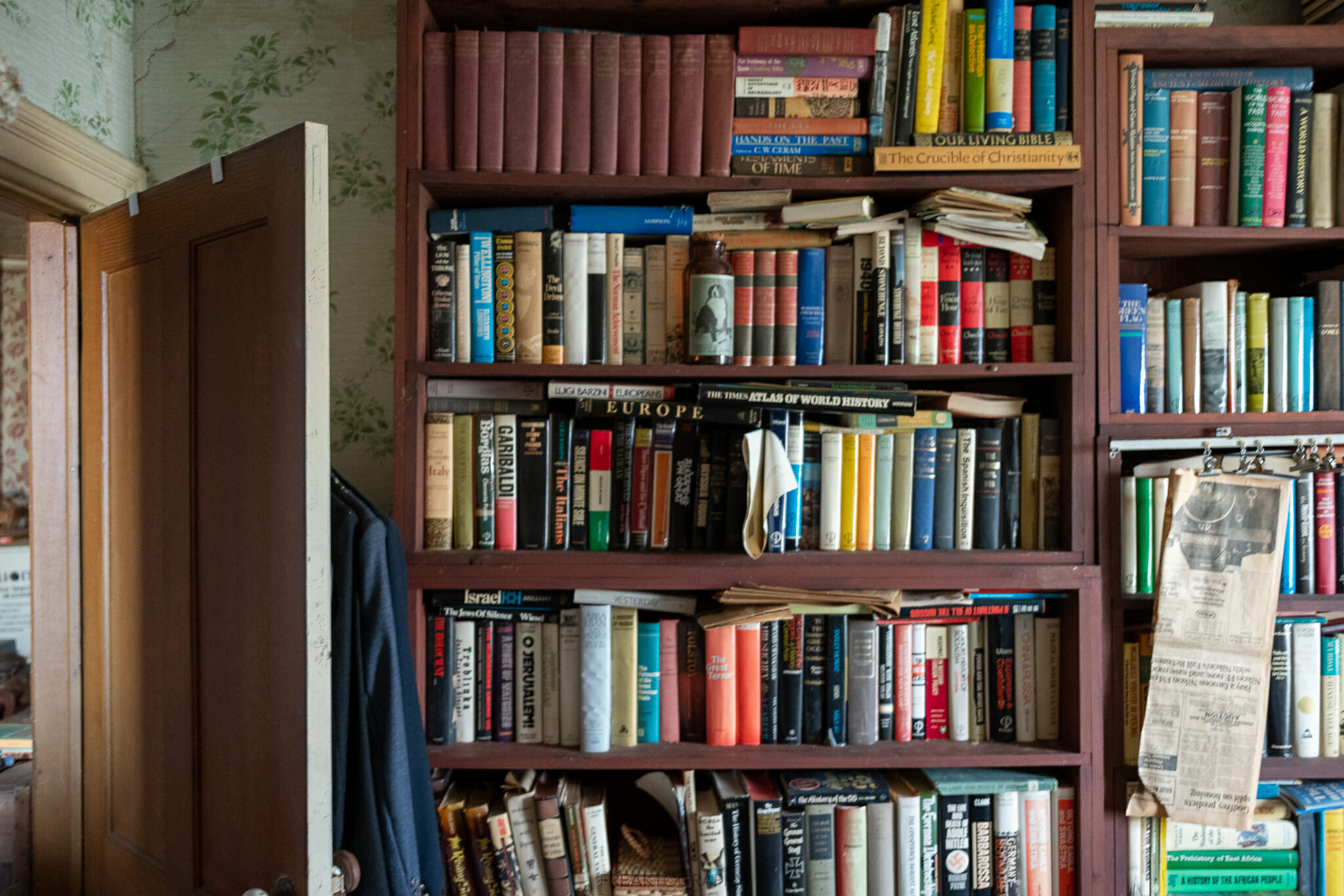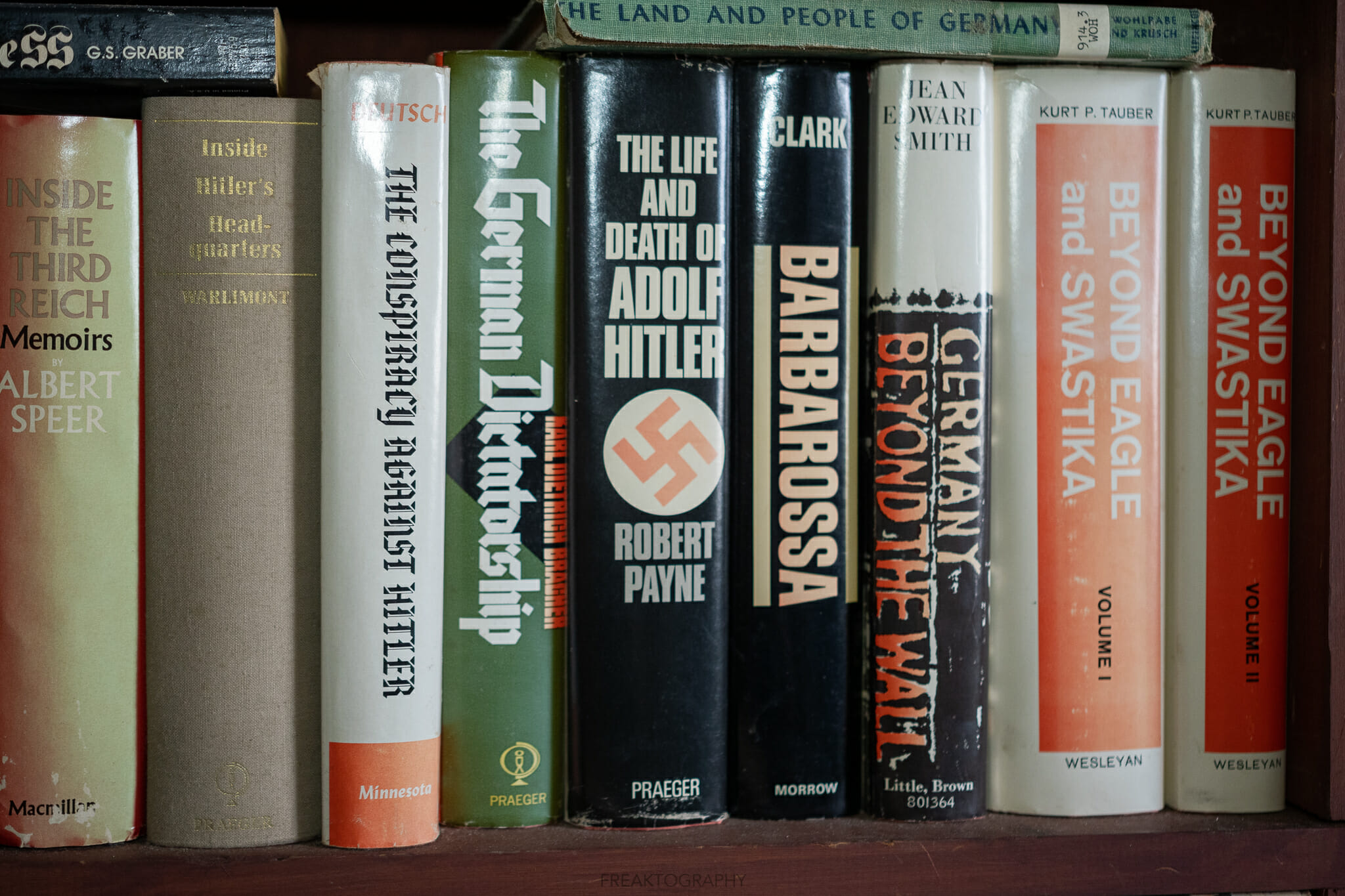 Entering room #4, this room seems to be a library and an office space, every wall is covered with books about wars, religions, travel, poetry, leadership, world history, real estate along with every single issue of National Geographic ever published during the time that this home was active.