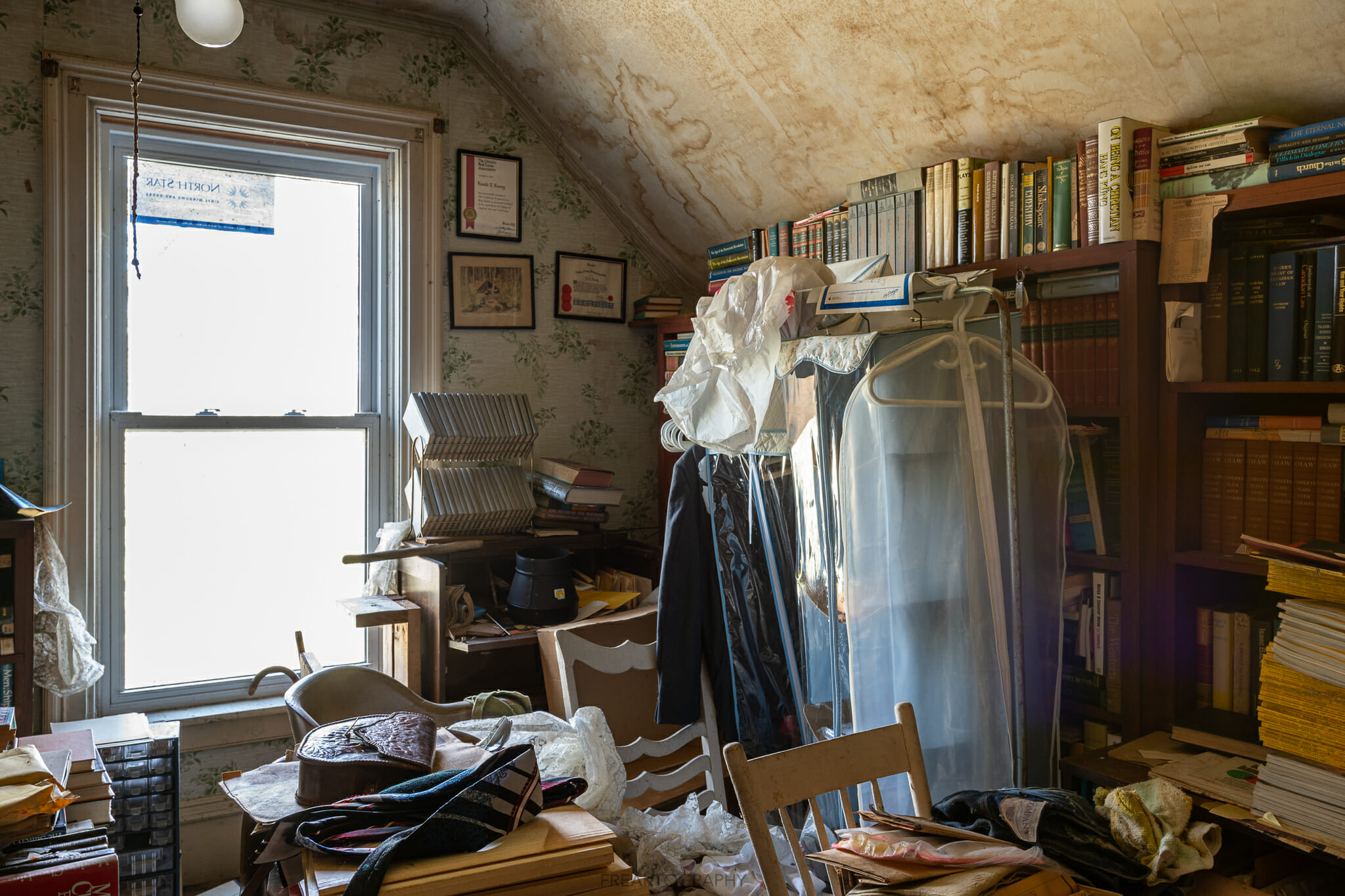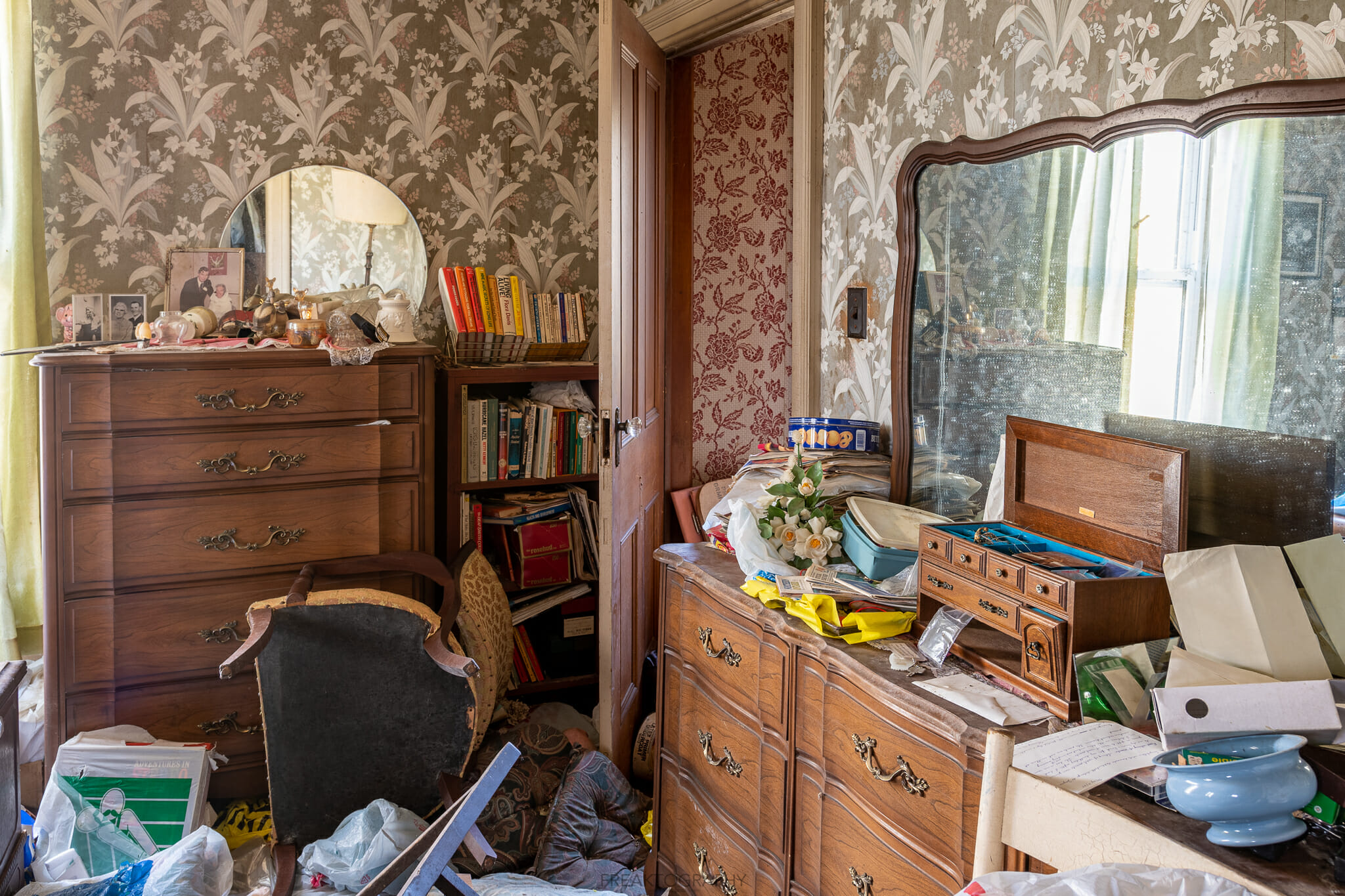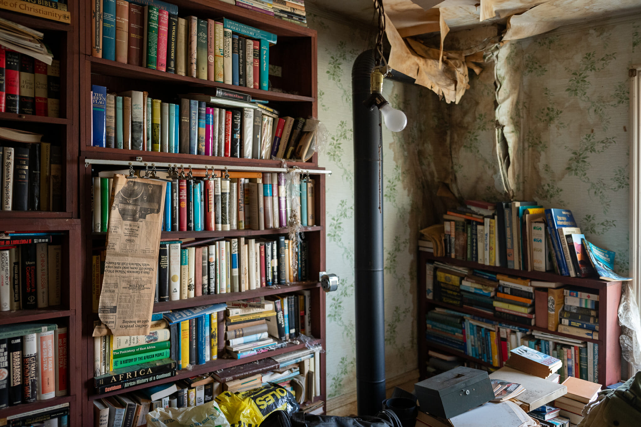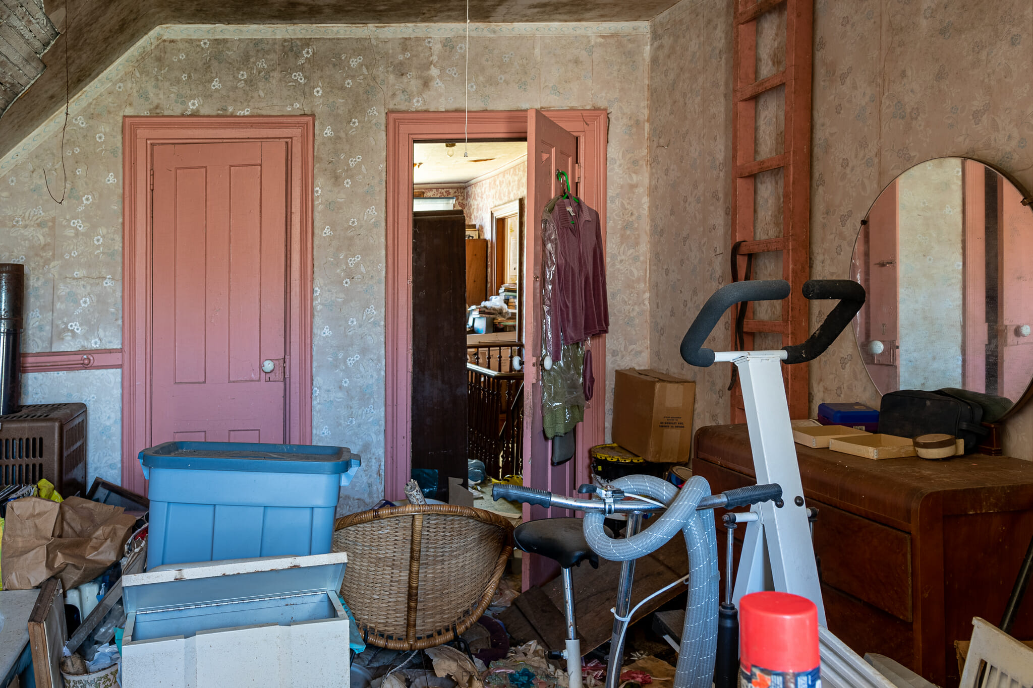 With the neighbour’s dog barking at me aggressively I made my way to the house and found the opened door, stepping inside I nearly tripped on all of the debris. I already know how this is going to go, these types of homes are near impossible to shoot, there is too much stuff, too many piles and it is so hard to navigate from room to room.