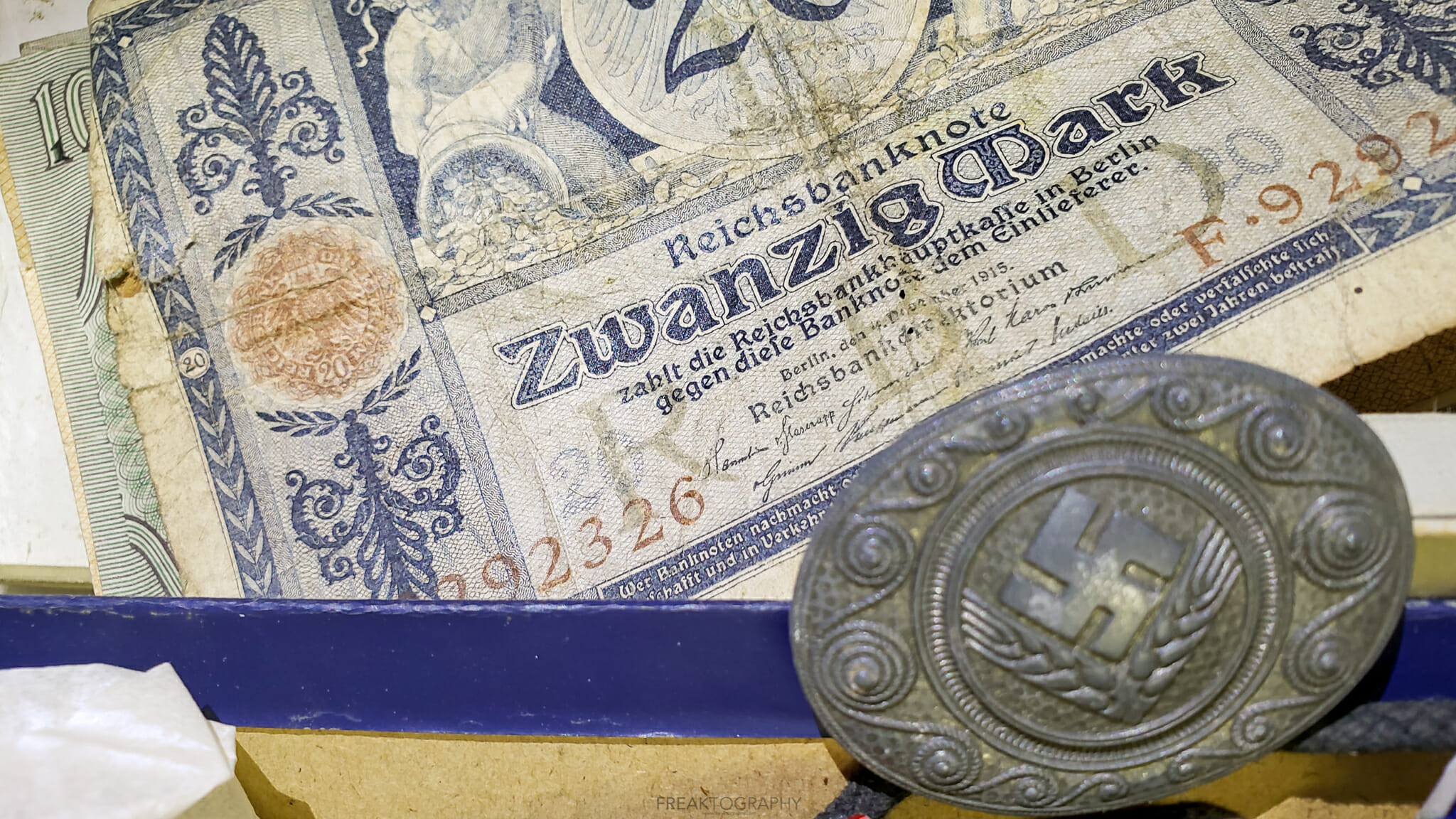 I found an envelope, inside it was full of german currency in various denominations, and in the bottom of the box were dozens of old coins from all over Europe.