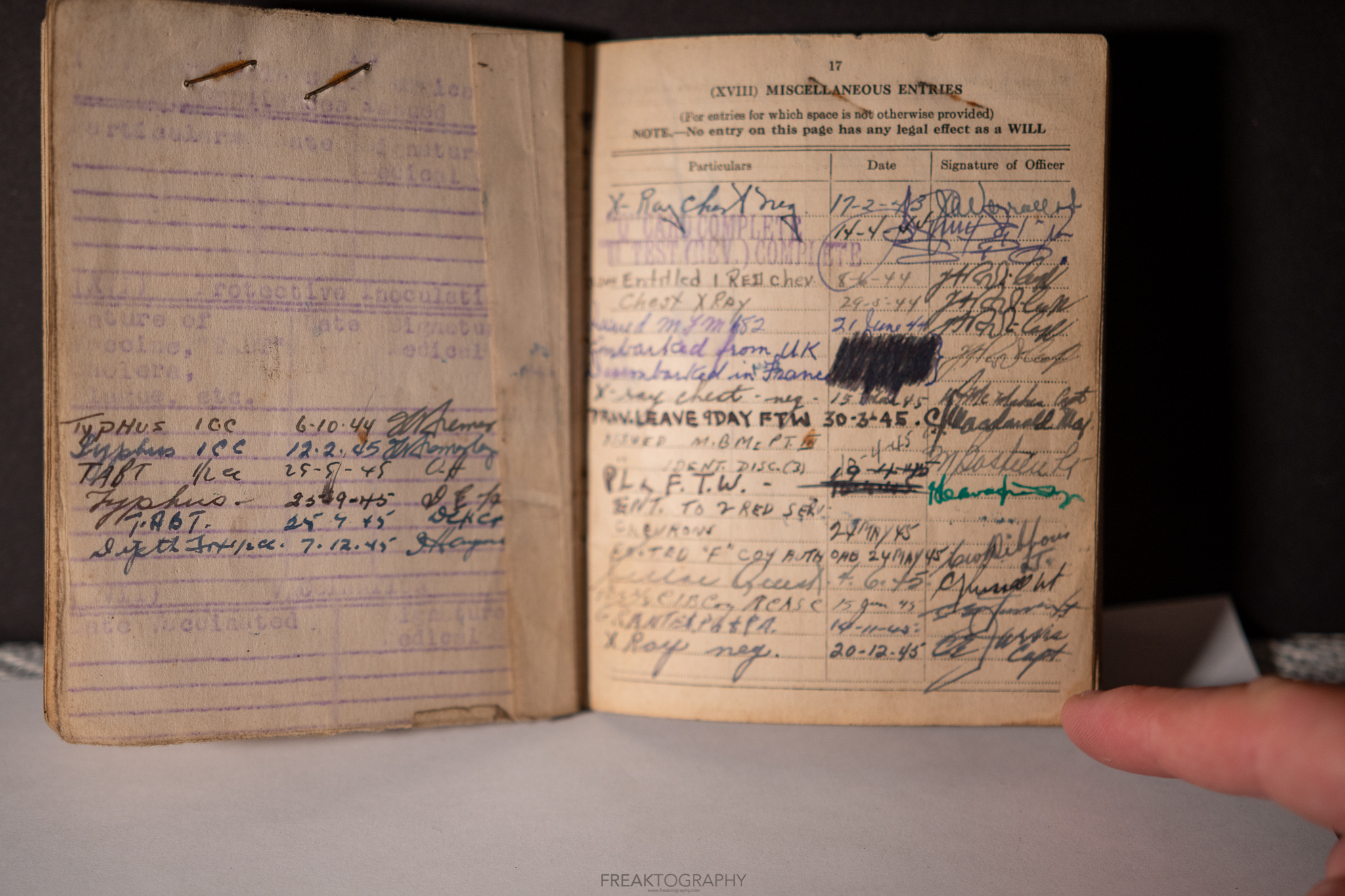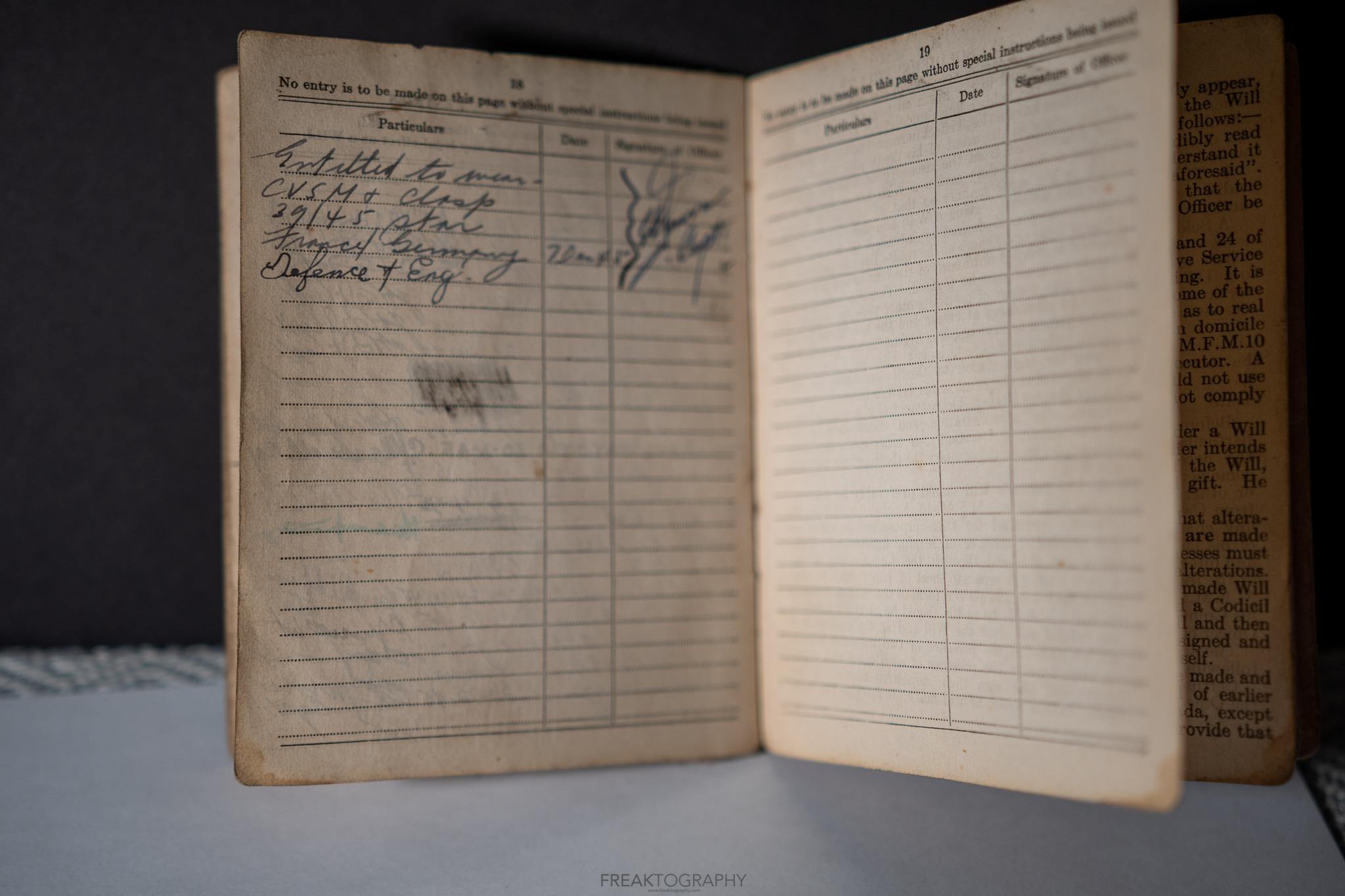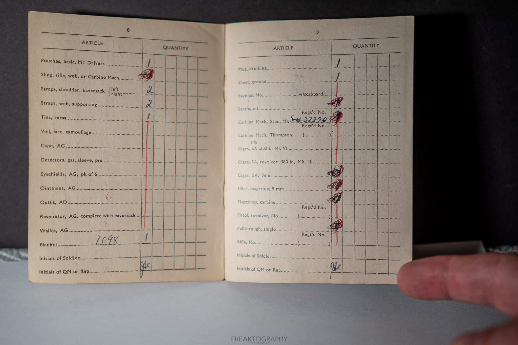 In addition to these medals I found a soldier’s pay book, detailing his weekly pay, what dates he received it, how much and to whom the pay would be sent to (his mother), there was also his kit list, outlining all of the items of kit he received upon being deployed.