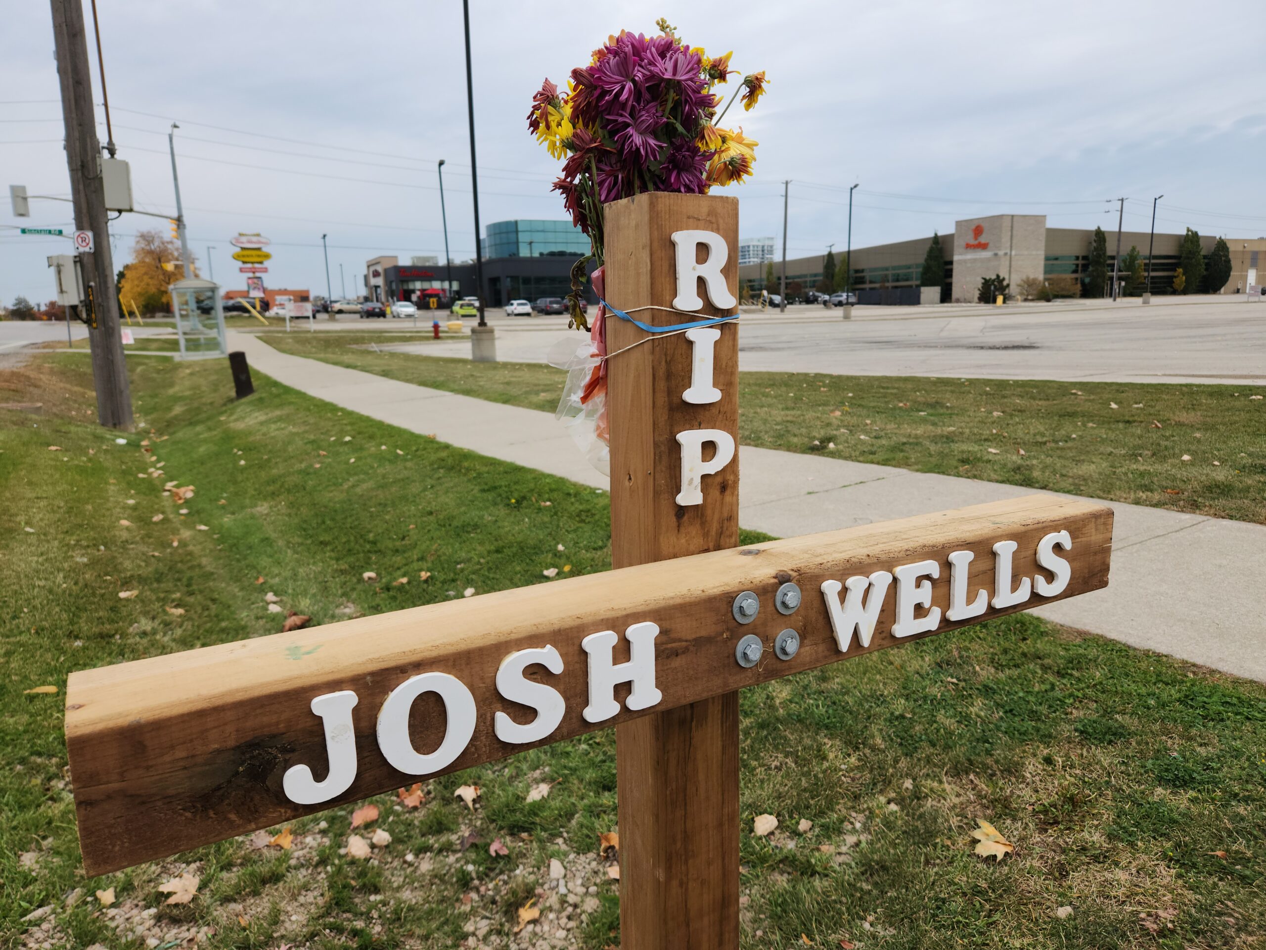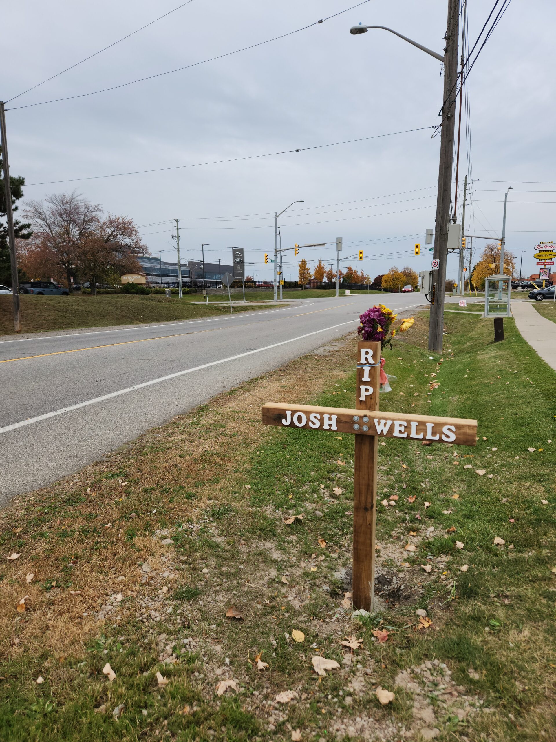 This is the roadside memorial for Joshua Wells in Oakville, Ontario