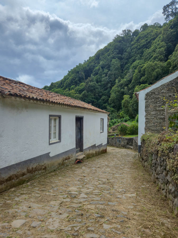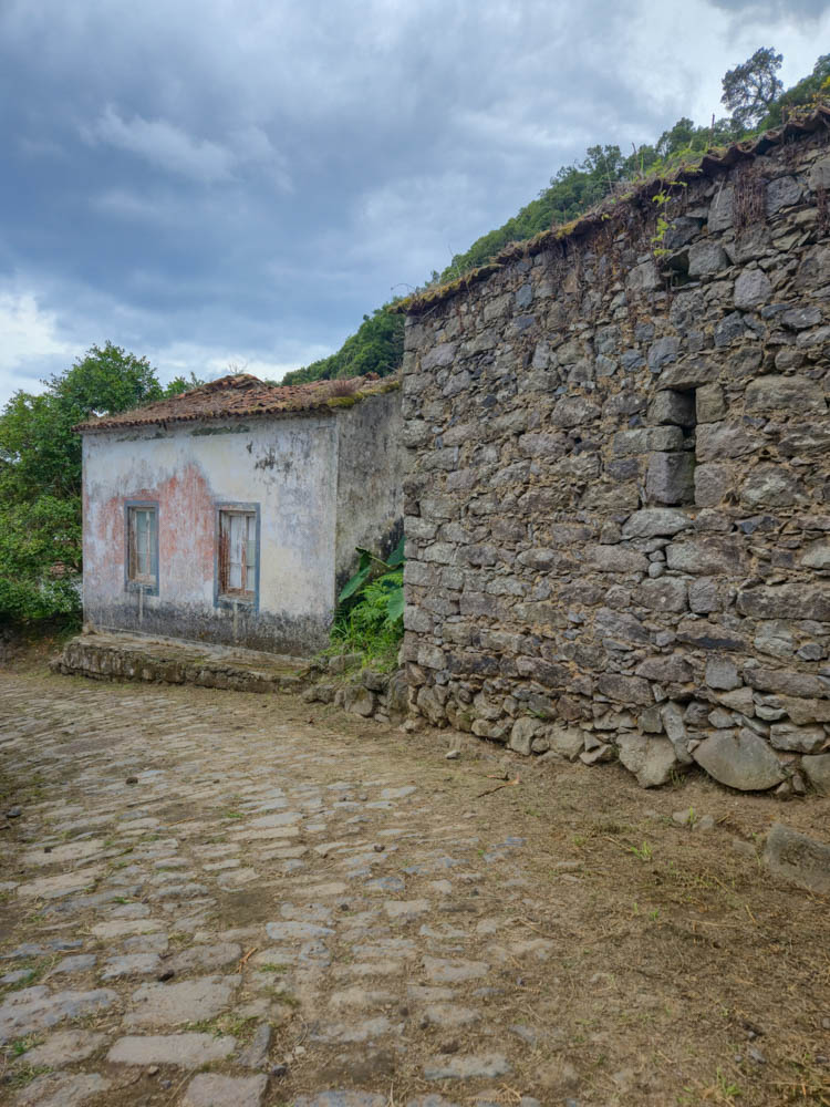Sanguinho is often called the Lost Village, and once you arrive, you understand why. It is a small settlement tucked into the hillside above Faial da Terra, built around footpaths, water, and the practical needs of rural life. The village was never a traditional town. It was a working place, stone homes set where the land allowed, supported by small-scale farming and what the valley could provide.