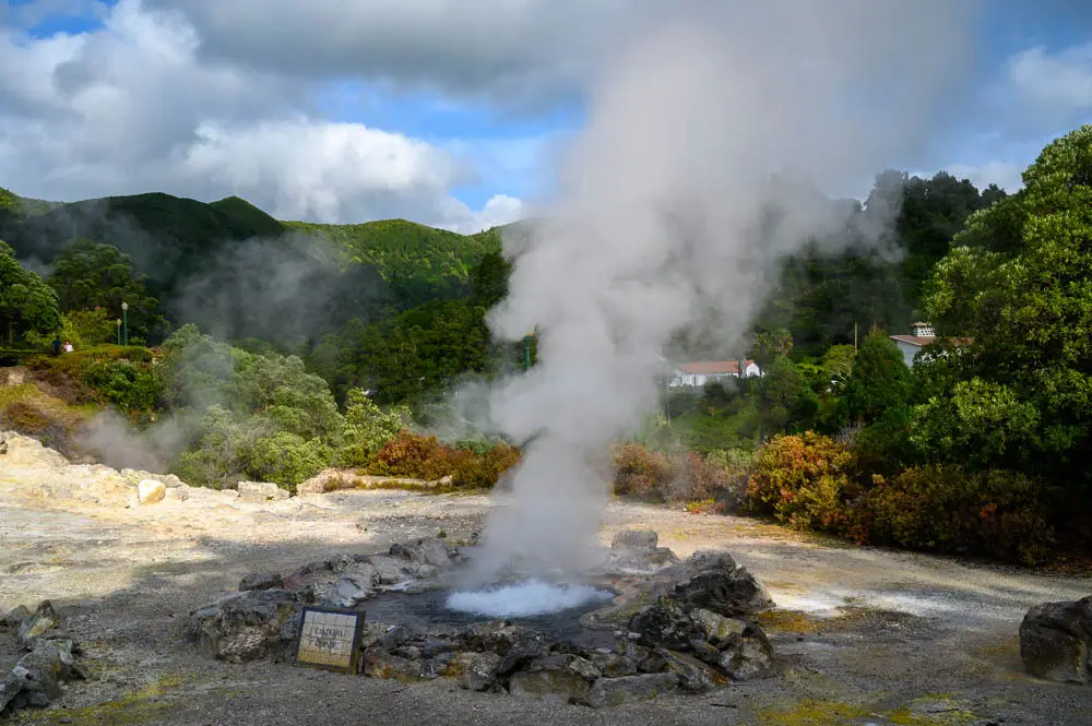After leaving Faial da Terra, we had a scenic drive back toward Ponta Delgada, and we chose to route through Furnas. Furnas is built inside an ancient volcanic crater and is known for geothermal activity that you can see and feel. Steam rises from the ground, hot springs and fumaroles bubble, and mineral-rich waters shape daily life here. It is also famous for food cooked underground using volcanic heat, which makes it one of those rare places where the landscape is not just scenery, it is an active force you experience in real time.