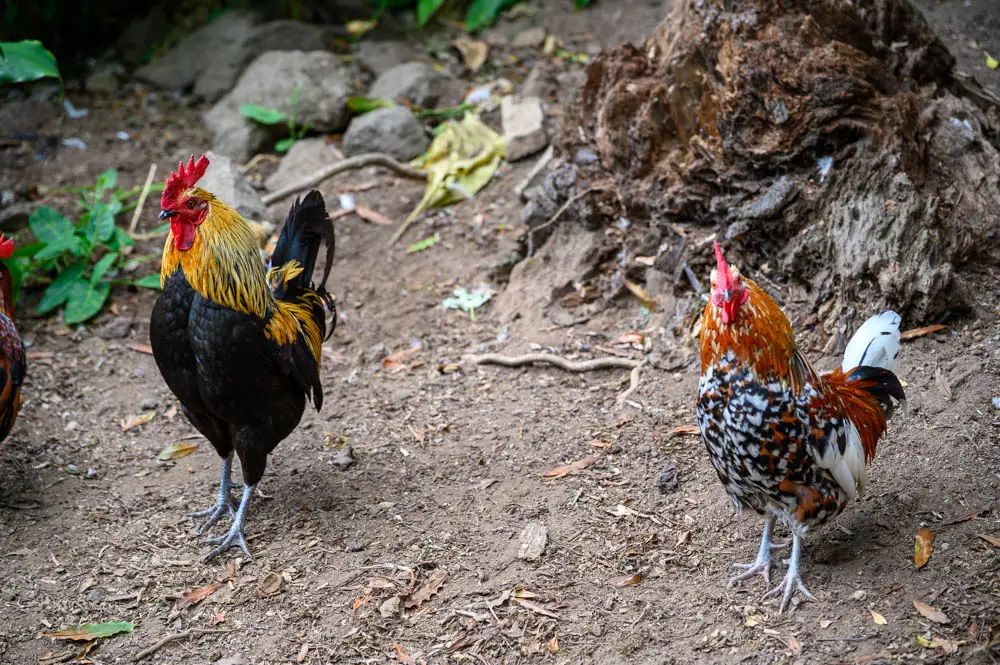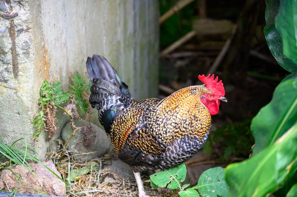 One of the most surprising details on this route is the sound. Roosters are everywhere, and you do not just hear them near homes or clearings. Their calls carry through the valley for much of the hike. You also see wandering baby chicks along the trail. It adds a strange contrast to the effort of the climb. You are pushing through a rugged forest route, but you are constantly reminded that life is thriving here.