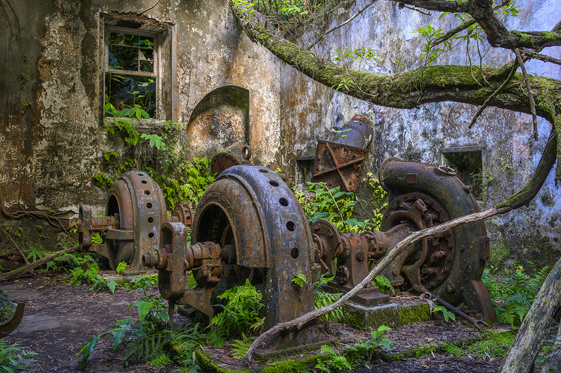This photograph captures the beauty of post-industrial decay, where engineering meets the quiet persistence of nature. Shot on location in the Azores, Portugal.